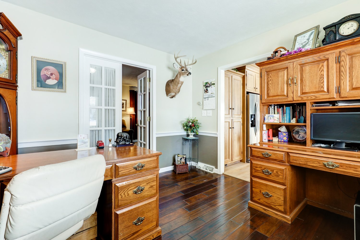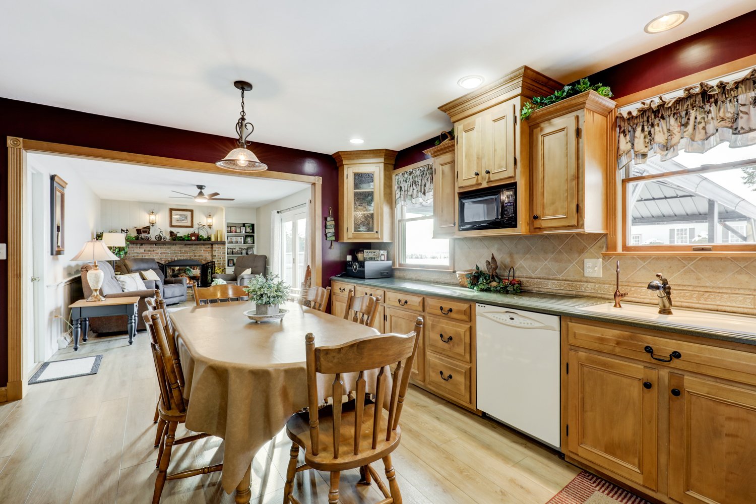 REAL ESTATE: A very clean 2-story Colonial-style house w/ 32’x 47’ truck shop on 1.04-acre lot. House was built in 1979, has approx. 1,720 sq. ft. plus 500 in finished basement; main level has 15.5’x 12.5’ kitchen w/ beautiful cabinetry, appliances, sink window overlooking backyard; 20.5’x 11.5’ rear living room w/ brick fireplace & L.P. insert; sliding door leads to impressive stamped concrete patio; 11’x 12.5’ rear private office; 13’x 16’ front living room w/ French-doors to office; front door foyer; jack/jill full bathroom w/ shower; 7’x 6’ covered front porch; 20.5’x 20.5’ 2-car garage w/ epoxy floor, 2nd kitchen & laundry hook-up & insulated doors. Second level has 16’x 12’ primary bedroom w/ double door closet; 12’x 11’ BR#2 w/ closet; 12’x 11’ BR#3 w/ closet; full bathroom w/ tub shower. Basement level has 24’x 12’ rec. room; 13’x 7.5’ sewing/craft room w/ built-in cabinetry; 11’x 9’ hobby room. L.P. warm air heat; central A/C; L.P. domestic water heater; private septic; well water; Kinetico water system, UV light & softener; 200-amp elec; good roof. A clean well-cared for property on a low-traffic road, come and take a look.
