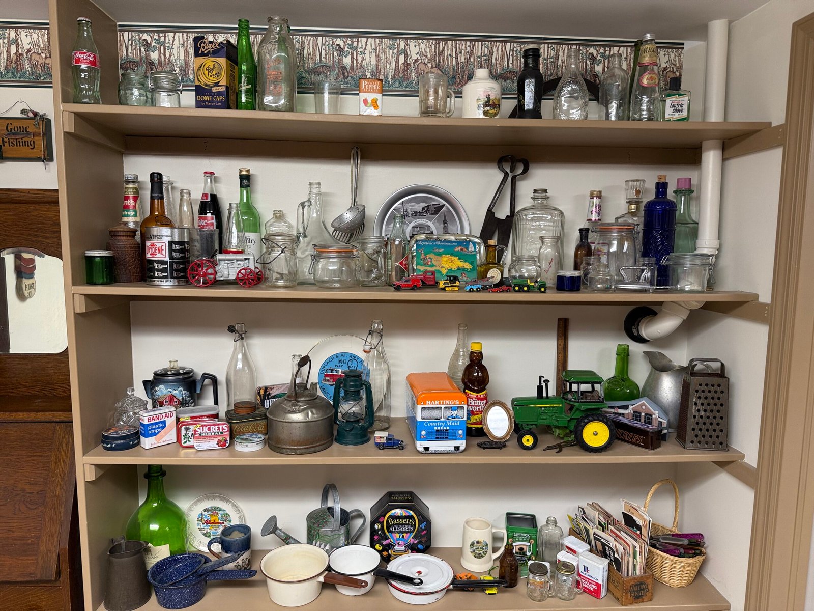 PERSONAL PROPERTY: Wooden chest; wooden barrel; Hoosier cabinet; cain seat rocker; glider rocker; Queen-Ann chair; bunk bed w/ trundle drawers & dresser; 4-dr. metal file cabinet; 4-dr. metal desk; Hamilton corner grandfathers clock; Howard Miller chime clock; automatic washer & dryer; patio table w/ 6-chairs; old wooden blocks; green ball jars; jars w/ glass lids; 1967 7-UP poster; lots of old bottles; old tins; old milk box; secretary desk; #8 crock; other crocks & jugs; Boonton dinner set; 2-qt & 1-gal. jars; Jennings Buckmaster compound bow w/ 60-lb draw, release, arrows, & hard case; electric bean-frencher; pack & play; misc. puzzles & videos; sheet sets & comforter; Durlach-Mt. Airy Fire Co. plate; (set of 10) Arthur Maxwell bible story books; 1953 webster’s dictionary; Fisher Price toys; JD 1958 #630 LP toy tractor in box; JD 4310 toy tractor w/ snowblower in box; Fordson metal toy tractor; Waterloo-Boy metal toy tractor; 1883 Ephrata Review newspaper; 1969 NY Times newspaper moon landing; plus much more.