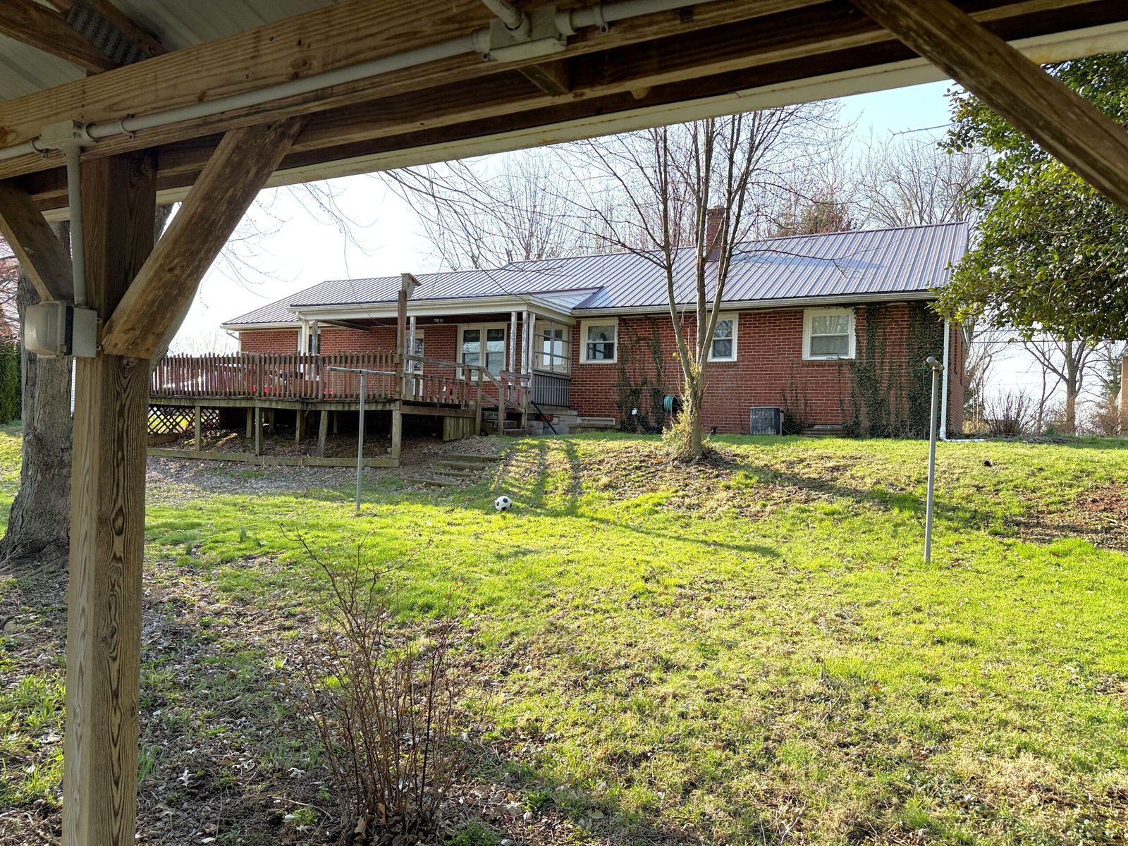 REAL ESTATE LISTING: A cute 3-bedroom brick Rancher w/ attached 2-car garage on .44-acre lot w/ very nice view from the rear deck & pavilion. House was built in 1957 and has 1,176 sq. ft. (plus basement). MORE DETAILS COMING CLOSER TO AUCTION DATE.