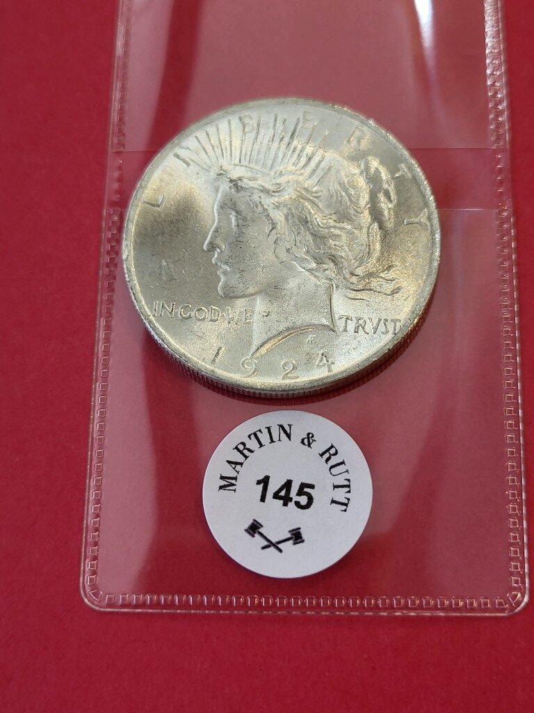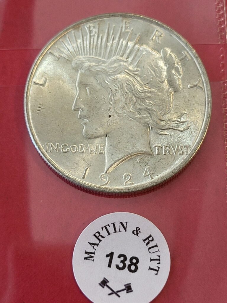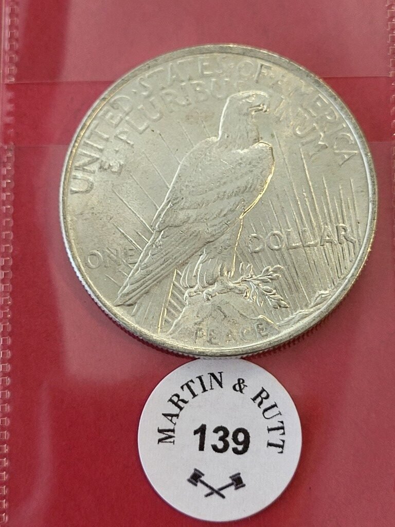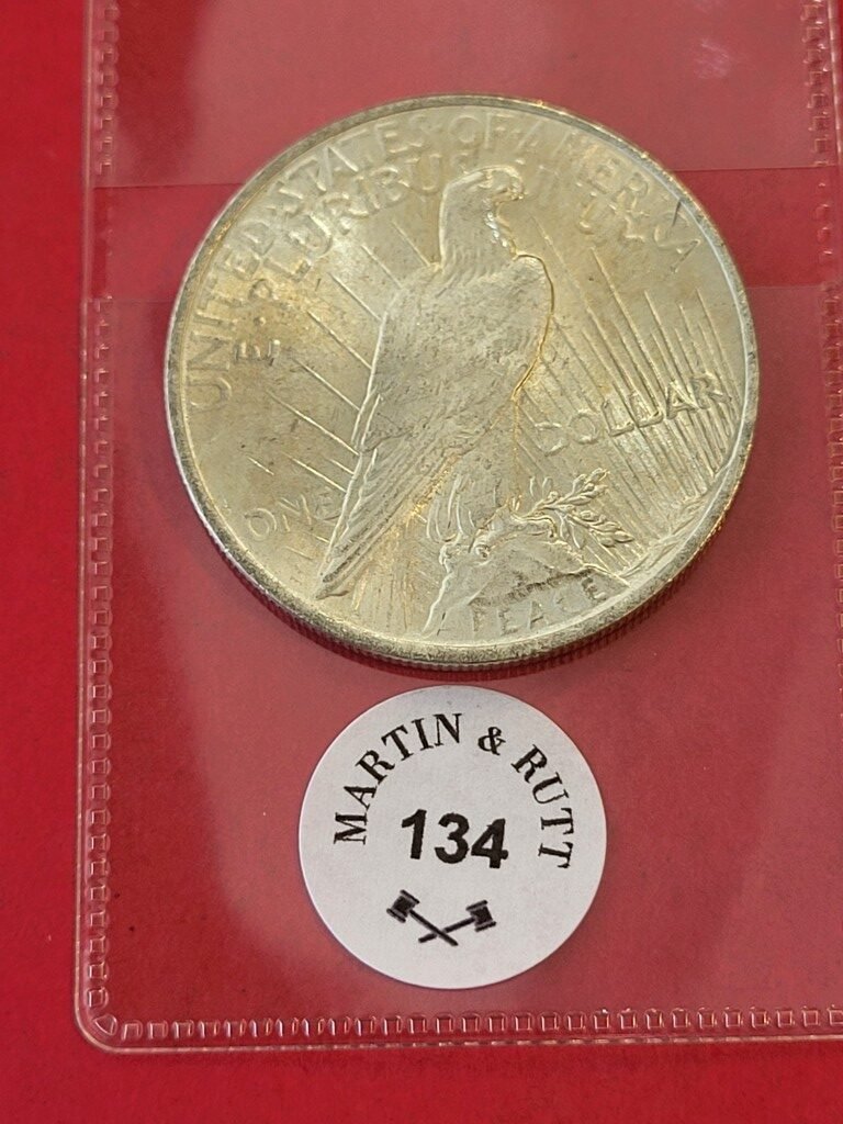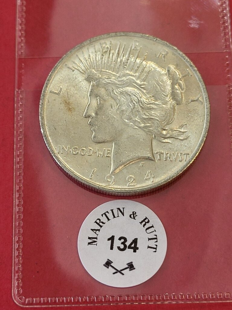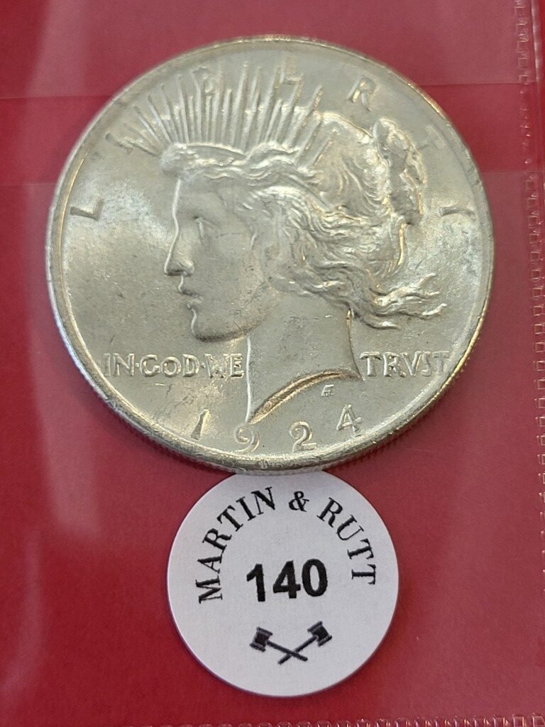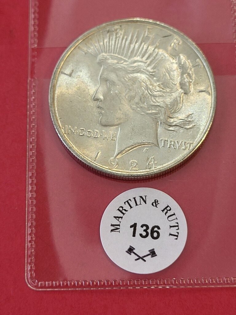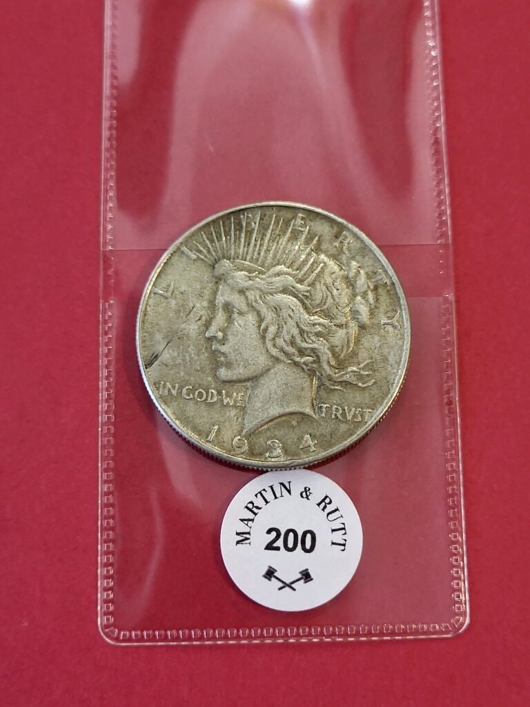 GUNS & COINS: Remington Model 760 30.06 rifle w/ Leupold scope; Stevens 16-gauge double barrel; Springfield 12-gauge double barrel; Stevens model 311 20-gauge double barrel; L.C. Smith 16-gauge double barrel; H&R Topper 410-gauge single shot; Winchester model 255 .22-mag. w/ Weaver scope; Thompson Center .45 cal. Flintlock muzzleloader; Glock 9mm Gen-4 pistol in case w/ 2 clips; Glock 26 Gen-4 9mm pistol w/ 3” barrel in case w/ 3 clips; (2) Springfield XD 9mm clips; Italy starter pistol; digital Fortress gun safe; boxes of misc. ammunition; 1934 $1,000 bill; 1881 $5 gold coin; 150+ silver dollars; hundreds of other silver coins; 200-cataloged lots. A photo of every coin lot is in the picture section; catalog is also attached.
