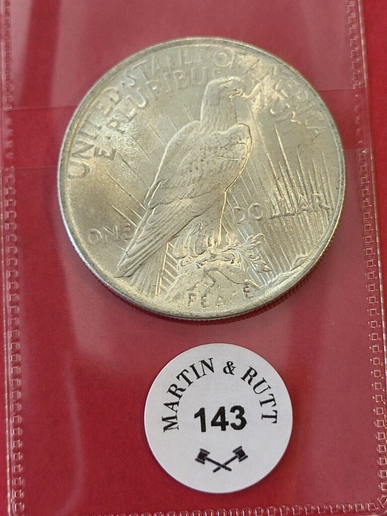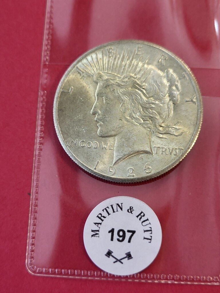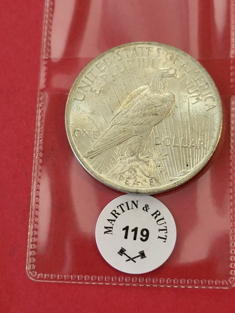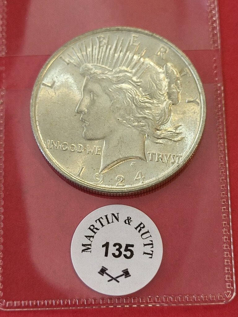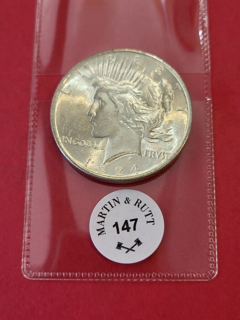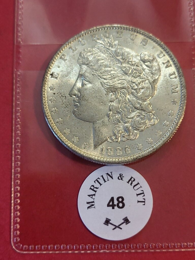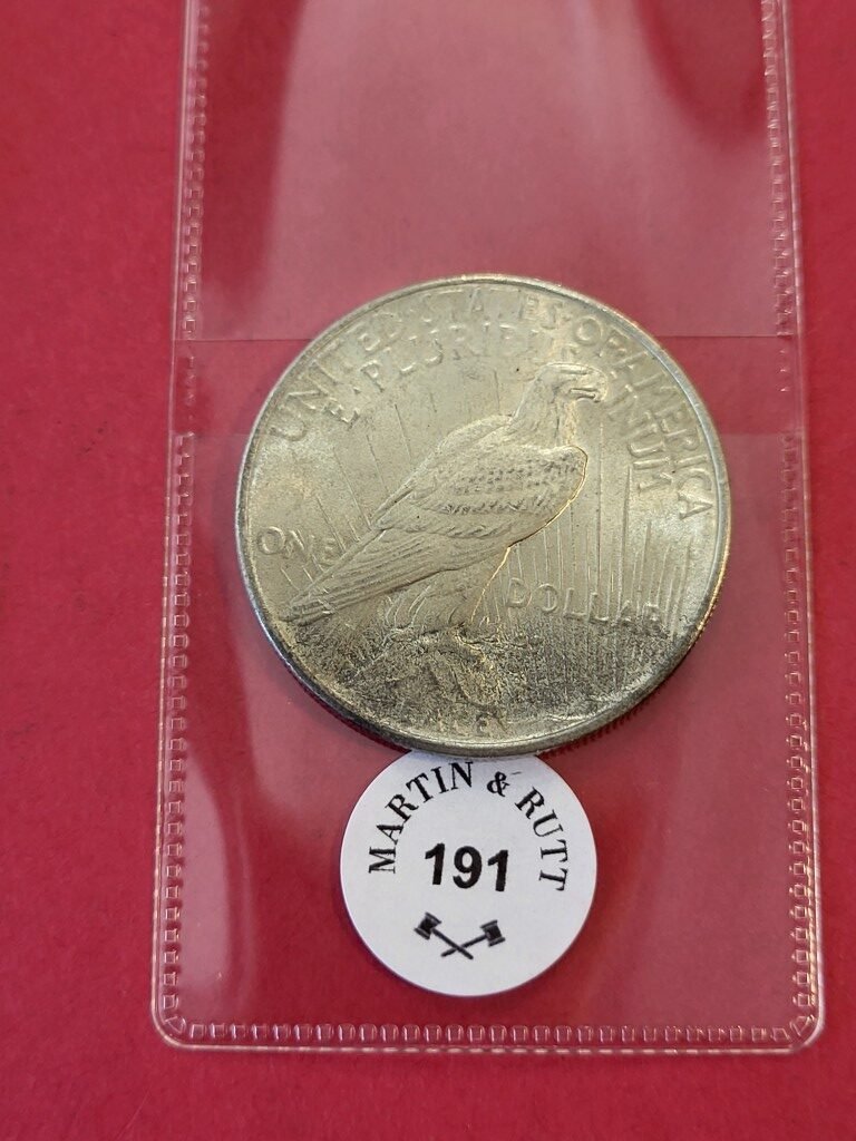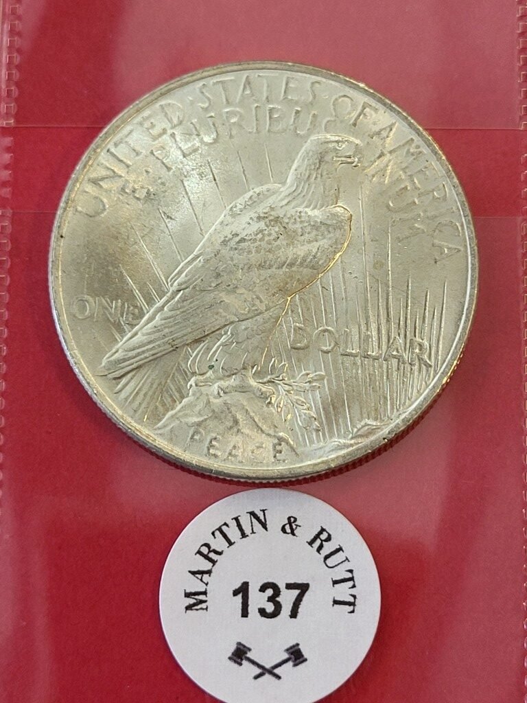 GUNS & COINS: Remington Model 760 30.06 rifle w/ Leupold scope; Stevens 16-gauge double barrel; Springfield 12-gauge double barrel; Stevens model 311 20-gauge double barrel; L.C. Smith 16-gauge double barrel; H&R Topper 410-gauge single shot; Winchester model 255 .22-mag. w/ Weaver scope; Thompson Center .45 cal. Flintlock muzzleloader; Glock 9mm Gen-4 pistol in case w/ 2 clips; Glock 26 Gen-4 9mm pistol w/ 3” barrel in case w/ 3 clips; (2) Springfield XD 9mm clips; Italy starter pistol; digital Fortress gun safe; boxes of misc. ammunition; 1934 $1,000 bill; 1881 $5 gold coin; 150+ silver dollars; hundreds of other silver coins; 200-cataloged lots. A photo of every coin lot is in the picture section; catalog is also attached.