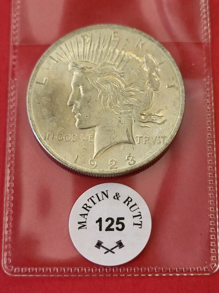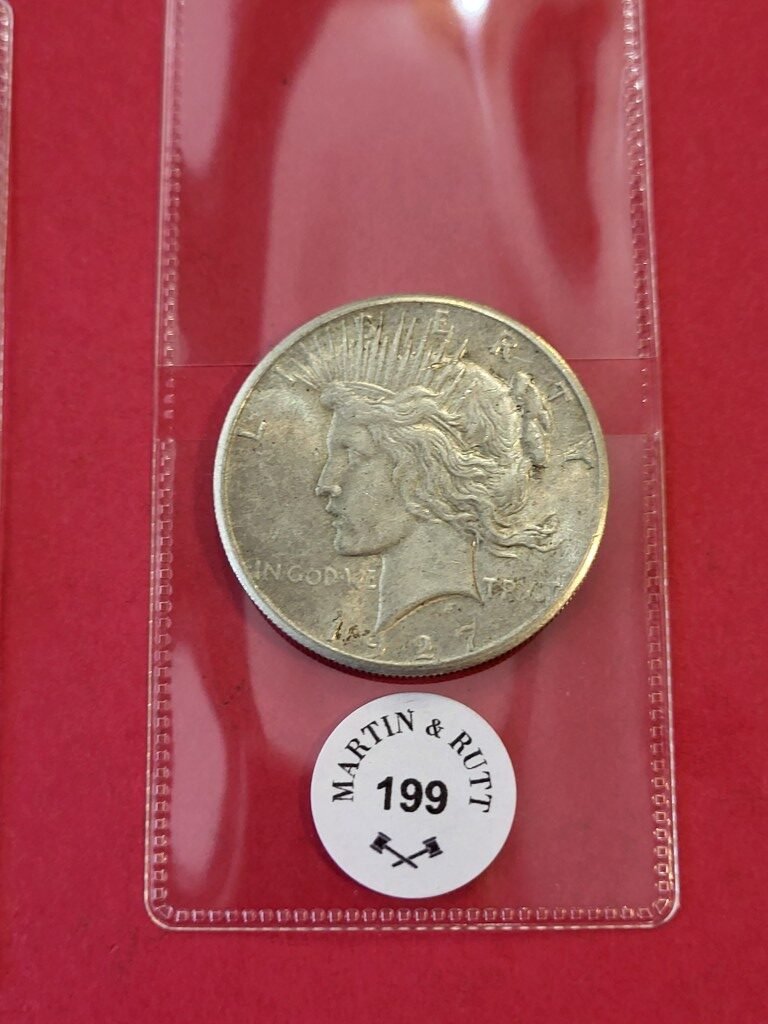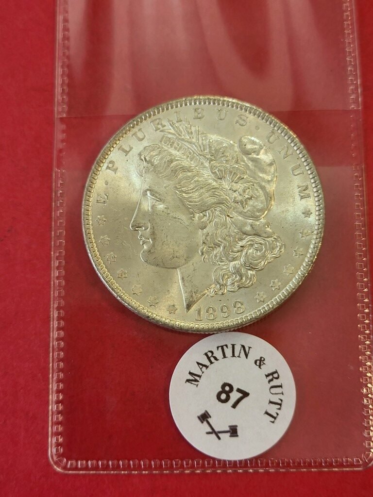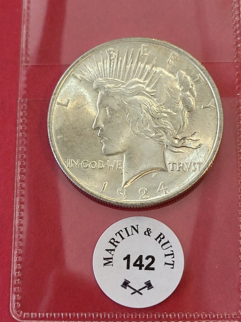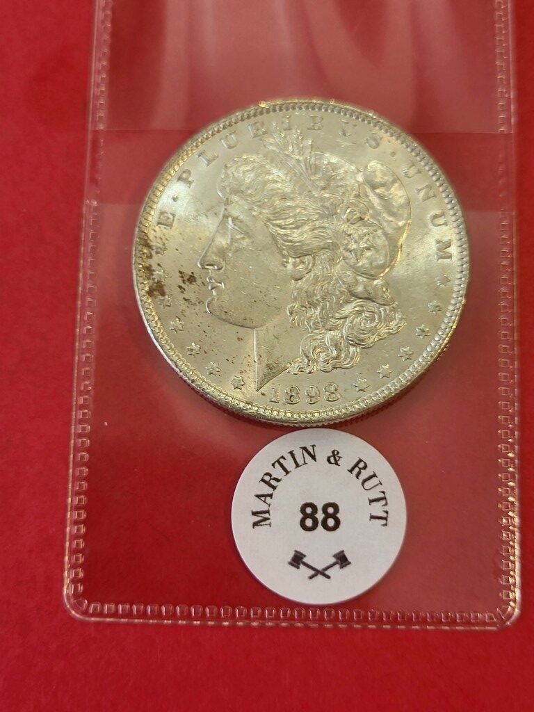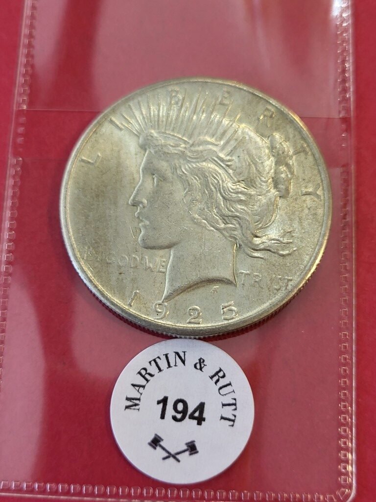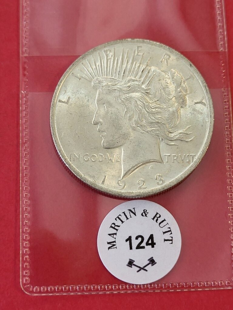 GUNS & COINS: Remington Model 760 30.06 rifle w/ Leupold scope; Stevens 16-gauge double barrel; Springfield 12-gauge double barrel; Stevens model 311 20-gauge double barrel; L.C. Smith 16-gauge double barrel; H&R Topper 410-gauge single shot; Winchester model 255 .22-mag. w/ Weaver scope; Thompson Center .45 cal. Flintlock muzzleloader; Glock 9mm Gen-4 pistol in case w/ 2 clips; Glock 26 Gen-4 9mm pistol w/ 3” barrel in case w/ 3 clips; (2) Springfield XD 9mm clips; Italy starter pistol; digital Fortress gun safe; boxes of misc. ammunition; 1934 $1,000 bill; 1881 $5 gold coin; 150+ silver dollars; hundreds of other silver coins; 200-cataloged lots. A photo of every coin lot is in the picture section; catalog is also attached.