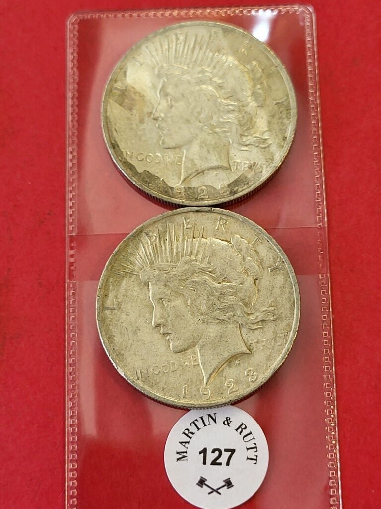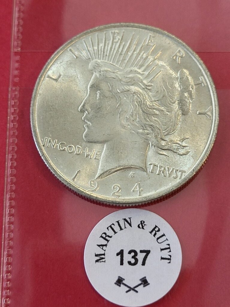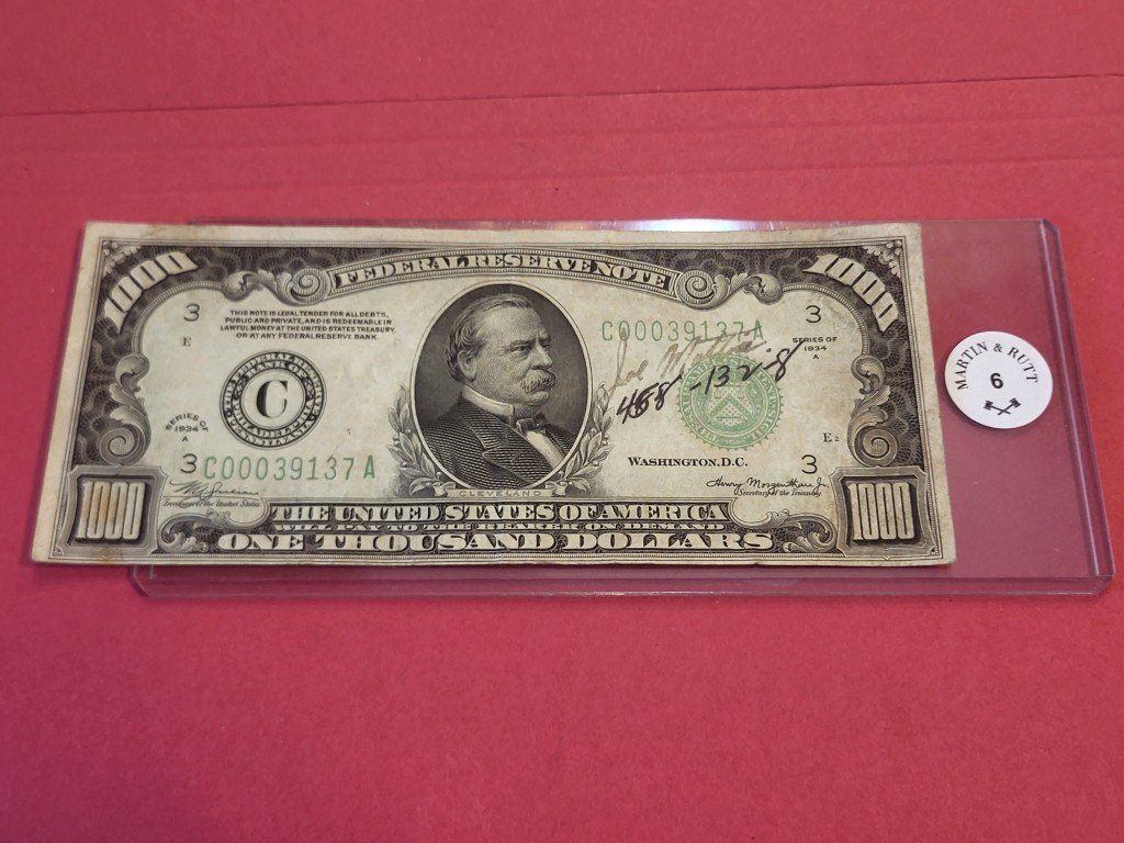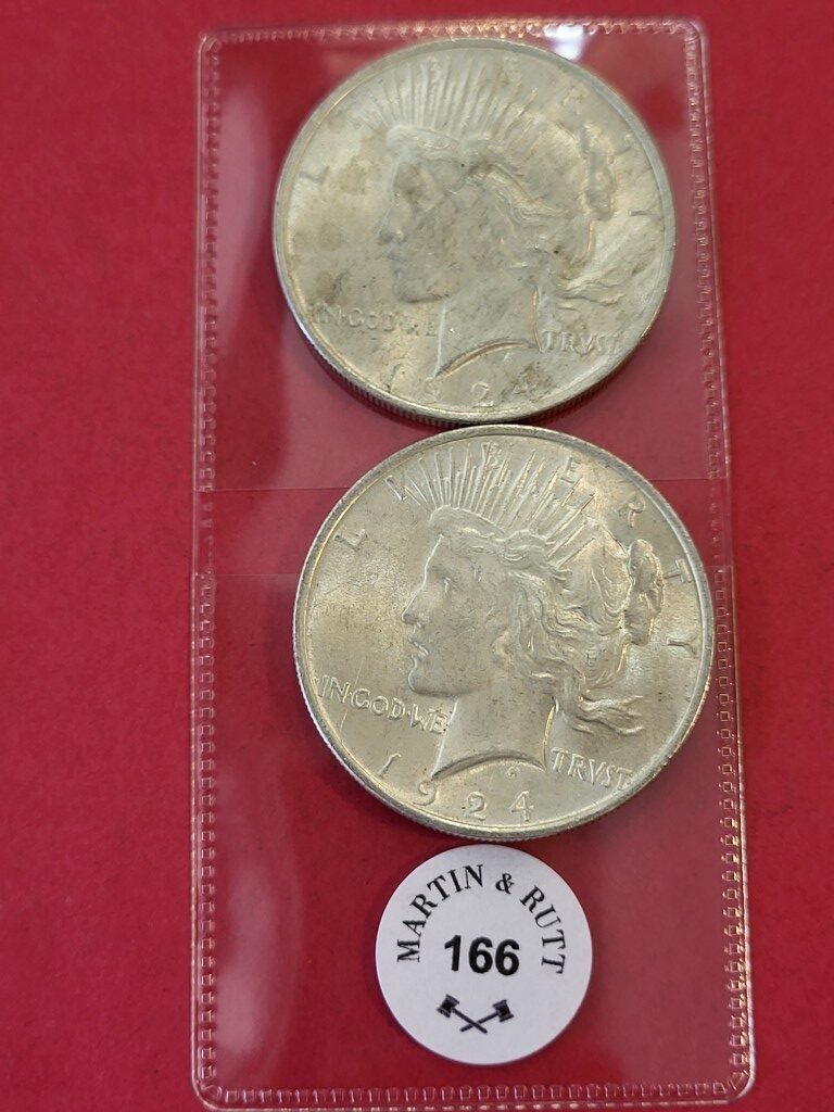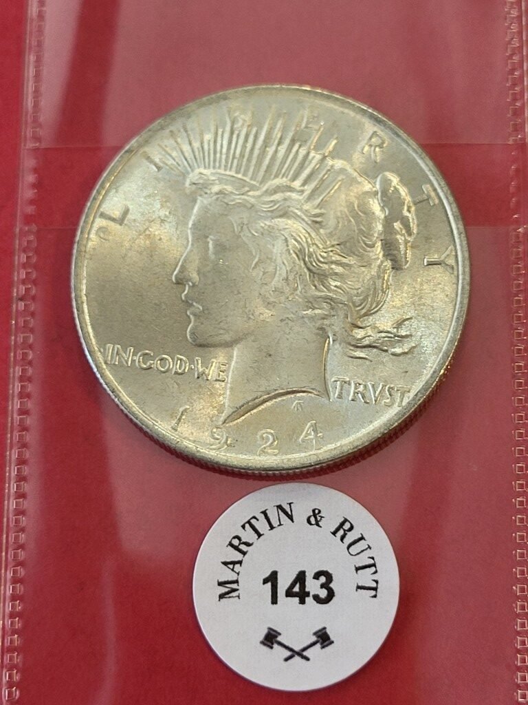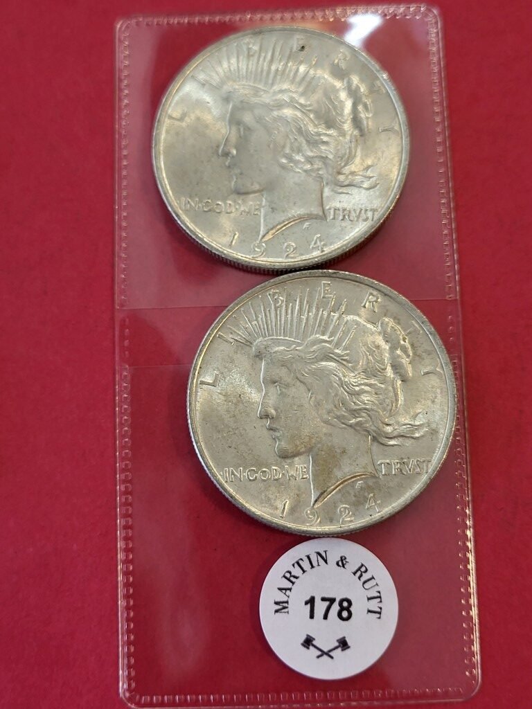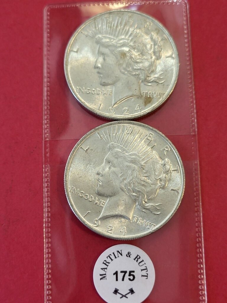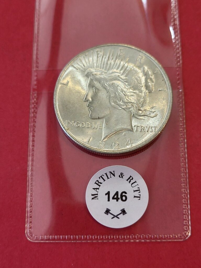 GUNS & COINS: Remington Model 760 30.06 rifle w/ Leupold scope; Stevens 16-gauge double barrel; Springfield 12-gauge double barrel; Stevens model 311 20-gauge double barrel; L.C. Smith 16-gauge double barrel; H&R Topper 410-gauge single shot; Winchester model 255 .22-mag. w/ Weaver scope; Thompson Center .45 cal. Flintlock muzzleloader; Glock 9mm Gen-4 pistol in case w/ 2 clips; Glock 26 Gen-4 9mm pistol w/ 3” barrel in case w/ 3 clips; (2) Springfield XD 9mm clips; Italy starter pistol; digital Fortress gun safe; boxes of misc. ammunition; 1934 $1,000 bill; 1881 $5 gold coin; 150+ silver dollars; hundreds of other silver coins; 200-cataloged lots. A photo of every coin lot is in the picture section; catalog is also attached.
