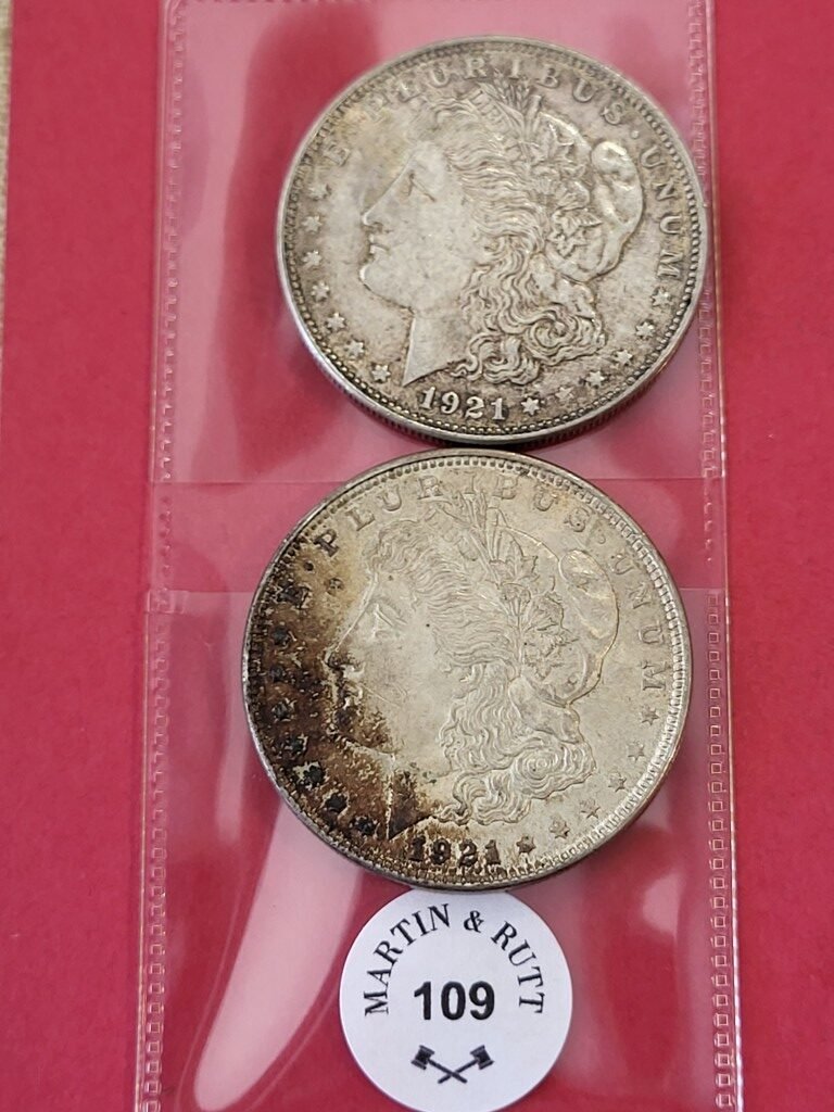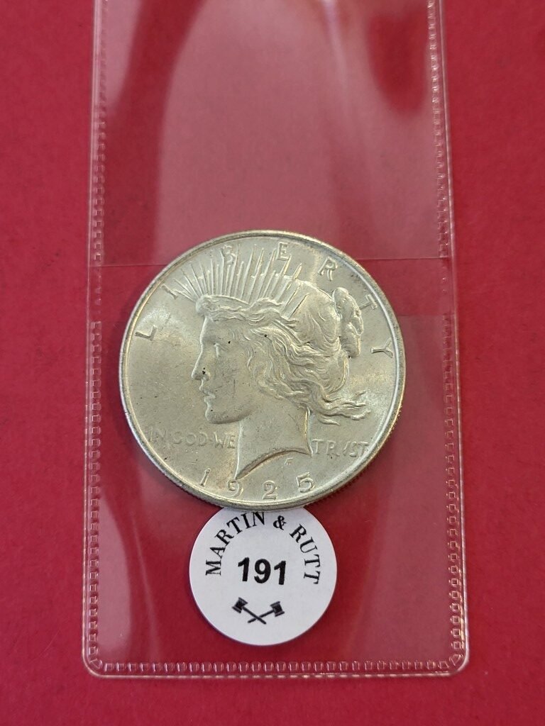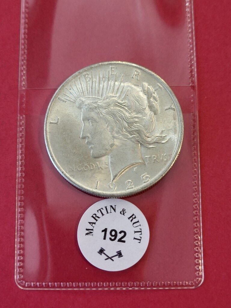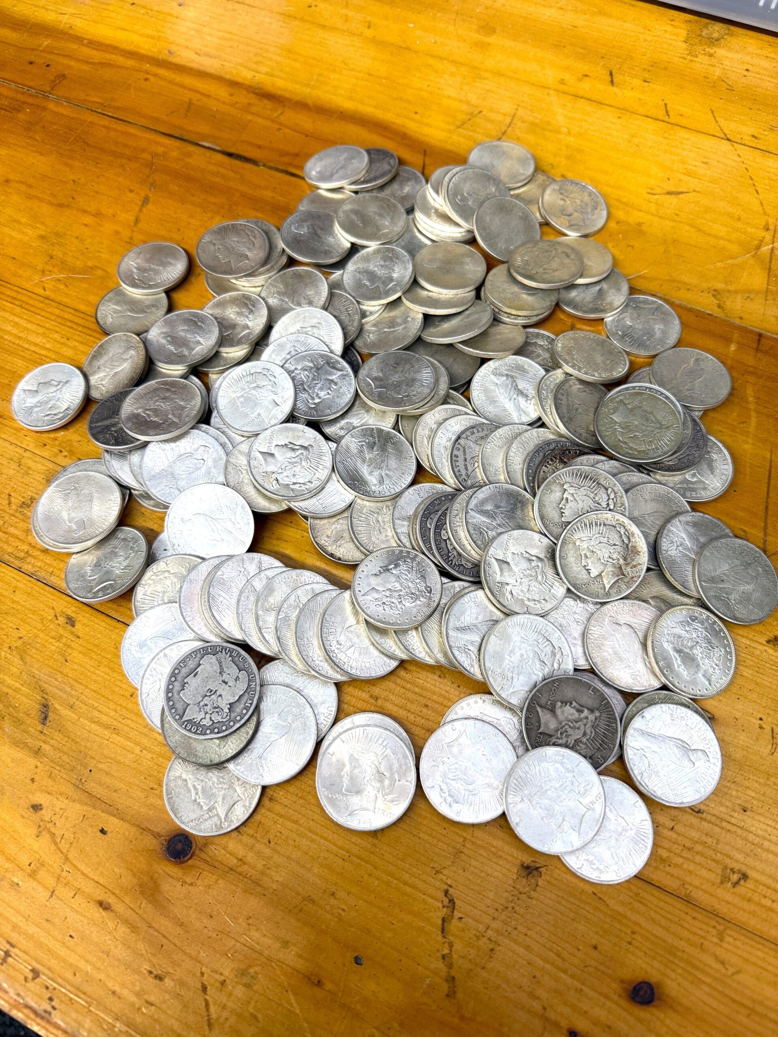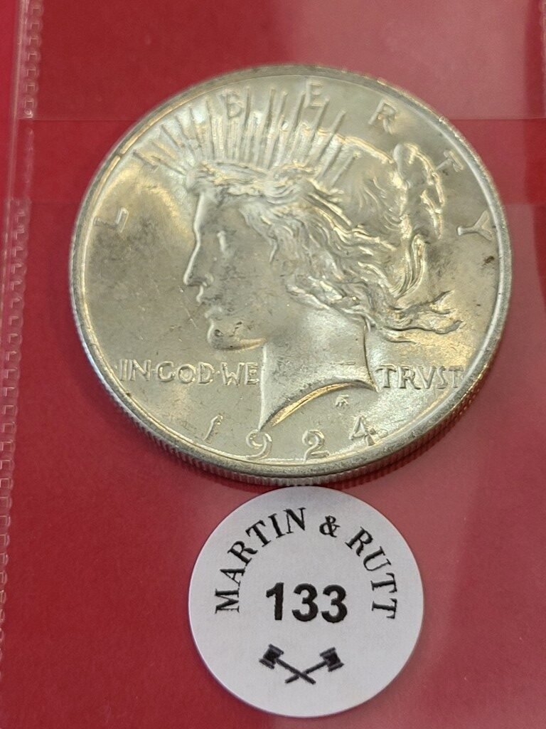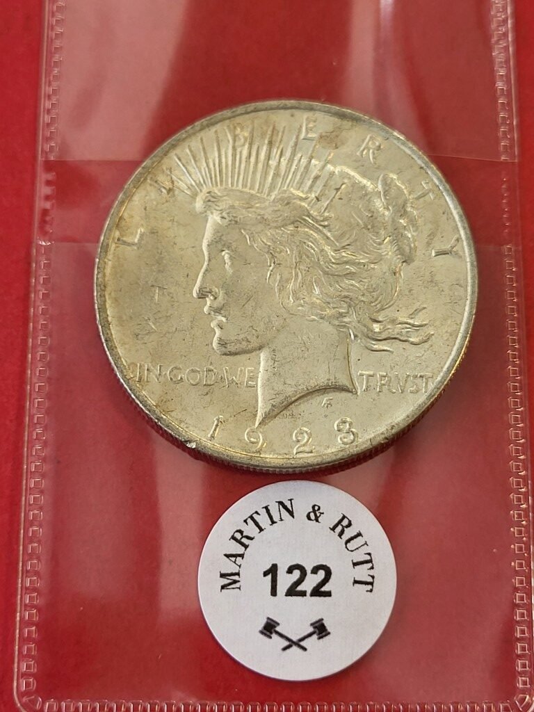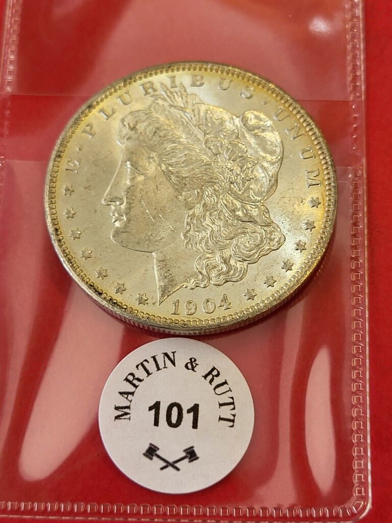 GUNS & COINS: Remington Model 760 30.06 rifle w/ Leupold scope; Stevens 16-gauge double barrel; Springfield 12-gauge double barrel; Stevens model 311 20-gauge double barrel; L.C. Smith 16-gauge double barrel; H&R Topper 410-gauge single shot; Winchester model 255 .22-mag. w/ Weaver scope; Thompson Center .45 cal. Flintlock muzzleloader; Glock 9mm Gen-4 pistol in case w/ 2 clips; Glock 26 Gen-4 9mm pistol w/ 3” barrel in case w/ 3 clips; (2) Springfield XD 9mm clips; Italy starter pistol; digital Fortress gun safe; boxes of misc. ammunition; 1934 $1,000 bill; 1881 $5 gold coin; 150+ silver dollars; hundreds of other silver coins; 200-cataloged lots. A photo of every coin lot is in the picture section; catalog is also attached.