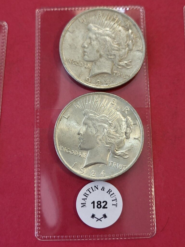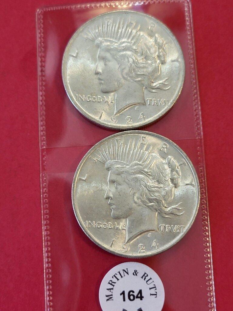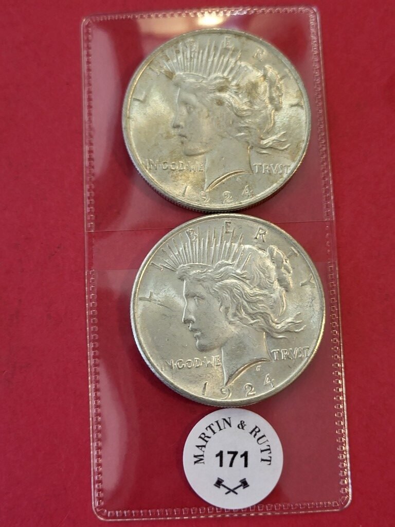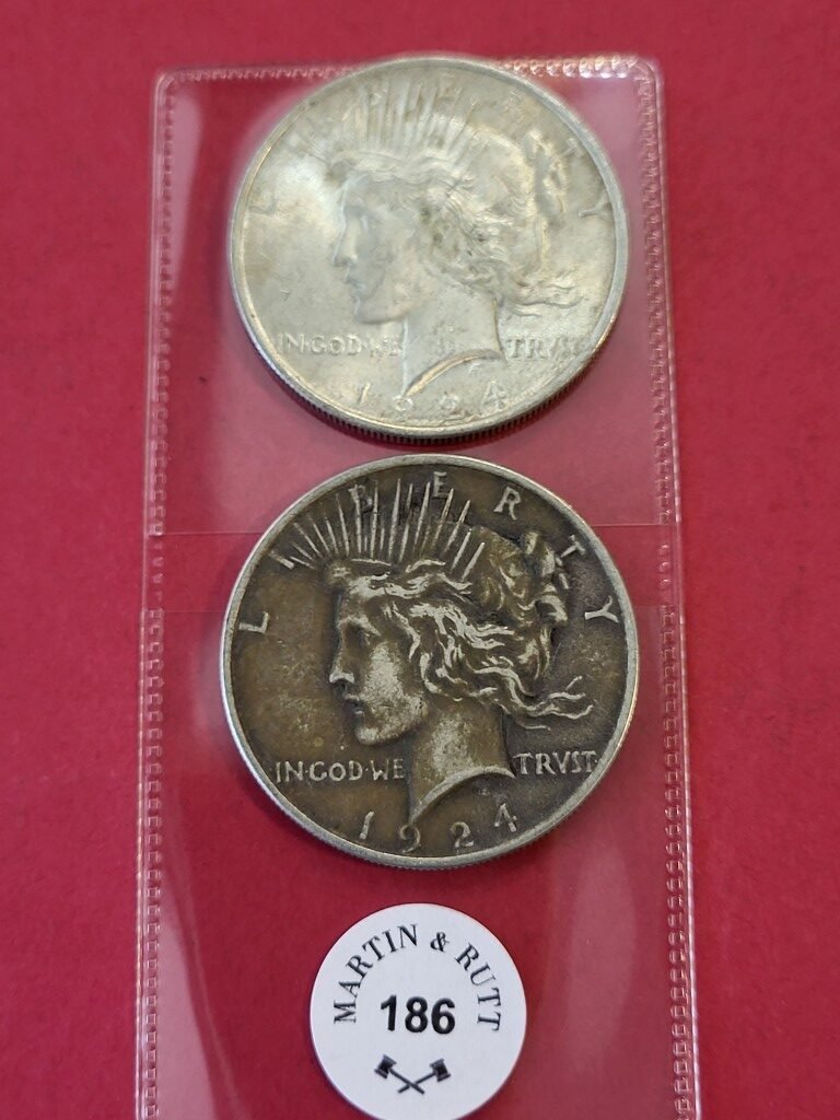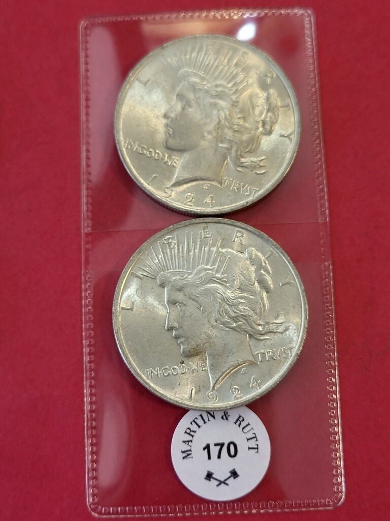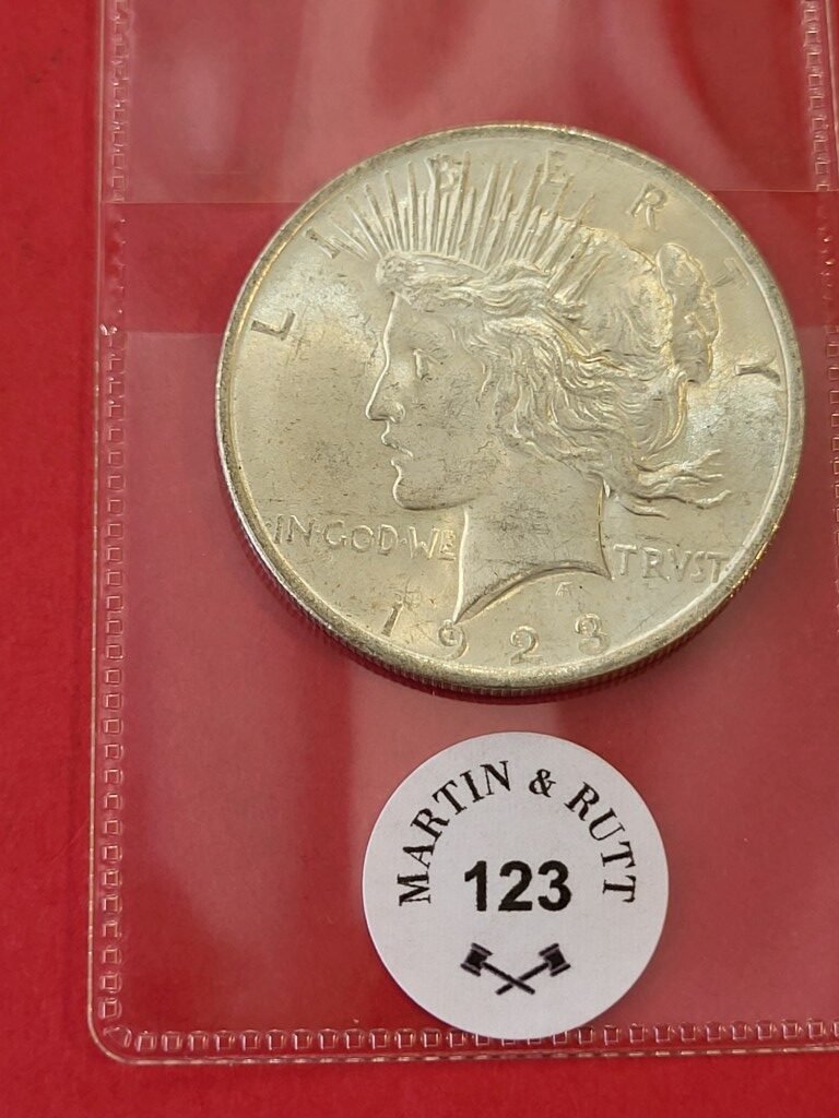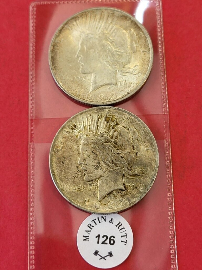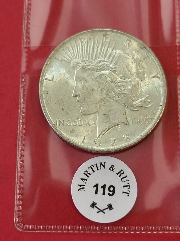 GUNS & COINS: Remington Model 760 30.06 rifle w/ Leupold scope; Stevens 16-gauge double barrel; Springfield 12-gauge double barrel; Stevens model 311 20-gauge double barrel; L.C. Smith 16-gauge double barrel; H&R Topper 410-gauge single shot; Winchester model 255 .22-mag. w/ Weaver scope; Thompson Center .45 cal. Flintlock muzzleloader; Glock 9mm Gen-4 pistol in case w/ 2 clips; Glock 26 Gen-4 9mm pistol w/ 3” barrel in case w/ 3 clips; (2) Springfield XD 9mm clips; Italy starter pistol; digital Fortress gun safe; boxes of misc. ammunition; 1934 $1,000 bill; 1881 $5 gold coin; 150+ silver dollars; hundreds of other silver coins; 200-cataloged lots. A photo of every coin lot is in the picture section; catalog is also attached.