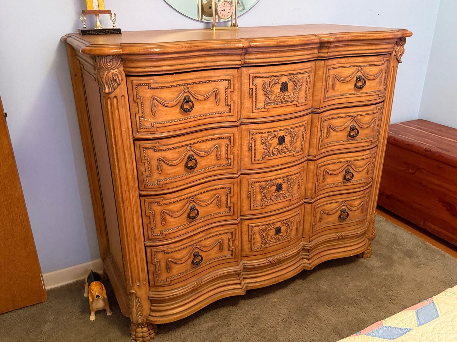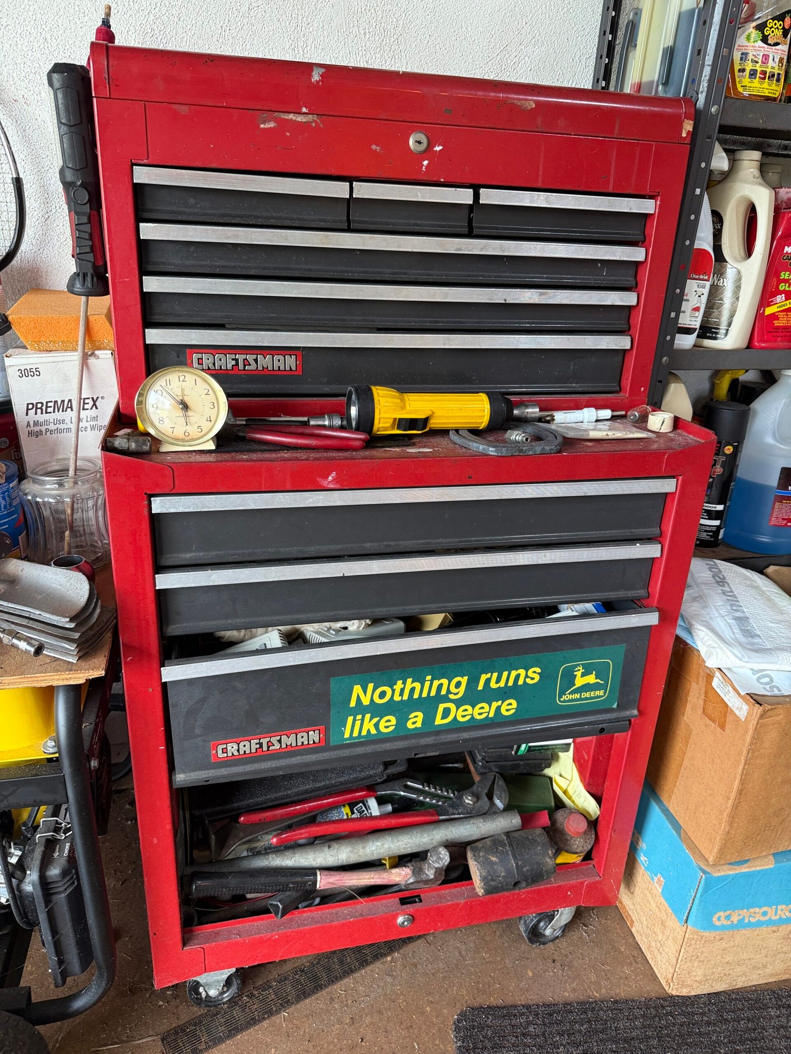 PERSONAL PROPERTY:  Maroon 2014 Buick Lacrosse, leather interior, V-6 VVT engine, 54,000 miles, nice; Silver 2011 Chevy Colorado pickup, LT trim w/ cloth interior, 4-door, 3.7-L engine, 4×4, chrome wheels, 157,000 miles; 5’x 8’ Big-Tex trailer w/ lay down ramp (needs new wood); 1839 grandfather’s clock by “William Fraser”, New Ephrata Pa, 8-day, beautiful painted face, runs great; French double chest of drawers; 2-pc blonde bedroom suite; old Victor safe; cedar chest & wardrobe; modern cherry grandmothers clock; maple table w/ 6-chairs; quilts & soft goods; singer treadle sewing machine; iron table w/4-chairs; brown leather sofa & recliner; boston rocker; cherry corner cabinet; cherry pewter cabinet; craftsman tool chest on wheels; 4,000 watt generator; misc. mechanic tools; craftsman scroll saw; 10” radial arm saw; lots of small tools & hardware; John Deere 318 lawn tractor w/ 3pt. hookup, 2294 hours; 1948 Ford 8-N tractor, original 6 volt, runs good; 1-bottom plow; older 60” brush mower; Ariens 12.5-hp snowblower w/ 28” cut; Troy-Bilt 5-hp lawn edger; 15-gal. orchard sprayer; Echo weed trimmer; Delta 10” table saw; Jackson lawn cart; Ariens 21” S.P. mower; (2) cast iron troughs; old 12” iron post bell; old license plates; poly lawn roller; 2-hole corn sheller; bird bath; step ladders; old balance scales; 5-gal. crock; dog boot-scraper; galv. single rinse tub; (5) Ned Foltz redware plates; Pyrex bowls; knife carving set; lots of pretty glassware; sleds; more unlisted.