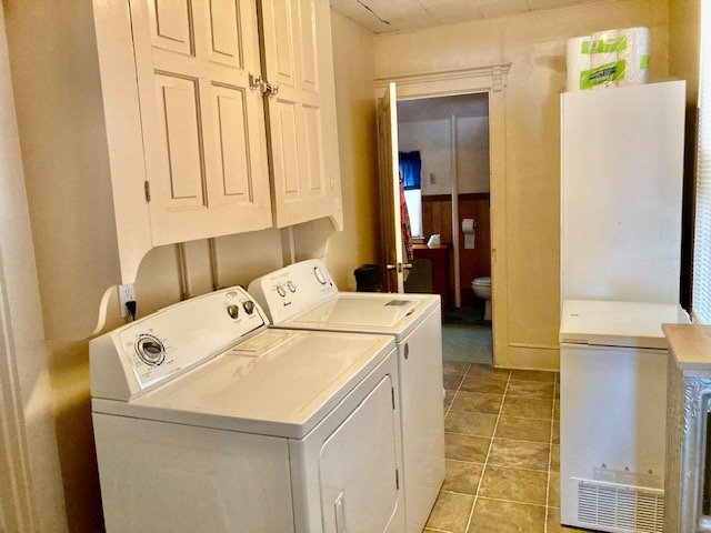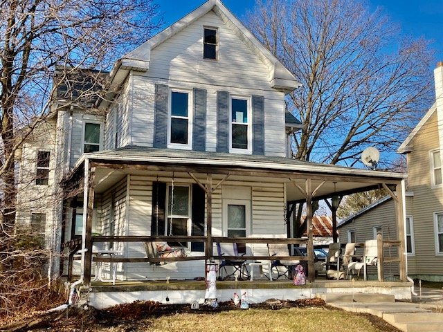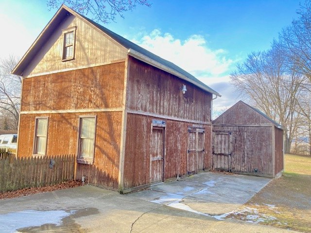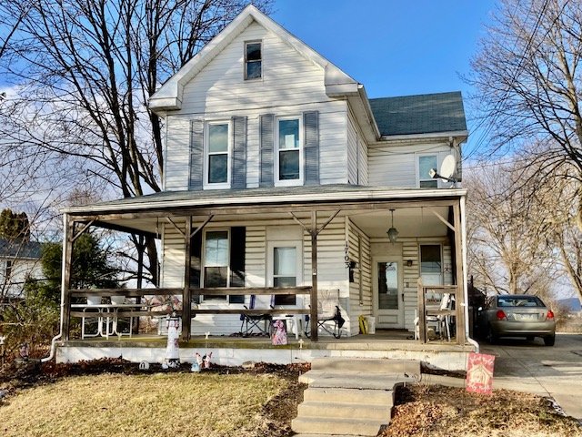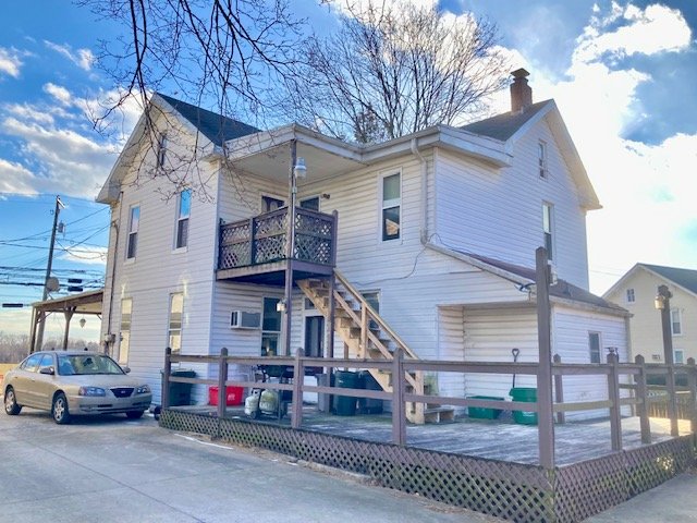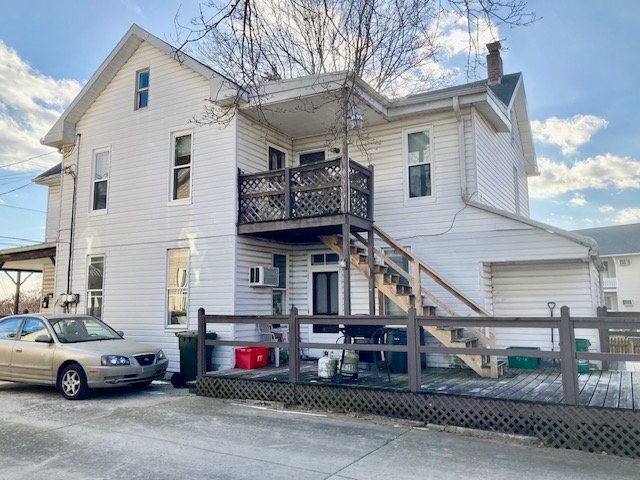 REAL ESTATE: consists of a 2020 sq. ft. traditional frame vinyl sided 2-story 2-unit dwelling & 2-story frame storage barn on a .40-acre lot. UNIT #1) Main floor features a 17.5’x10.5’ eat-in style kitchen w/modern white cabinetry, range, microwave & fridge; a 10’x17’ living room; BR #1) 16’x12’ w/closet; BR #2) 14’x14’ w/dbl closet; laundry w/washer & dryer; full bath; basement: 12.5’x22.5’ family room w/carpet; utility room w/oil furnace HW heat & 275 gallon fuel tank; inviting wrap-around covered front porch; rear deck; per mo. rent: $940. UNIT #2) 2nd floor features a 17’x12’ living room; a 17’x10.5’ eat-in style kitchen w/modern white cabinetry, range & fridge; BR #1) 12’x15’ w/closet; BR #2) 13.5’x13’; full bath; all new insulated windows on 2nd level; per mo. rent: $1,200. Public water & sewer; annual owner expenses: taxes: $3667; trash: $637; water & sewer: $1167; 2025 heat: $2,693. Total annual expenses: $8,164. Total annual income: $25,680. Approx Annual Profit: $17,516. Outbuilding: a 20’x24’ frame 2-story 3-section storage barn; nice wide concrete driveway and parking area.