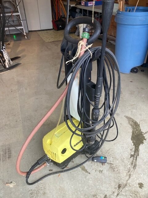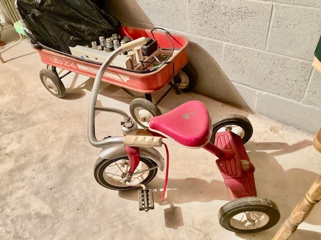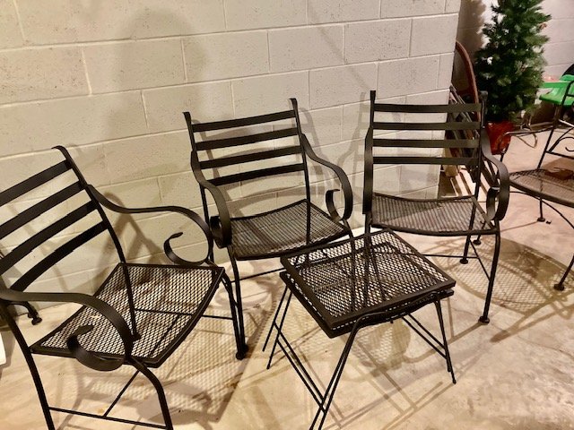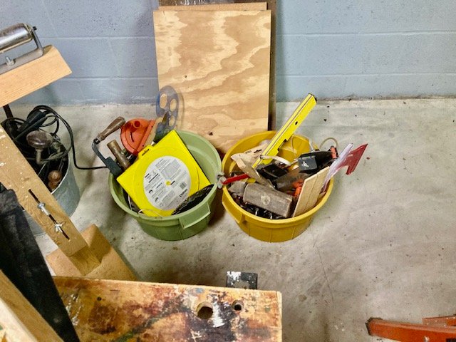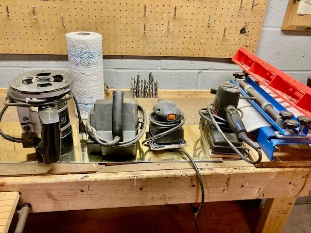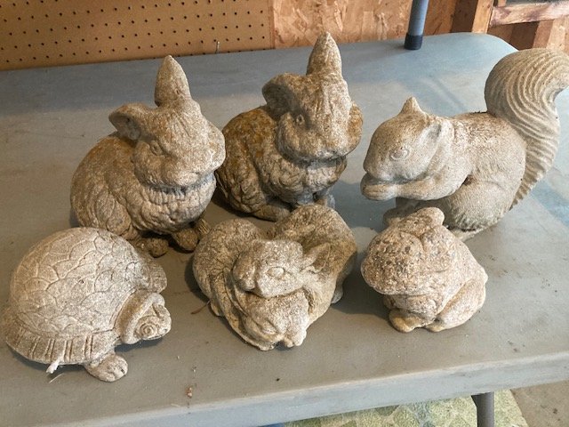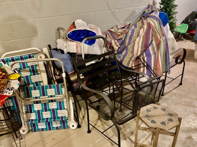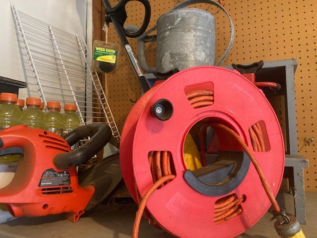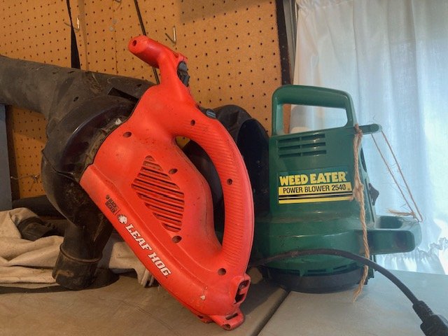 GARAGE/SHOP ITEMS: 10” Delta table saw; 4” jointer; 2-shop vacs; lots of power & hand tools; tool box; Honda 21” SP mower; Snapper 21” snow blower; Werner 10’ stepladder; air compressor; pressure washer; leaf blowers; 3-poly storage cabinets; shelving; nice metal patio set; wheelbarrow; concrete lawn animals; etc.