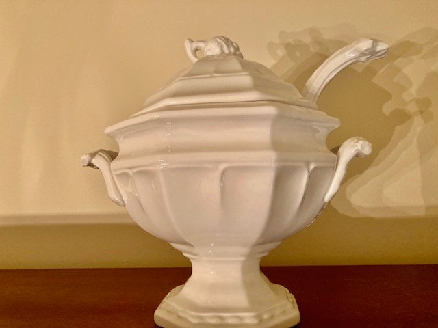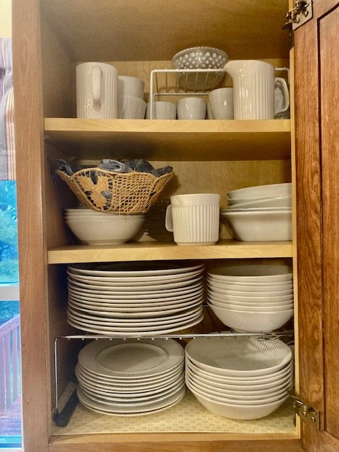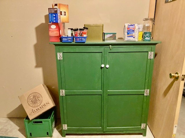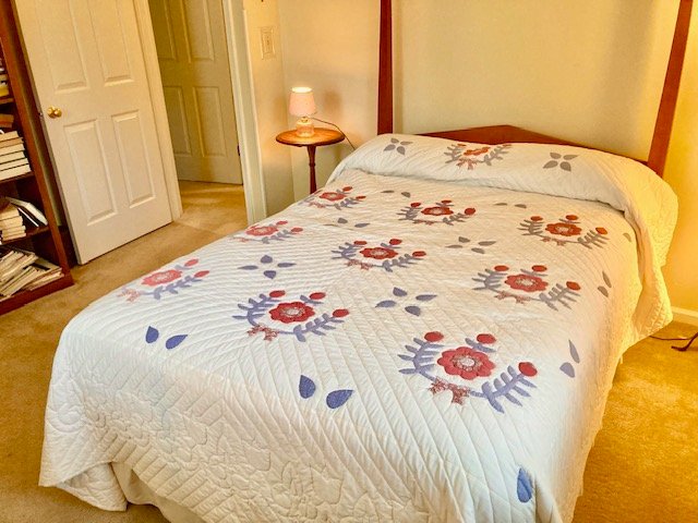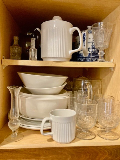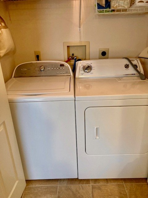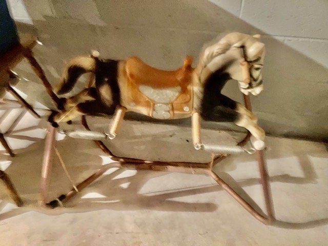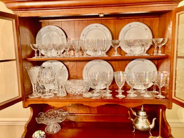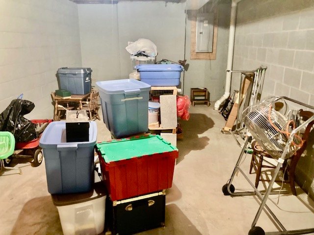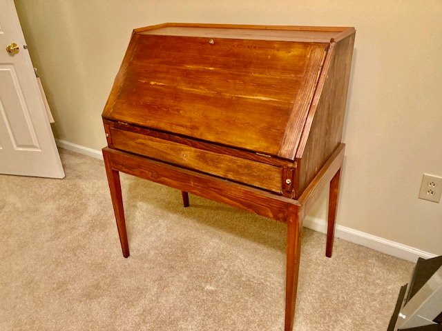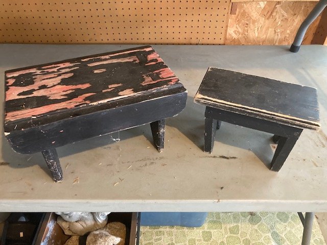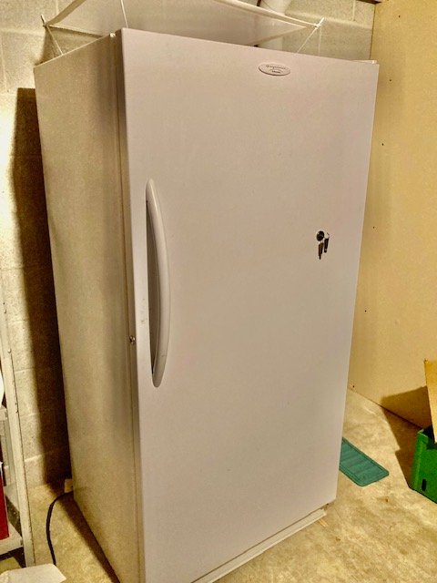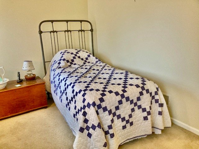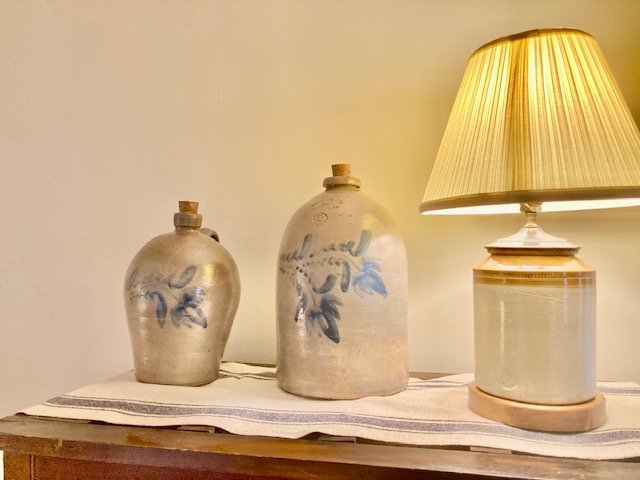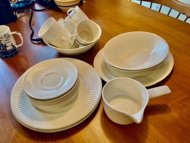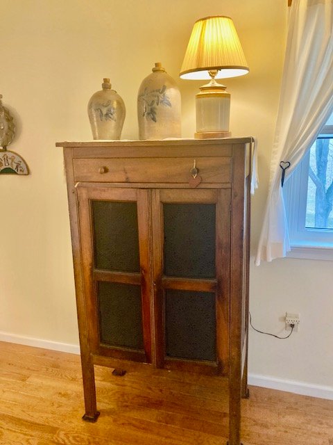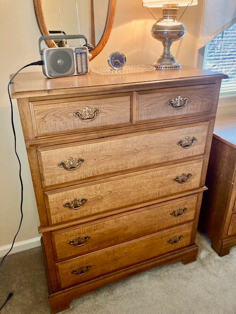 PERSONAL PROPERTY: blue decorated crocks & jugs; blue banded yellow ware bowls (nice); 2-Whirlpool upright freezers; Whirlpool washer & dryer; Howard piano (nice); Cherry hutch & drop-leaf table w/4-chairs; dinette set; sofa & chair; 2-doble beds; 2-maple high chests; antique slant front desk; bookcase; Schwinn treadmill (good); pine wash stand; 2-wooden rockers; tin punched pie safe; mini blanket chest; ginger bread mantle clock; repro radio; quilts & blankets; antique silver caddy; splint baskets; kitchen & baking items; 2-dinnerware sets; etc.