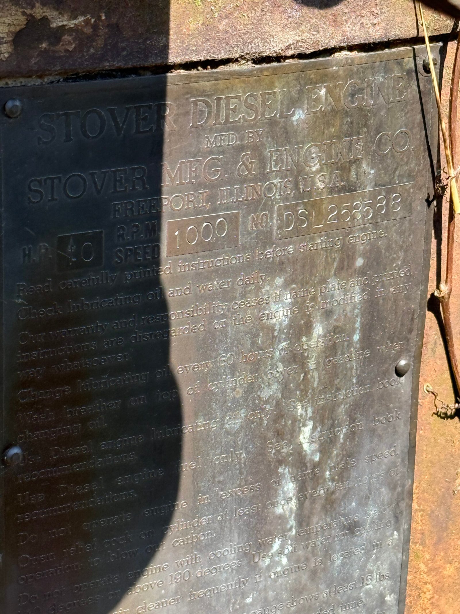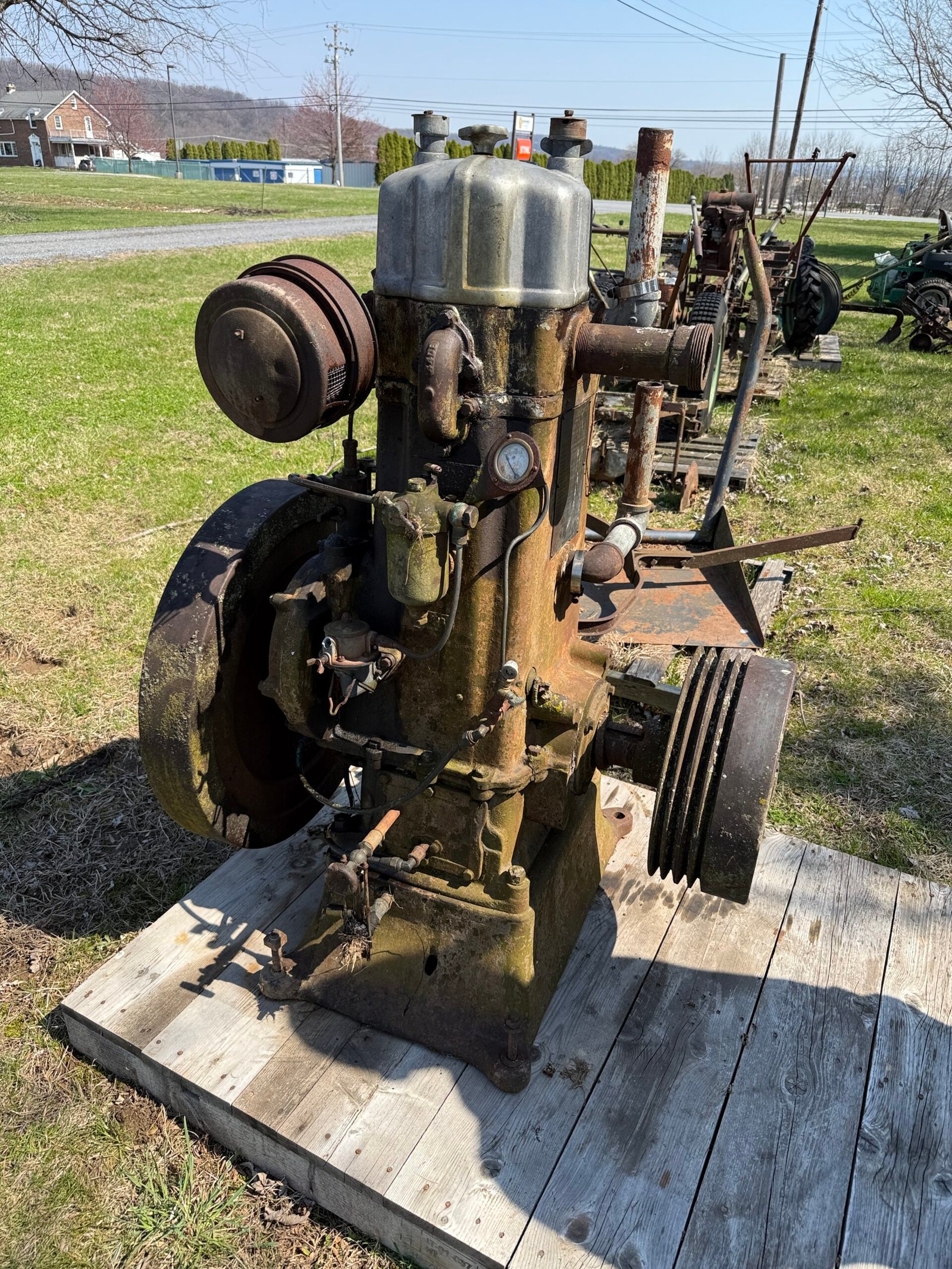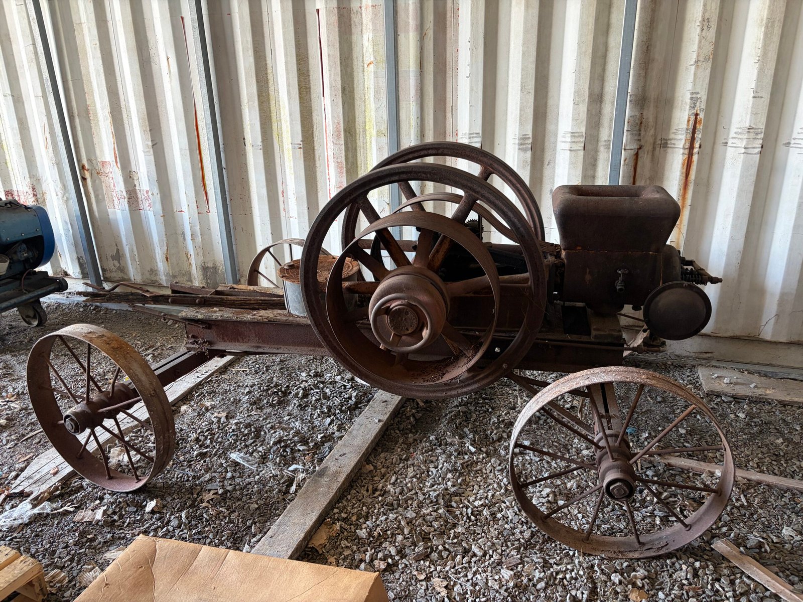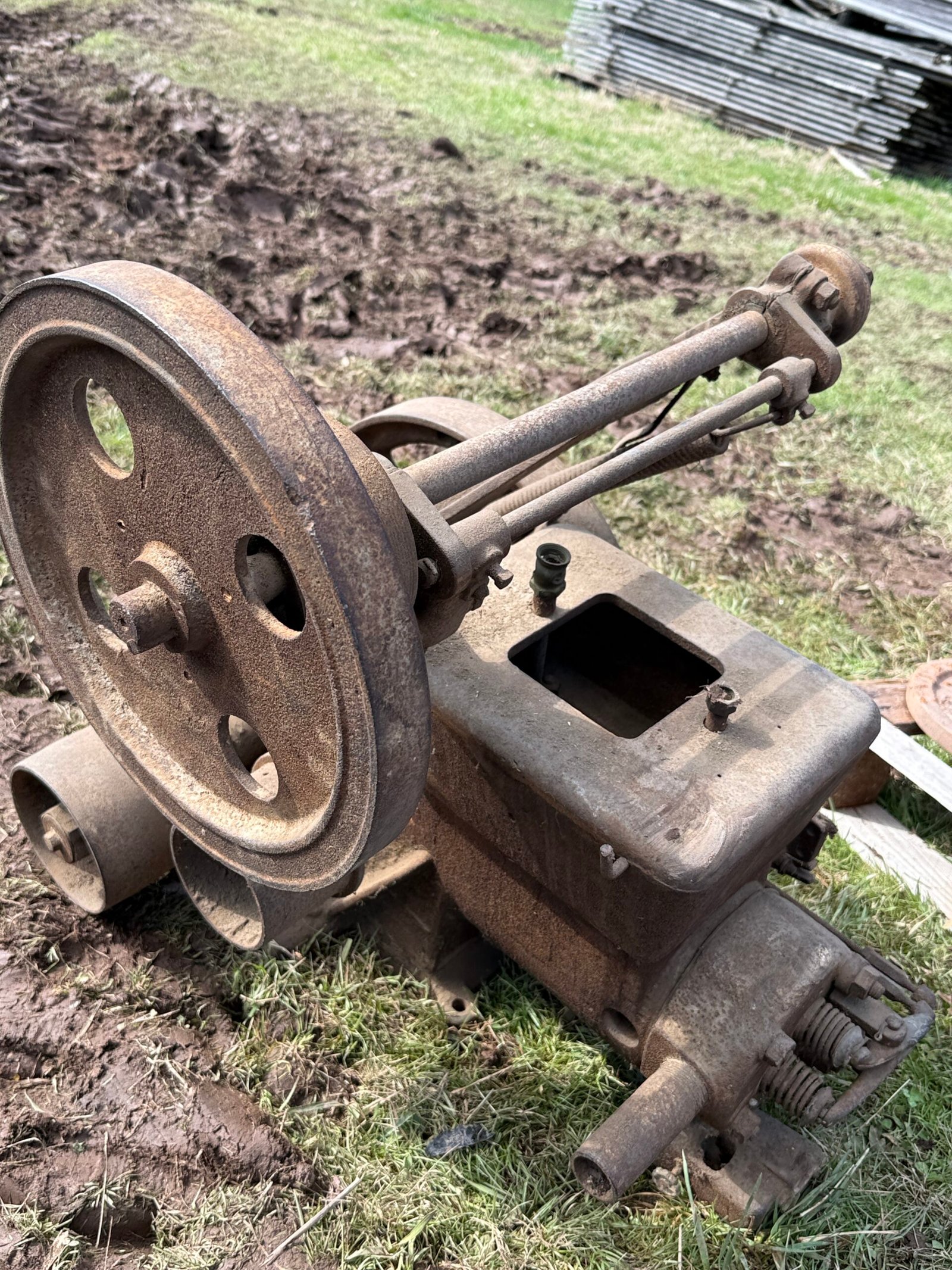 engine (#724); 10hp Stover diesel engine & parts; Associated 6hp hit-miss engine on cart; hit-miss engine