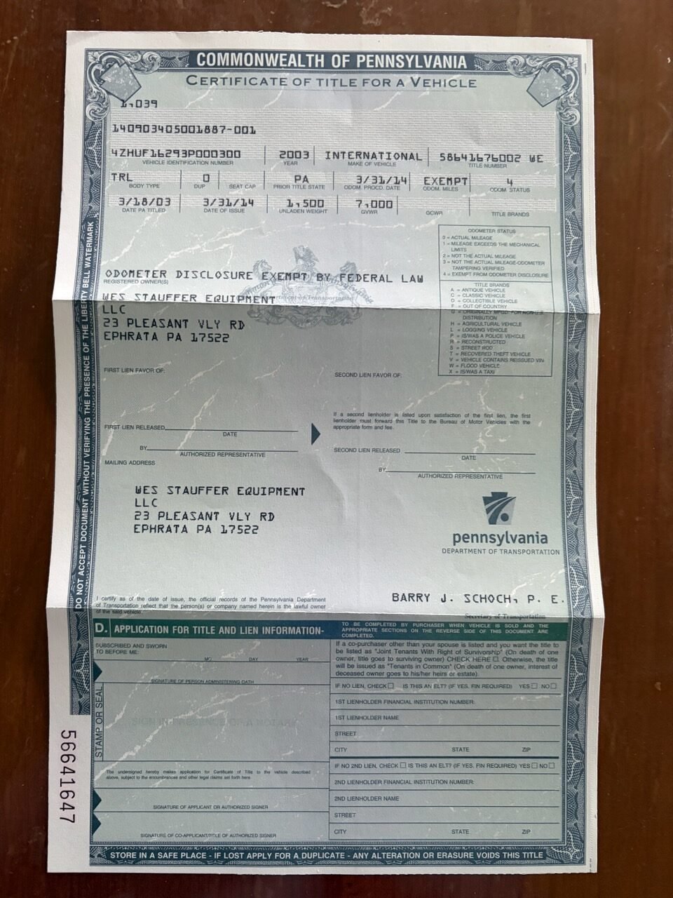 AUCTION FOR: WES STAUFFER EQUIPMENT, LLC