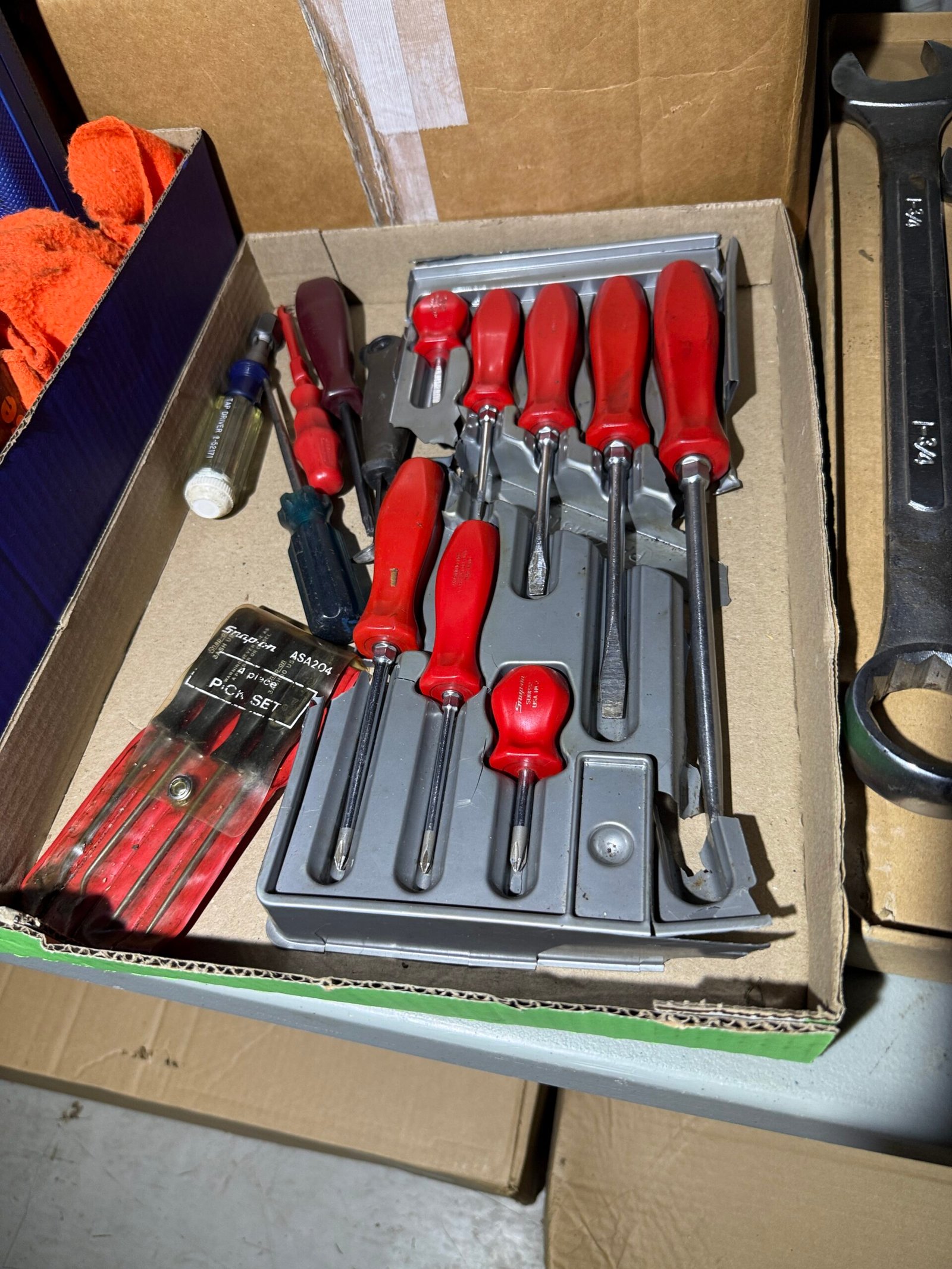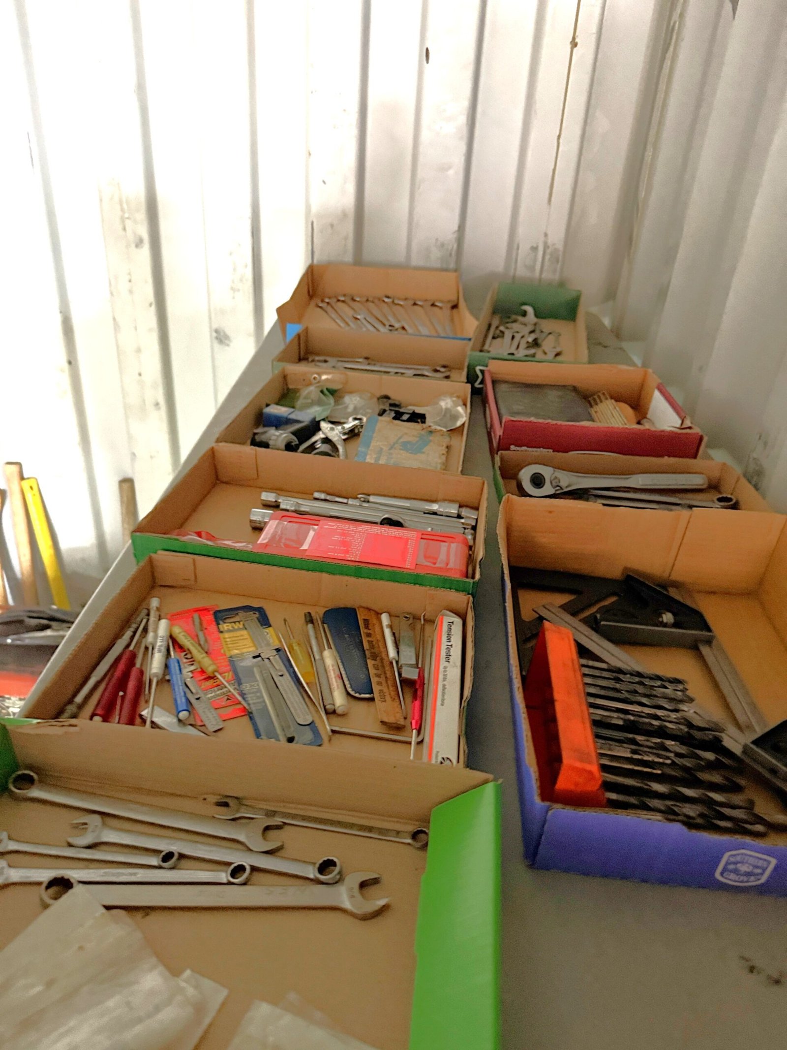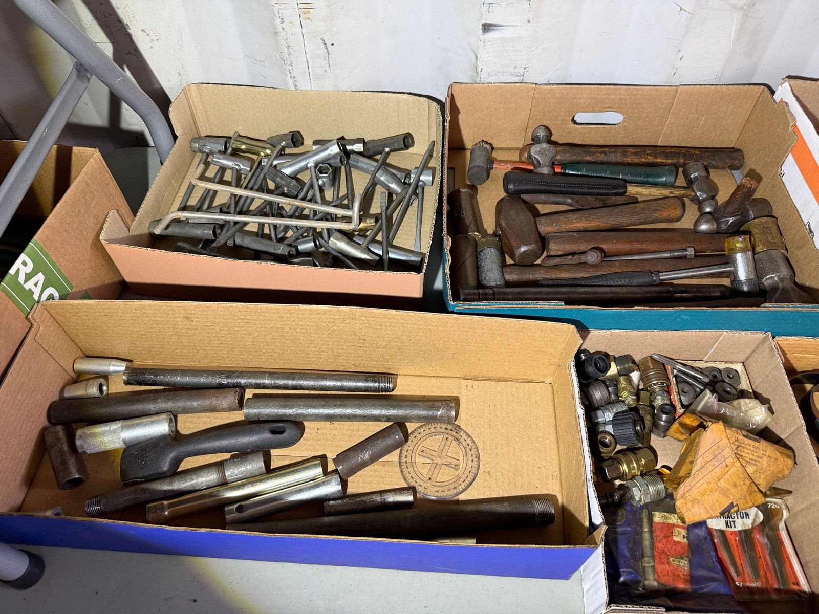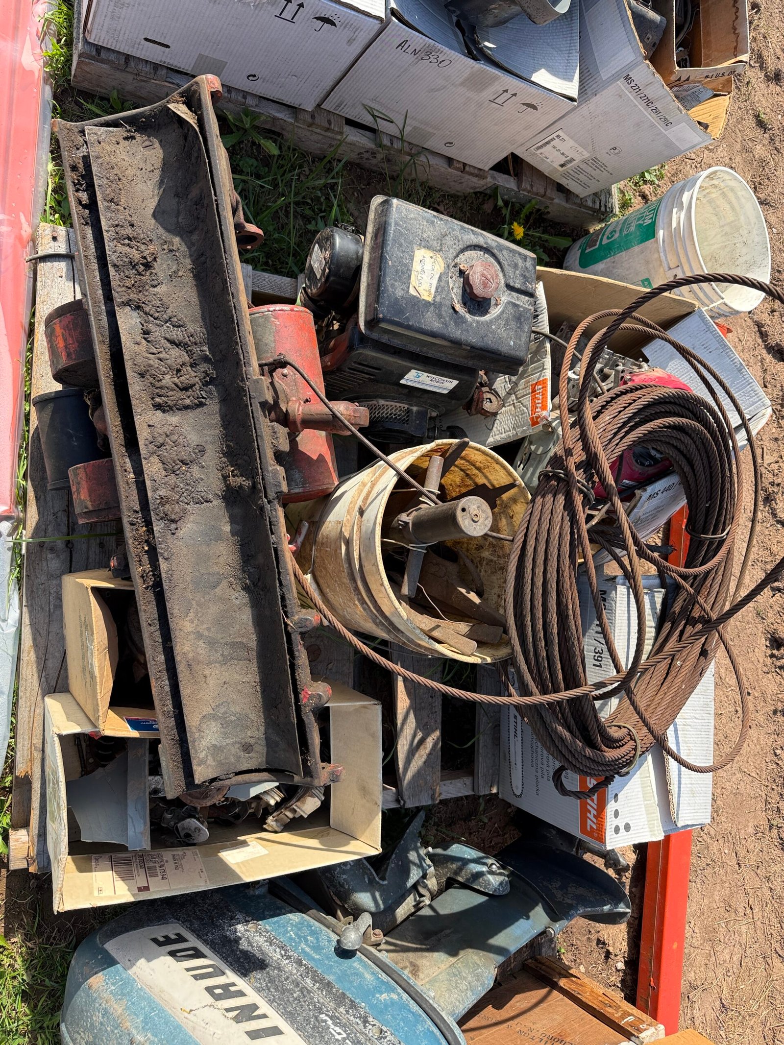 jack; car jacks; 5’ front loader bucket; belt drive buck saw; power tools; Sun Service alternator tester;