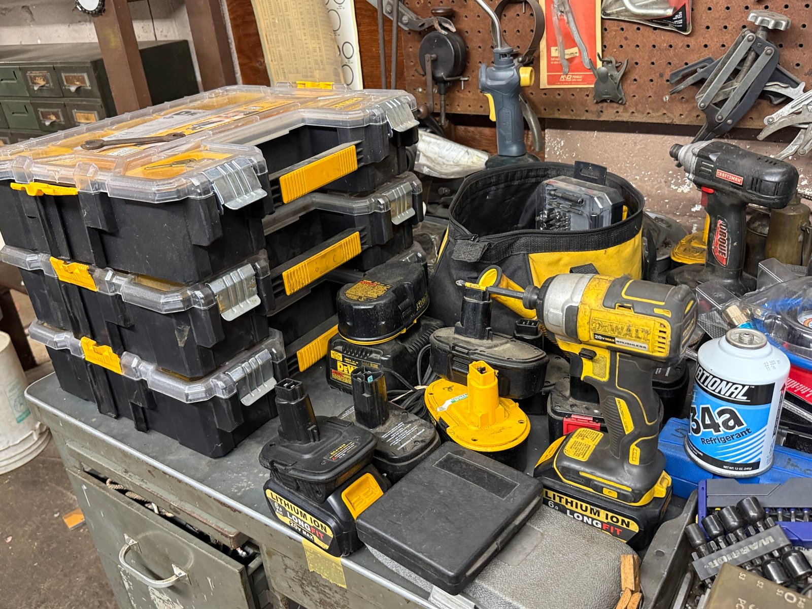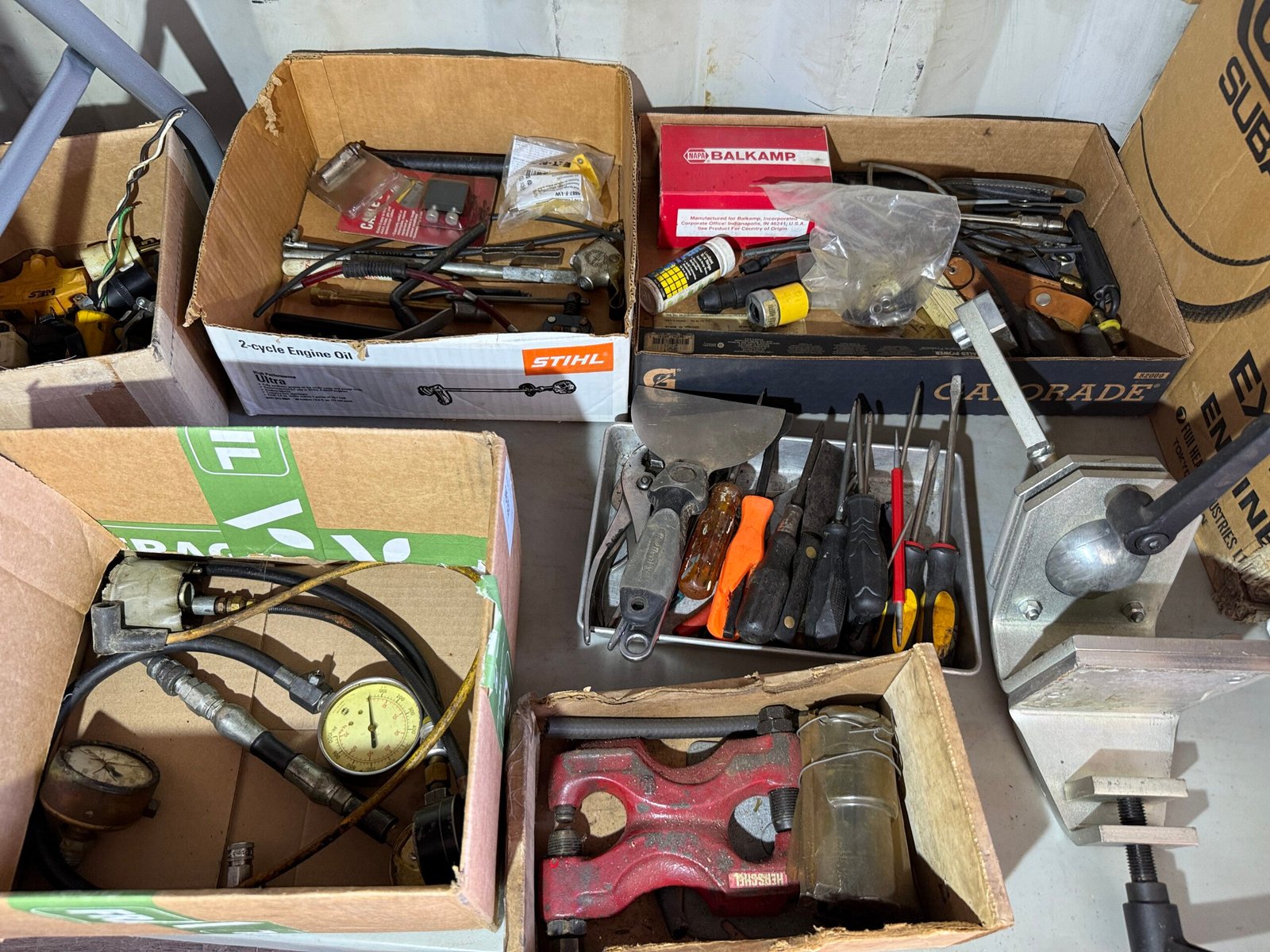 Tools for Rebuilding small engines; Dewalt tools; Columbia & Wilton & Reed bench vices; hydraulic pallet