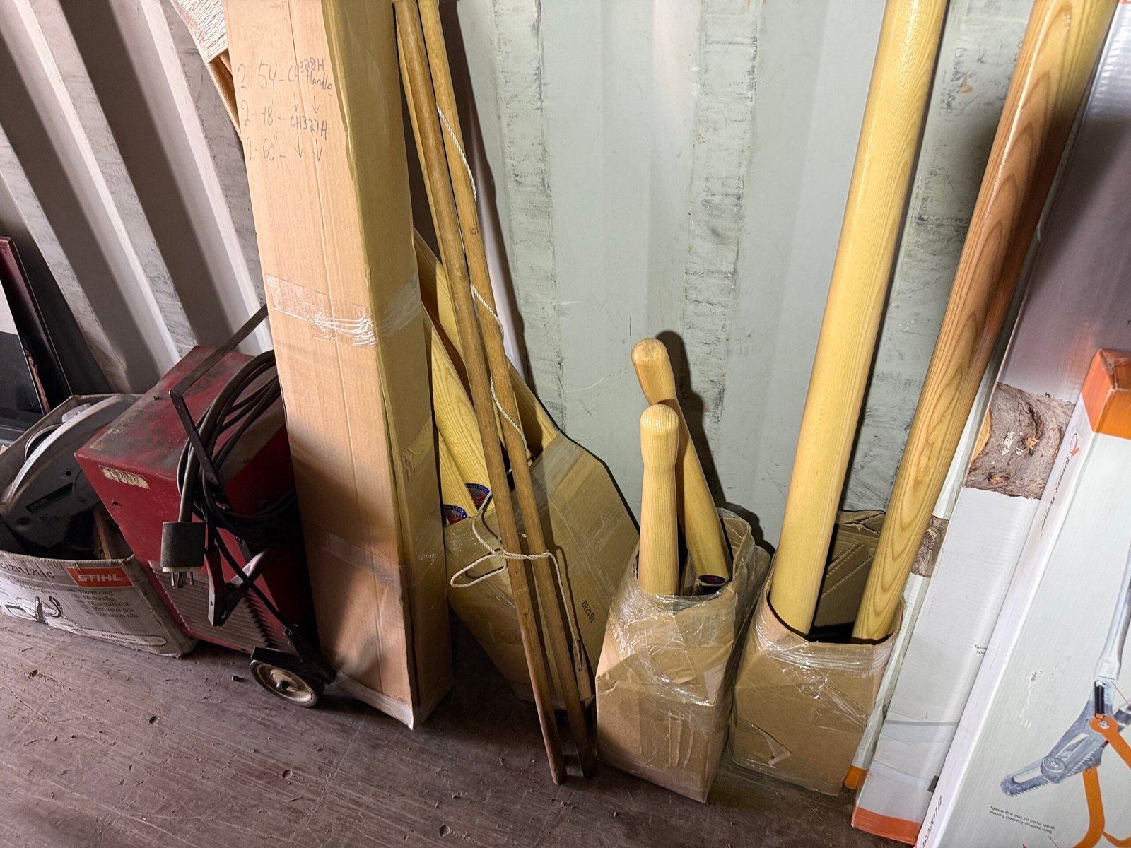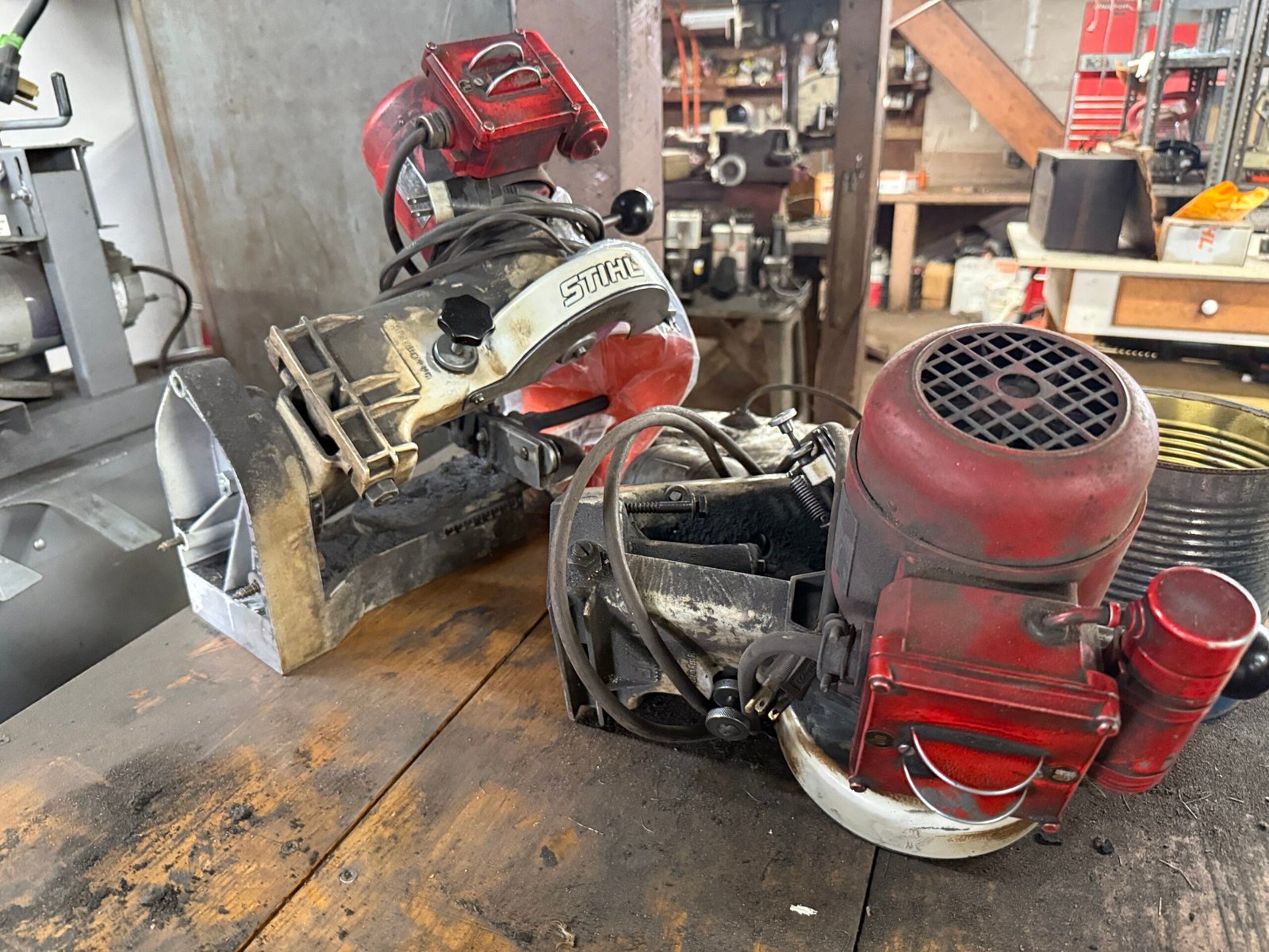 bead cabinet; Winco VH4D generator set; Pneumatic Lift Table; metal cabinets; work benches; Stihl metal