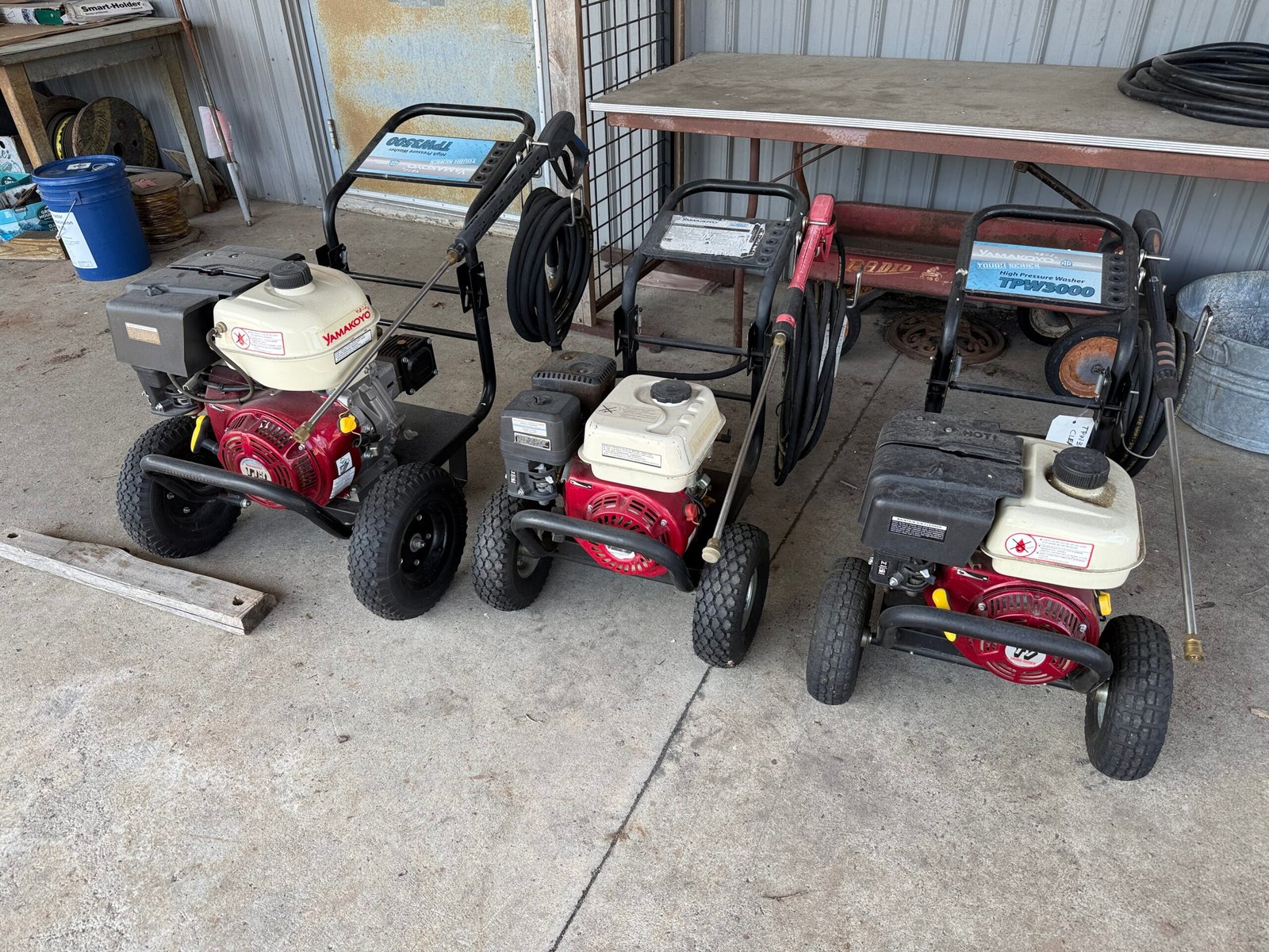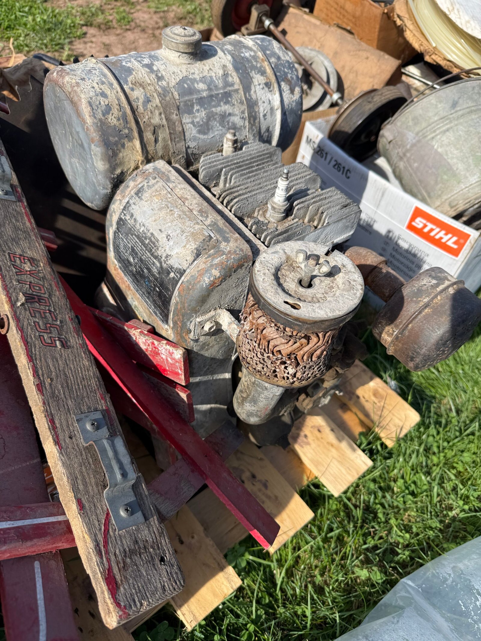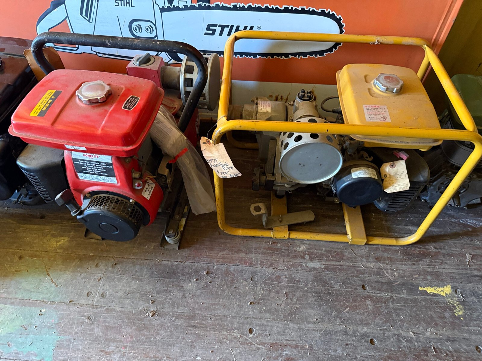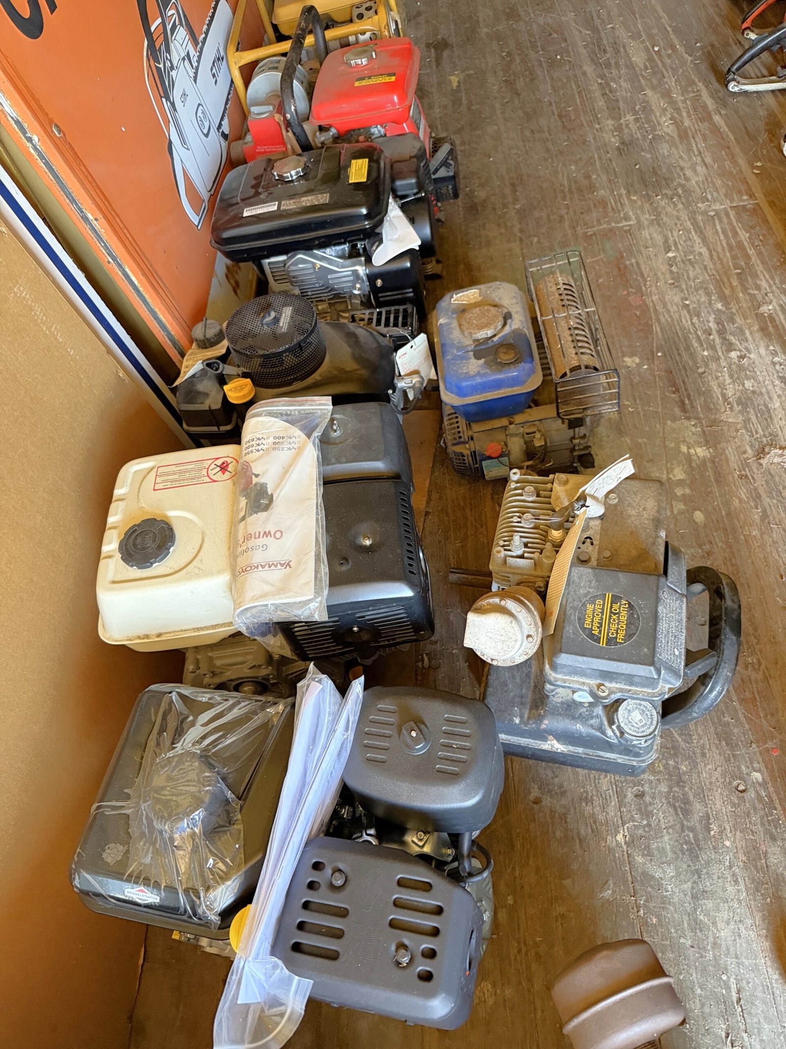INVENTORY: NOS: New pressure washers; Em-glo air comp.; (10+) 5-15HP engines; Stover engine Parts: Onan,
