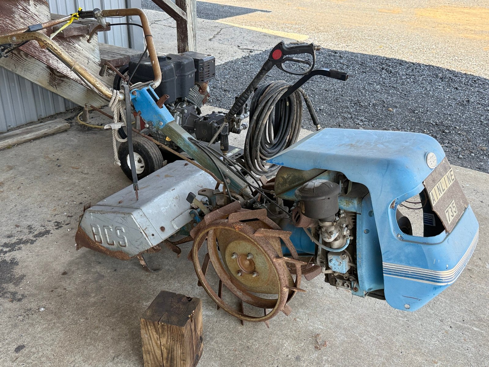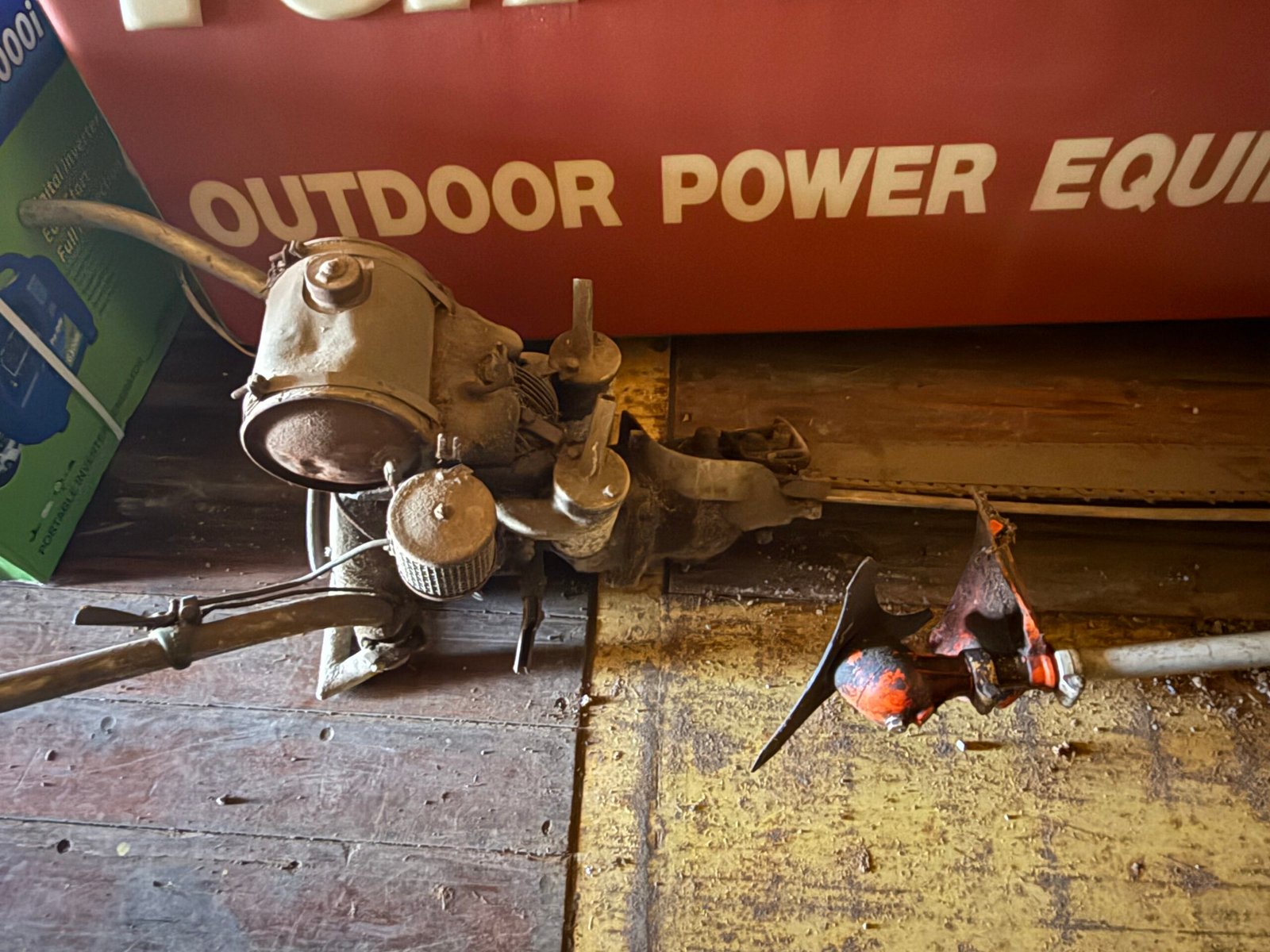Bolens Huski Gardener; old scales; reel mowers; Hammer Mill; fireman’s ladder; BCS & Briggs & Stratton