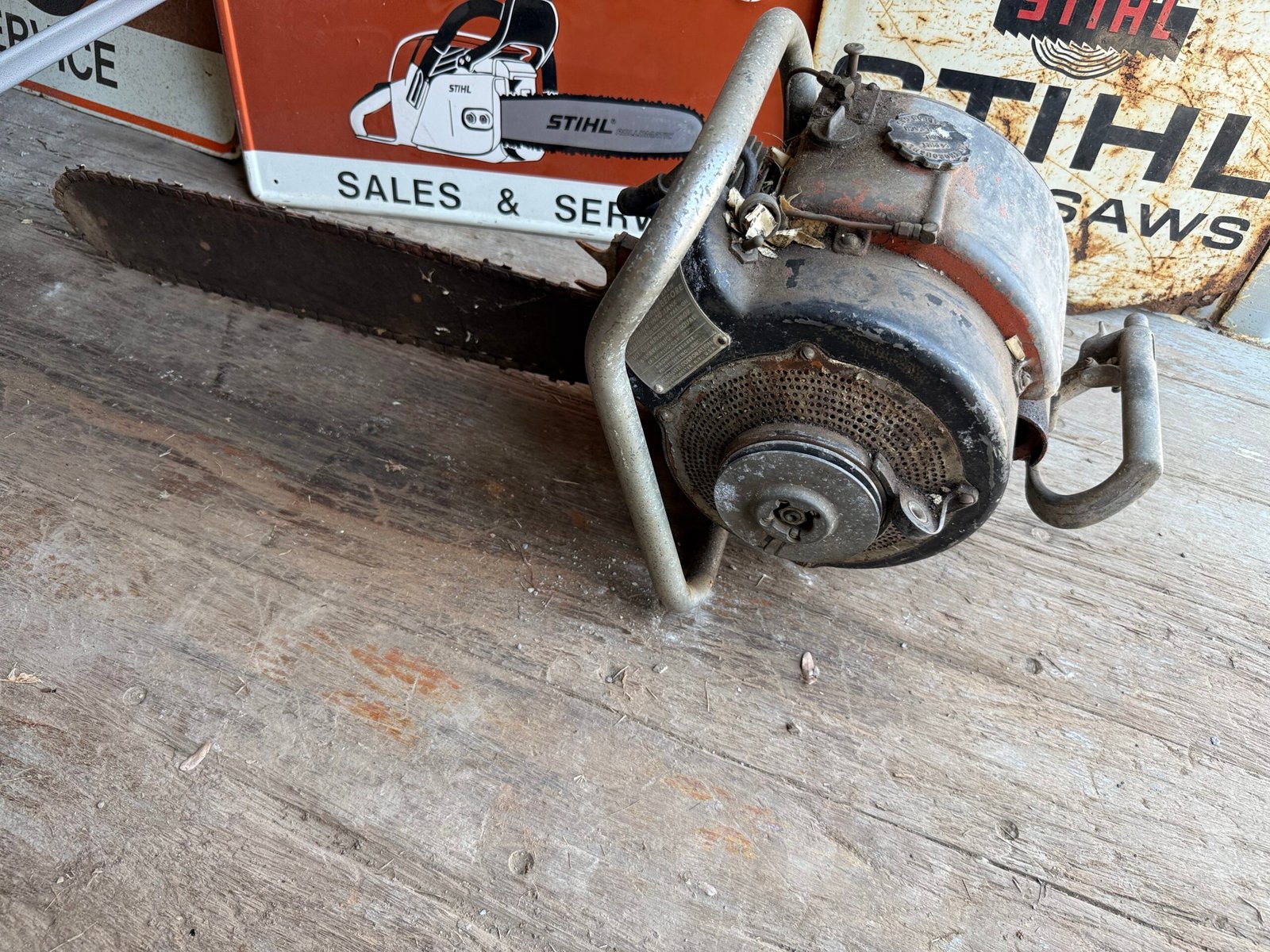 chainsaws; Mall & Mercury Disston two-man chainsaws; MAH Deutz Diesel; New Holland 1.5hp hit-miss