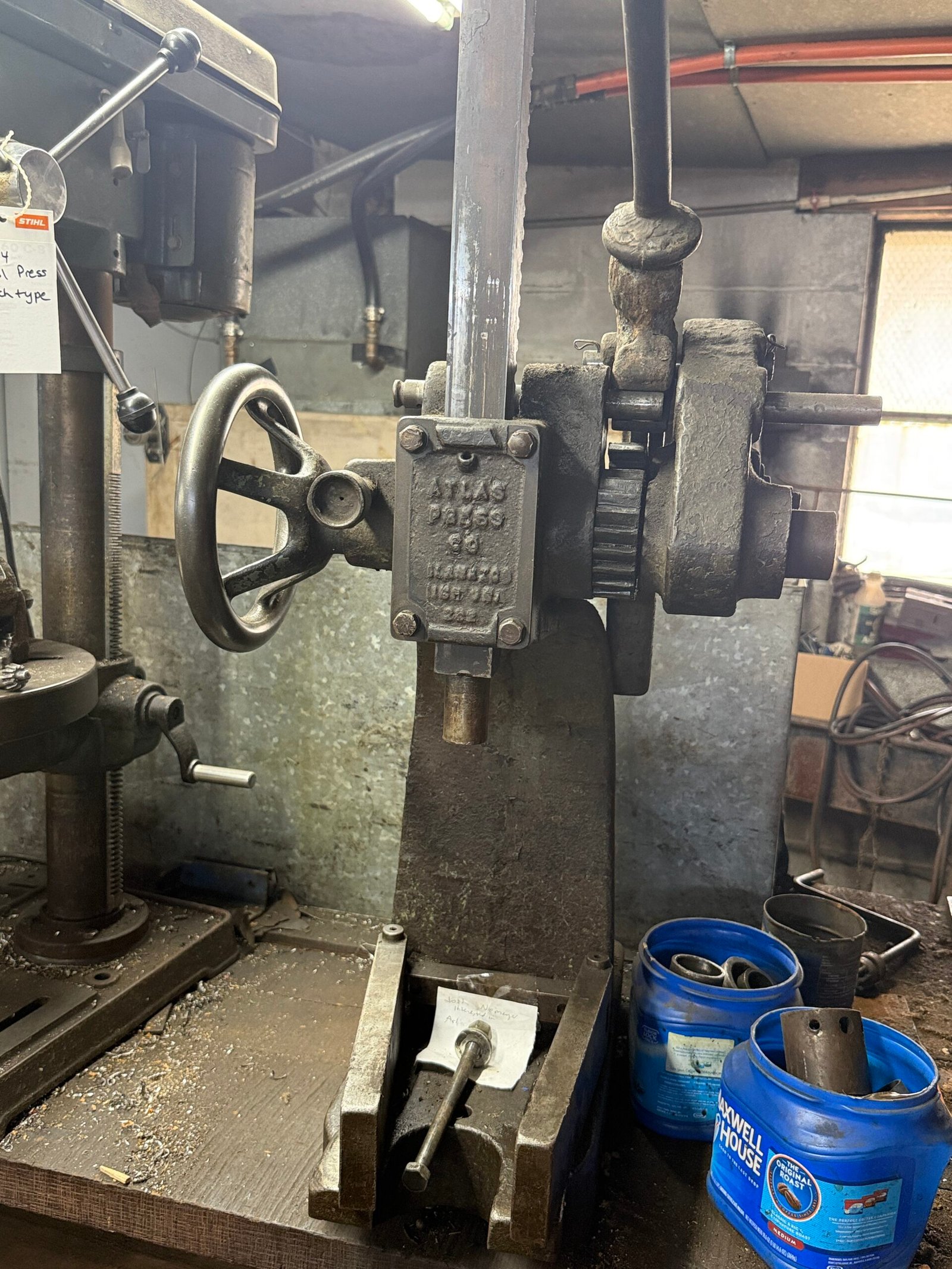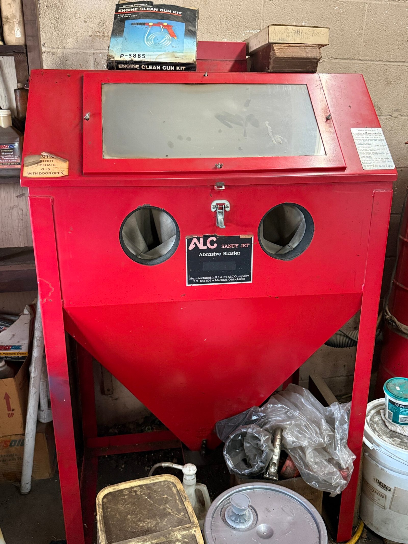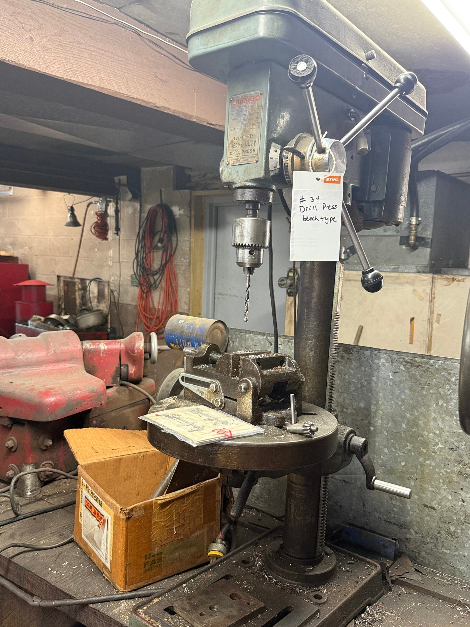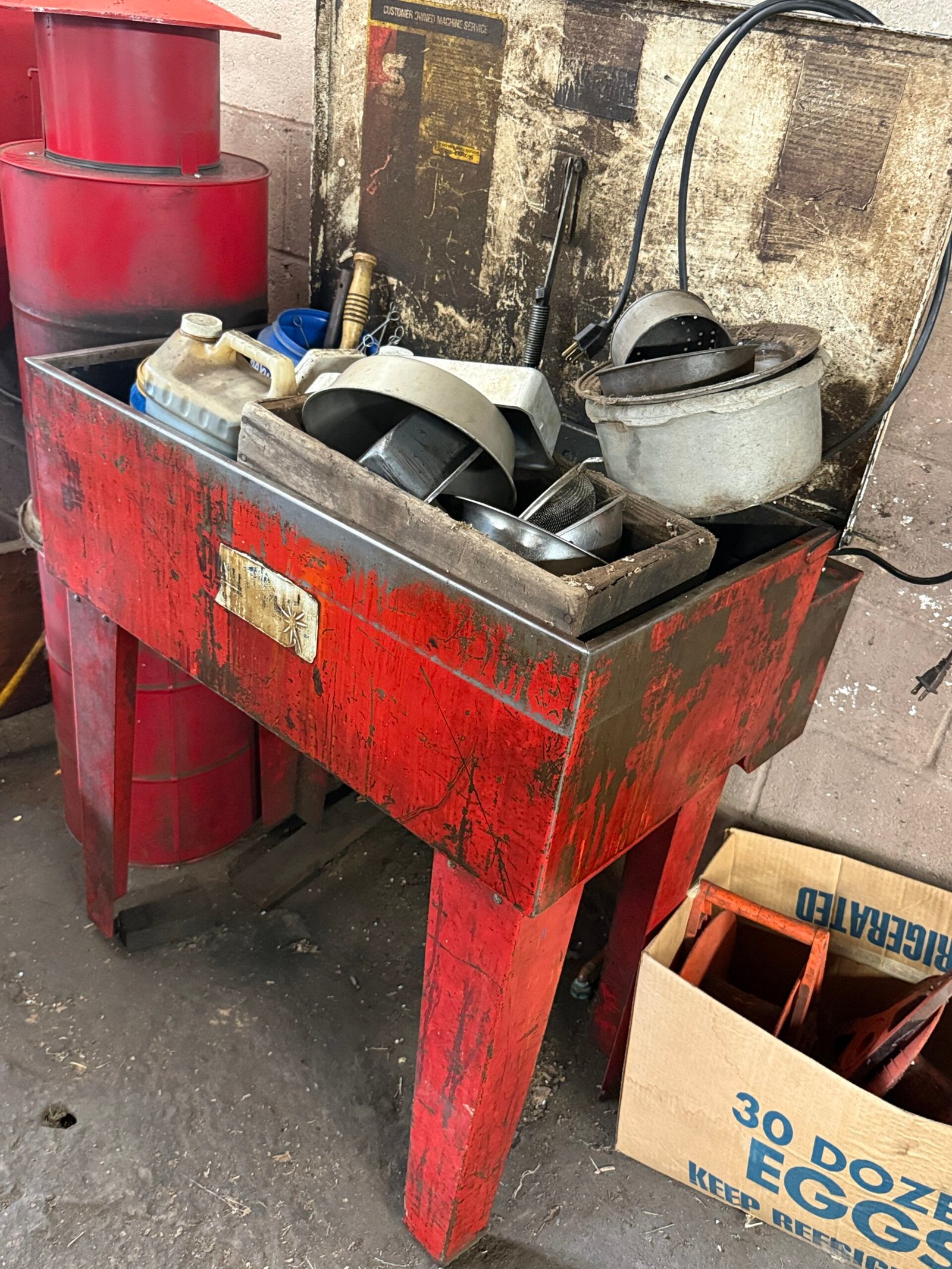 1984 graham tester; bench style drill press; Lincoln welder; brazing & welding rods; parts washers; glass