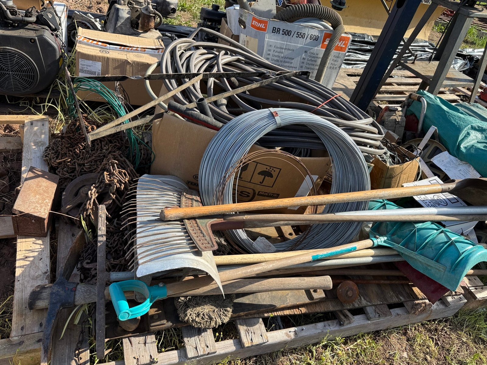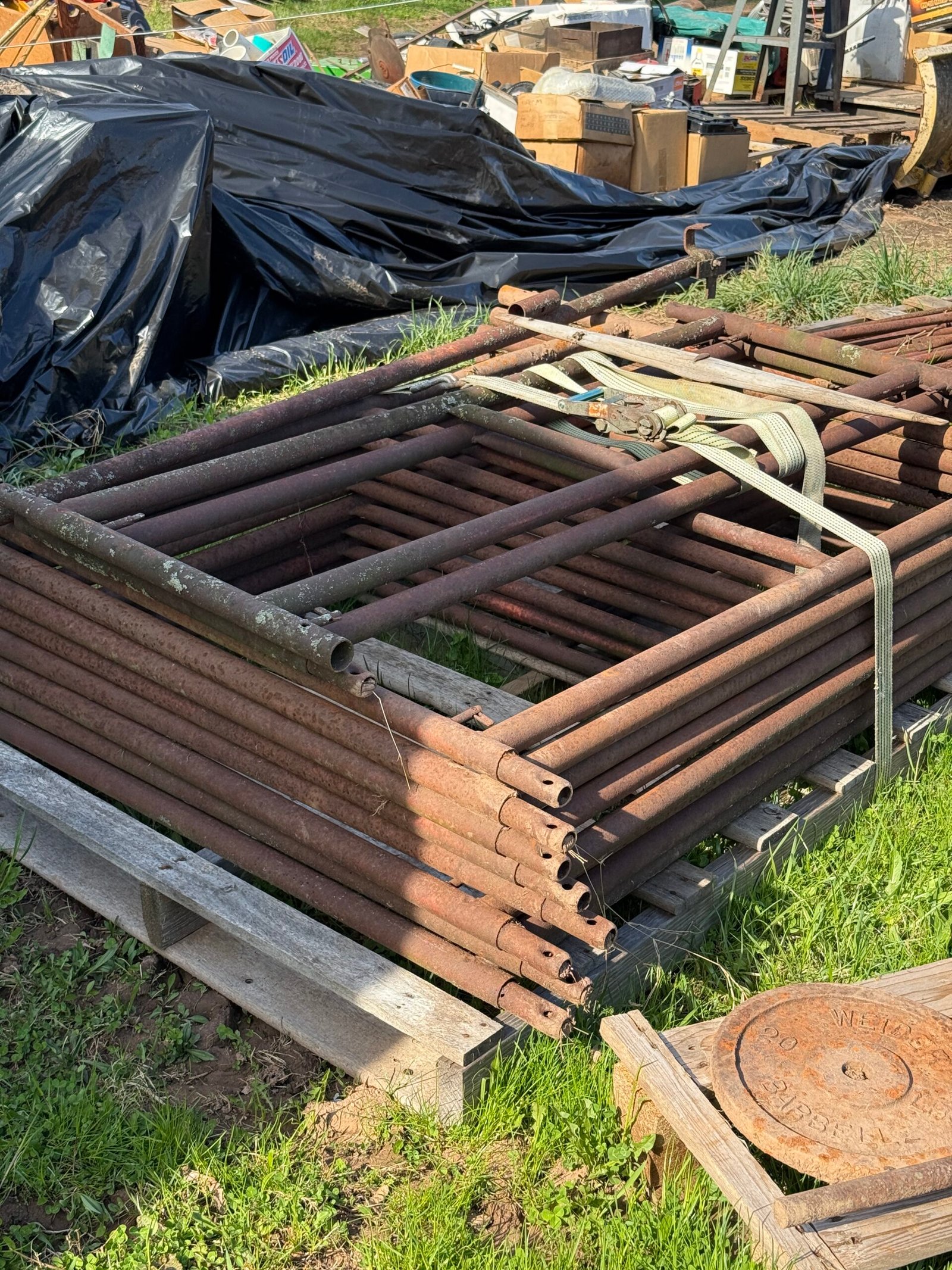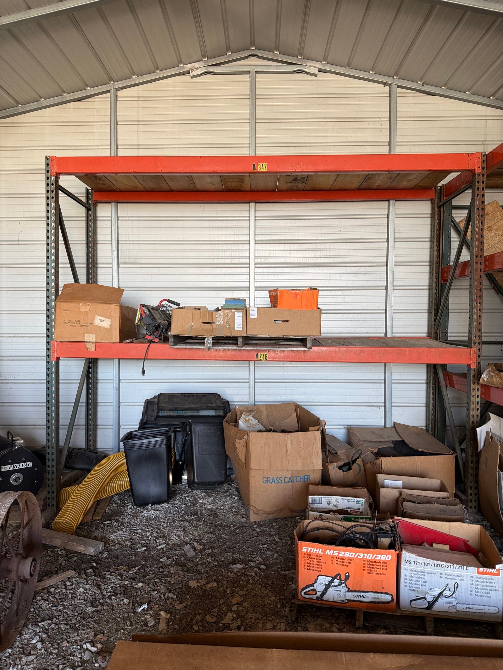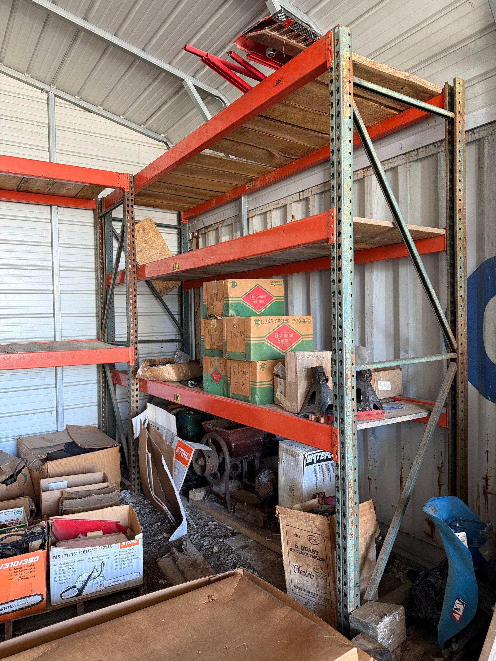 chainsaw racks; heavy duty metal racking; scaffolding; clamps; ext. cords; Iveco box truck for parts; 45’