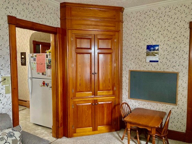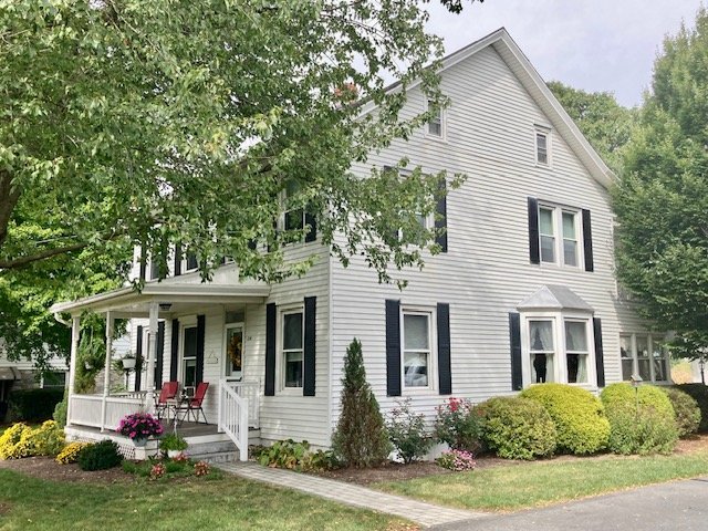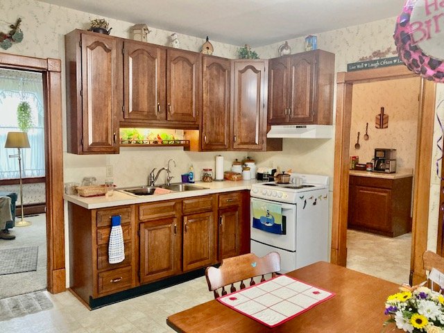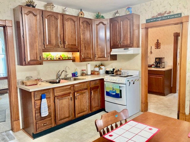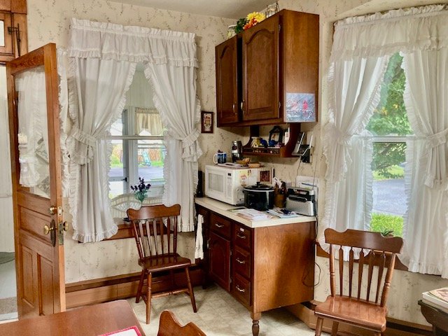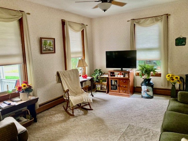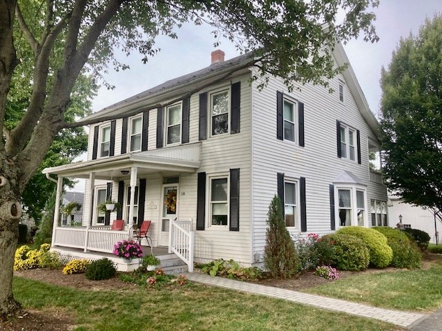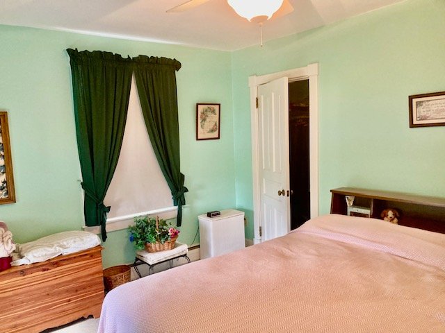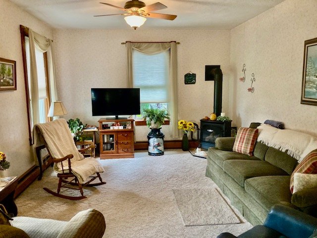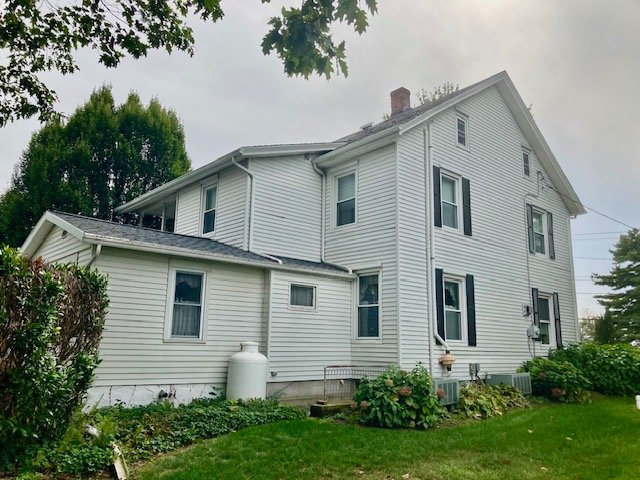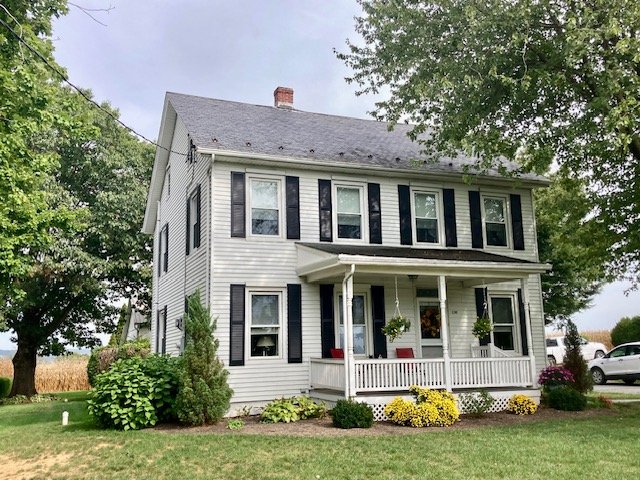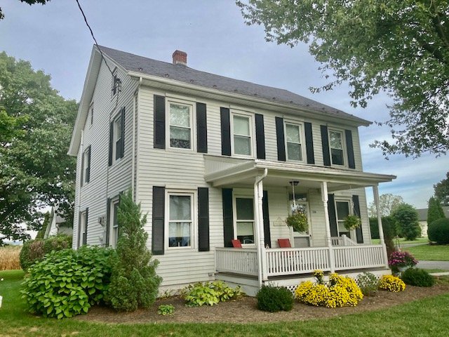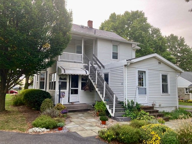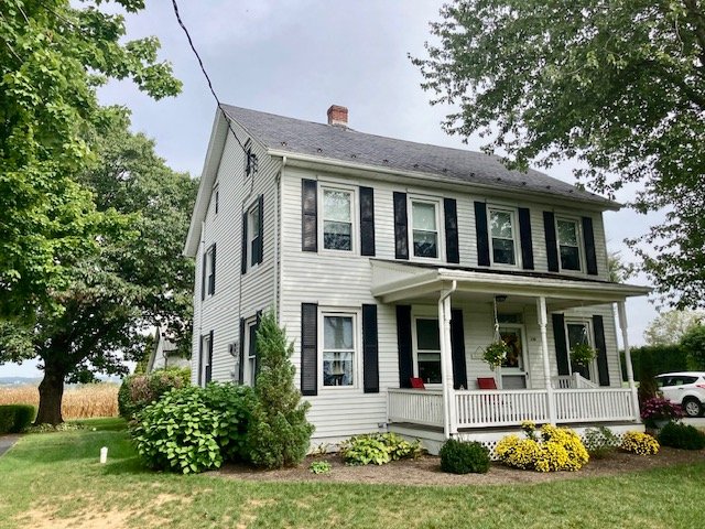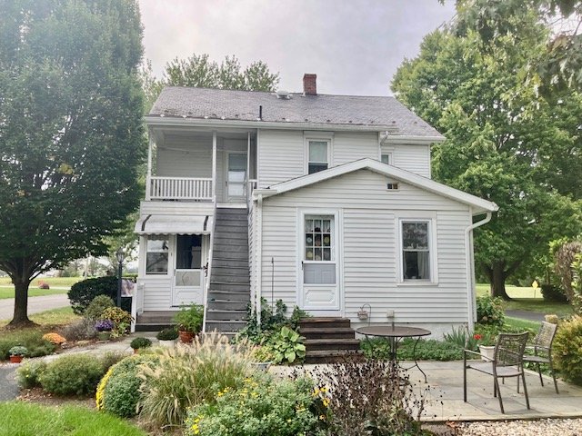 238 Real Estate #1) consists of a 2,172 sq. ft. 4-bdrm 2-bath 2-story home & 3-bay frame garage/barn on a .44-ac. lot. Main floor features a Cherry cabinetry eat-in style kitchen w/appliances; enclosed back porch; 12’x10’ laundry/mudroom; pantry room; full bath; 10’x12’ formal dining room w/built-in corner cupboard; 12’x28’ living room w/cozy LP stove & hearth; upper level: BR#1) 12’x14 (former apt. pine kitchen w/access to balcony & rear steps); BR#2) 12’x14’ w/closet; BR#3) 12’x12’ w/closet; WIC in hall; BR#4) 12’x14’ w/closet; walk-up attic; full bath w/linen closet; basement has finished office w/bookshelves; canning storage; utility room w/oil HW furnace; egress door; central AC; public sewer & on-site well; 200-amp svc w/double throw switch; annual taxes: $3,829. Outbuilding: a 25’x35’ frame 2-story 3-bay garage/barn; garden area; nice wide paved driveway & parking.