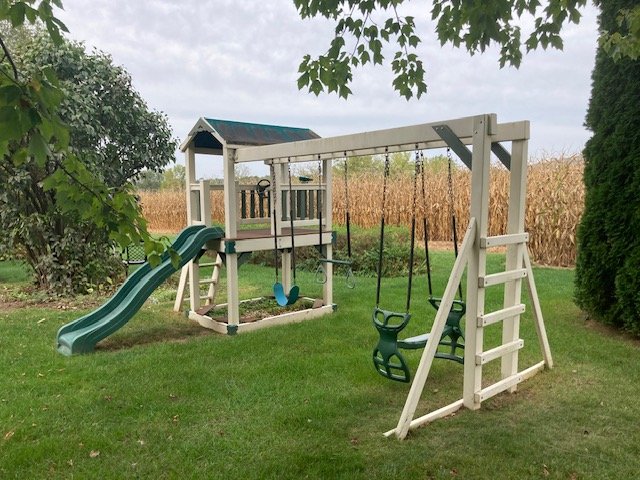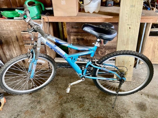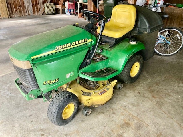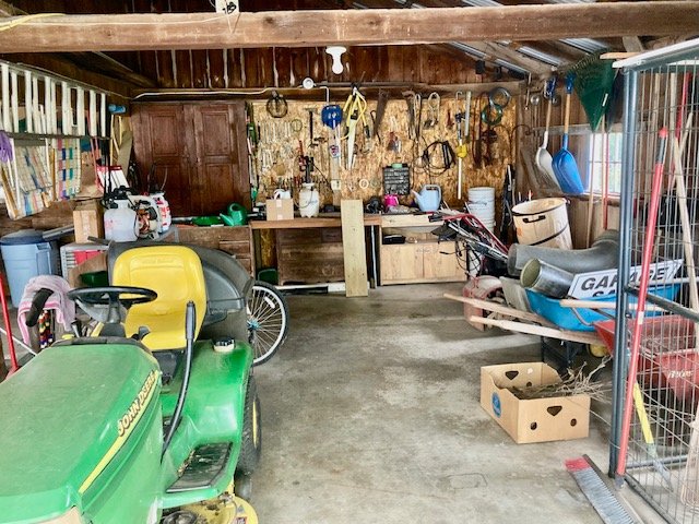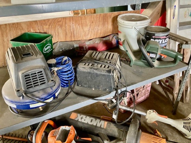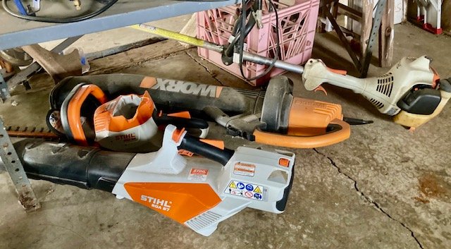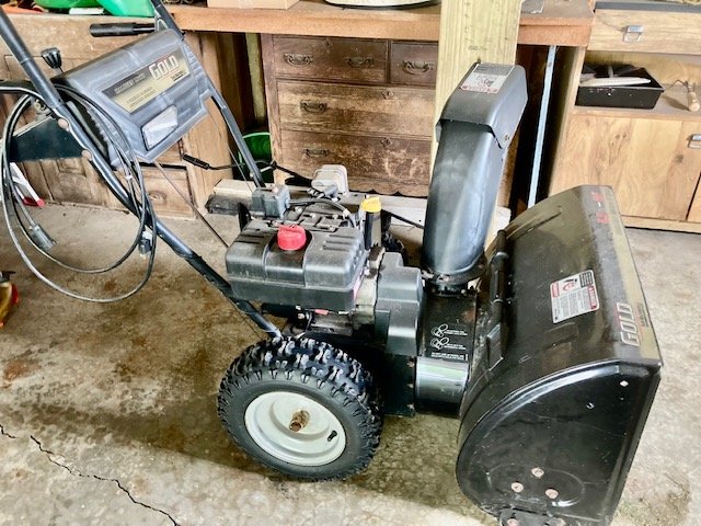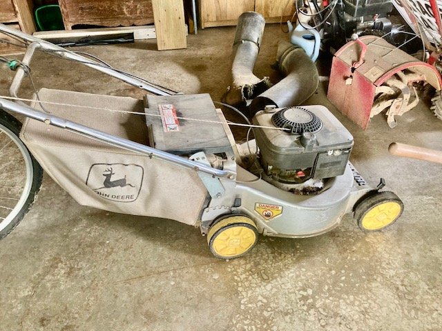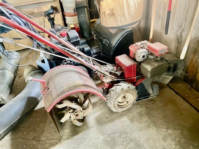 Garden/Shop Items: JD LX255 mower; JD 21” SP trim mower; 26” 8.5hp snow blower; Troy Bilt Pony rototiller; Vantage 8000 generator; single axle TSC mower trailer; vinyl swing set; Stihl leaf blowers & trimmers; air compressor; battery charger; aluminum ext & step ladders; wheelbarrow; leaf cart; hand & power tools; wooden chicken crate; live trap; sled; fire pit; croquet set; 10-sp Mongoose bike; etc.