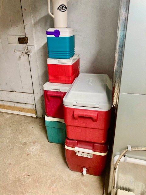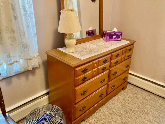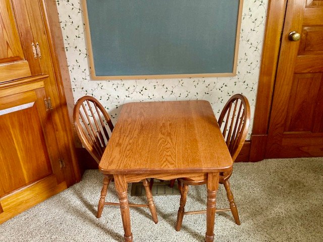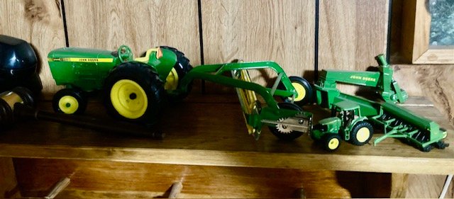 Personal Property: chest freezer; washer & dryer; bedroom furniture; cedar chest & quilts; nice green sofa & recliner; Cherry ext. table w/4-chairs & 10-leaves (NICE); country hutch cupboard; desks & file cabinets; Ping-Pong table; mantle clock; small case clock; antique egg scales & glass butter churn; painted milk can; JD farm toys & trucks; 12-local Winross trucks; Oak child’s table & chairs; china dinner set; lots of misc. kitchen & cookware items; ice chests; exercise bike; lots of books; plus much more not listed.