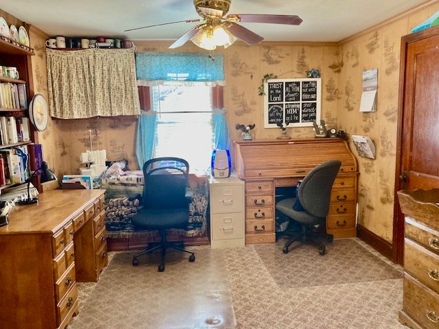 REAL ESTATE: consists of a (1939) conventional 1,704 sq. ft. 4-bedroom 2-story brick home w/attached 1-bay garage & detached 2-story 3-bay garage/shop on a rural .45-acre lot. Main floor features a 15.5’x11’ eat-in style custom raised panel cherry kitchen open to 11’x11’ office/library; 18’x13.5’ family room w/oak wainscoting, bay window & closets; 11’x16.5’ formal living room w/bay window; 9.5’x7.5’ bonus room; laundry w/sink & powder room; upper level BR #1) 11’x11.5’ w/closet; BR #2) 12’x8’ w/closet & attic access; BR #3) 11’x9’; BR #4) 10.5’x11.5’ w/closet & full bath; lower level 21’x25’ basement LP furnace HW heat w/aux. wood/coal stove; cold cellar; 19’x16’ garage w/man door; central vac; on-site well & public sewer; water treatment system; 1,000 gallon LP tank; annual taxes: $4,035. Outbuilding: a 2-story stone & frame 3-bay garage w/heated workshop; decorative tiered brick retaining wall; nice perennial & herb gardens!