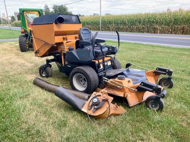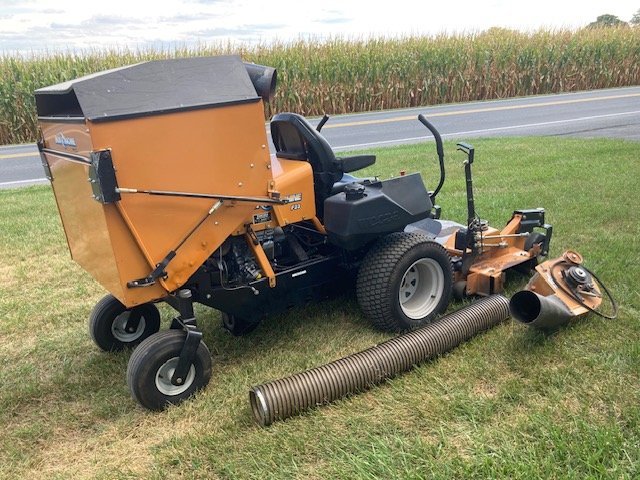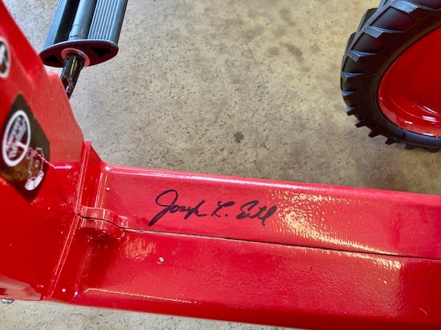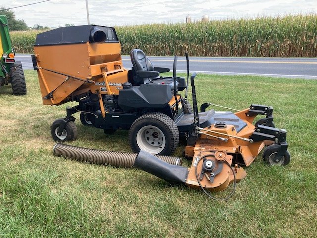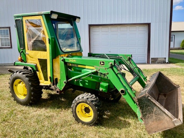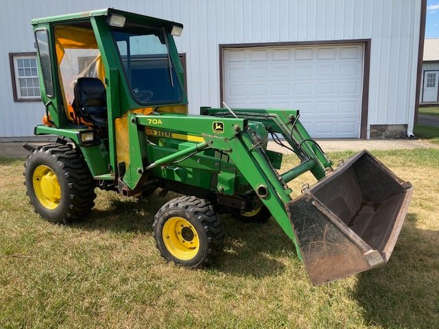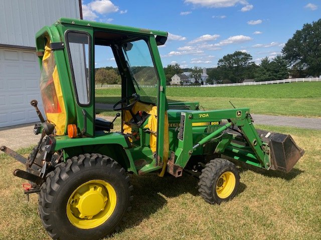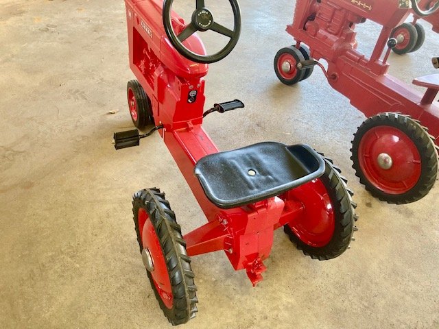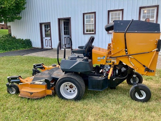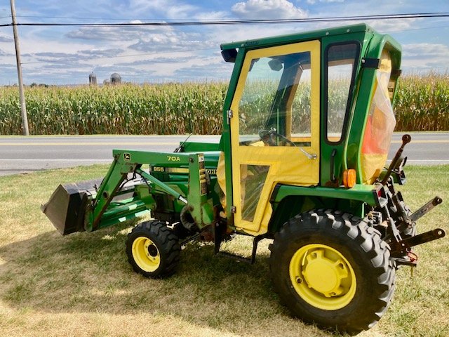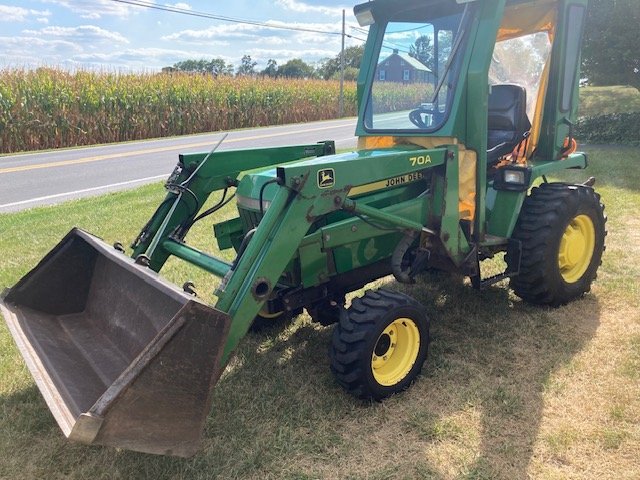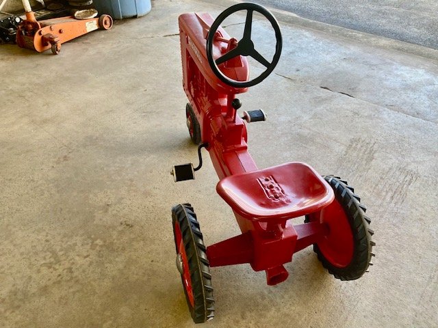 TRACTOR, FARM EQUIPMENT & ANTIQUES: New Holland ½ hp hit-miss engine #5927 (nice!); (2) Kurtz Foundry binder tongue wheels; early New Holland grinder/mixer w/original paint & stencil; detailed small replica sleigh, maroon w/gold trim; JD 955 4×4 DSL tractor 925 hrs. w/cab & 70A loader; 3-pt scraper; pallet forks; snow blade; Woods SB60 PTO snow blower; JD 7’ 3-pt. sickle-bar mower; MX54 Woods F23 zero-turn mower w/power blower & catcher, 717hrs, (new engine); Maxi-Power 25kw PTO generator; walk-behind potato plow; mobile scaffolding set; 16’ 7000GVW IH dual axle trailer; 1976 3000GVW EZ 6’x8’ mulch trailer; STOELTING soft ice cream machine on SS cart (NICE!); 3-FARMALL pedal tractors!
