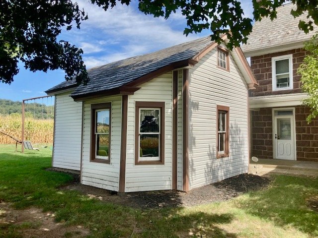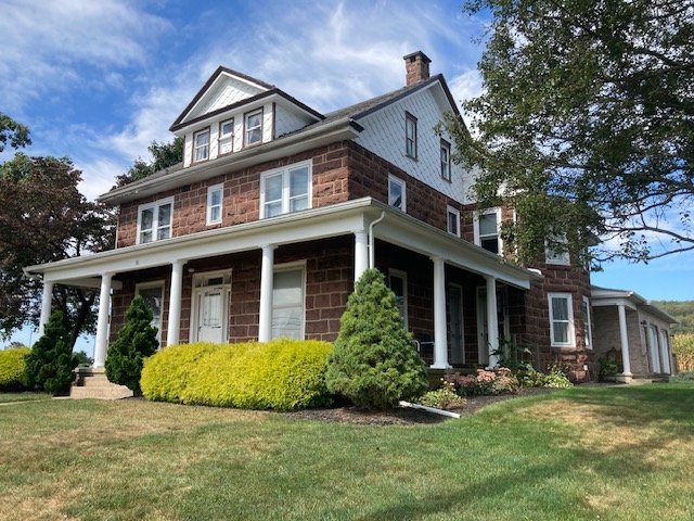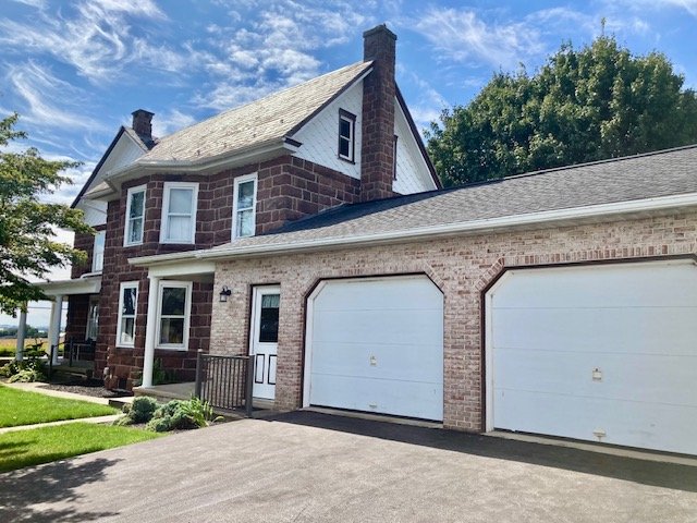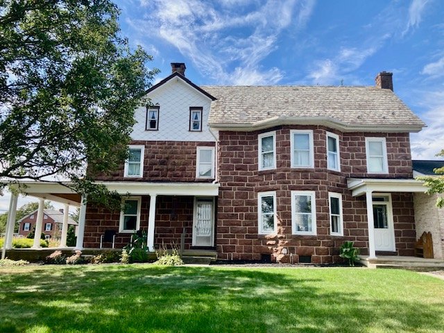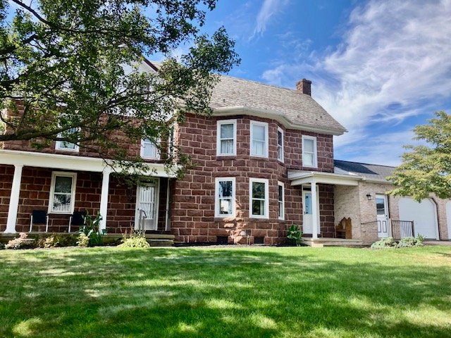 Real Estate: consists of a 30.5-acre crop farm w/5-bedroom 3,843 sq. ft. 2-story (1916) sandstone house w/2-car garage; (2) 2-bay garages; 2-story bank barn; pasture & run-in shed; zoned AG. Home features an elegant wrap-around porch; 20’x15’ raised panel Cherry cabinetry kitchen w/appliances; dining area; laundry w/W & D; full bath; attached 32’x25’ 2-car garage; 22’x11’ living room; 12’x12’ master bedroom; 12’x12’ office/den; rich original Chestnut trim throughout; upper level has 4-bedrooms & full bath; attic storage; lower level 25’x22’ family room; 24’x17’ mechanical room; egress door; 2-zone oil furnace HW heat; 1,000 gallon fuel tank; on-site well & septic; architectural slate roof; annual taxes: $5,451. Outbuildings: a 2,698 sq. ft. 2-story bank barn w/shop & 3-garage bays plus 36’x52’ gym/volleyball court; (2) 2-bay garages; a 20’x14’ summer house; 20’x30’ run-in shed & 4-acre pasture w/stream; 25-acres tillable land.