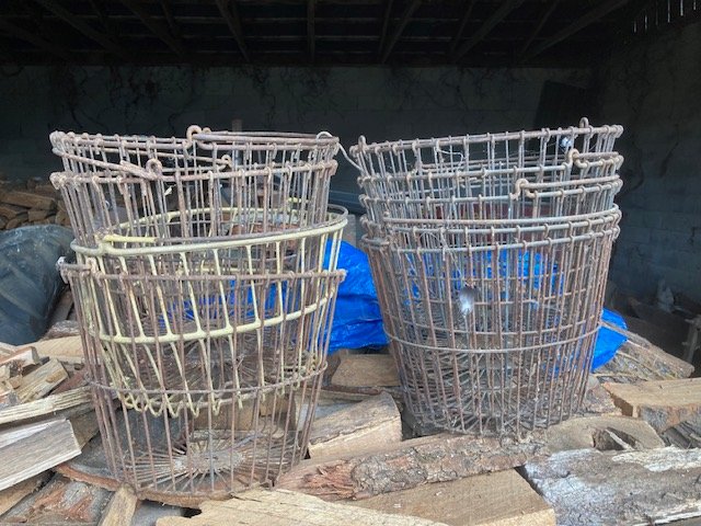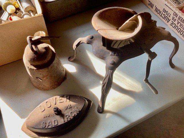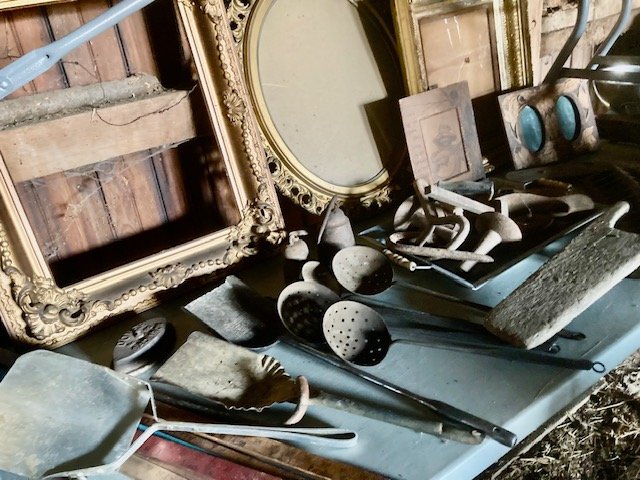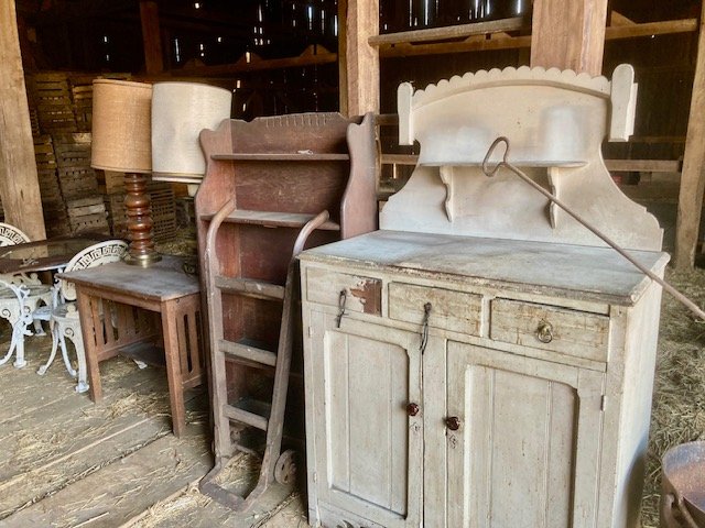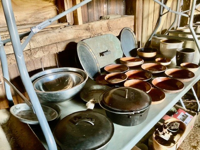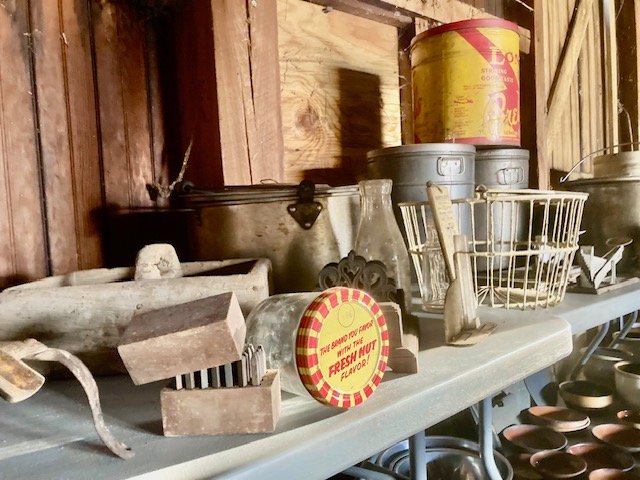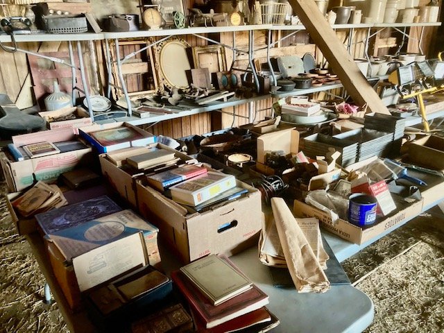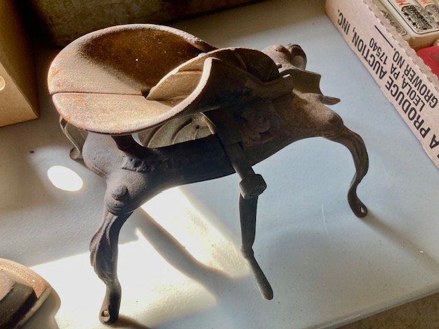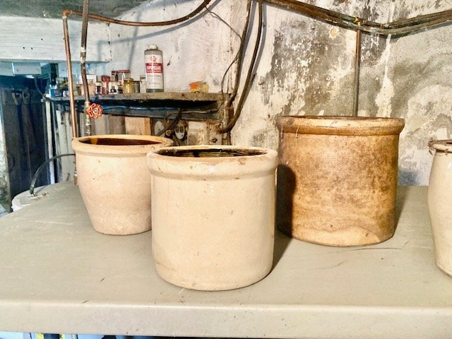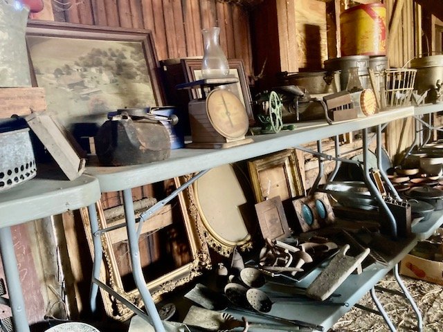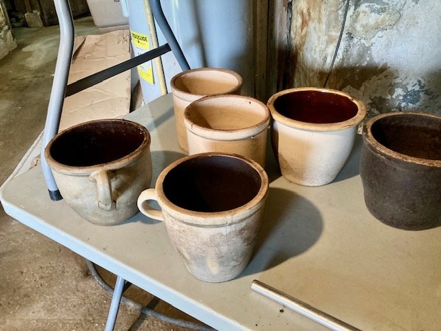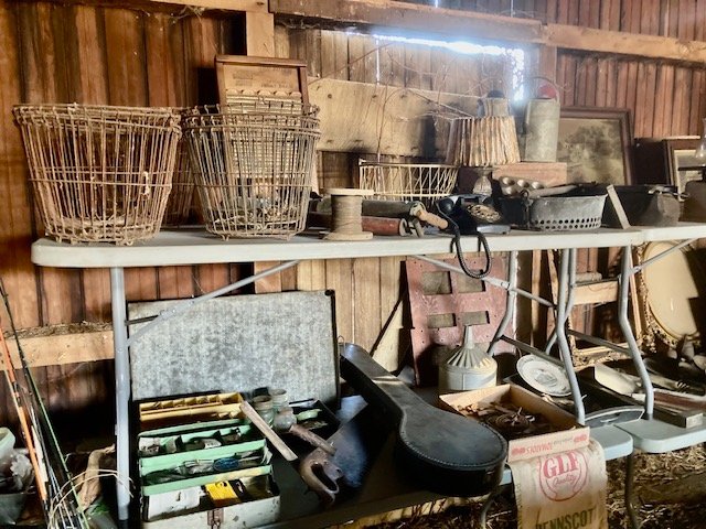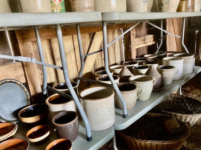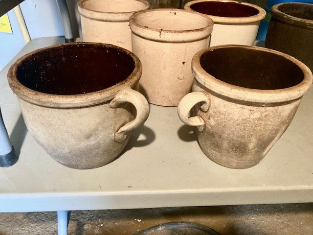 9-AM: Antiques & Personal Items: 2-#12 crocks; #10 crock; 25-old crocks & jugs; H P Hawthorn, PA crock; old silver mesh purse (nice); Moseman PB tin; 12-wire egg baskets; 2-Acme egg scales; beetle boot jack; (3) 10-hole chicken nest boxes; wooden chicken crates; chicken feeders; Brunnerville cast iron hog troughs; cast iron cherry stoner; early farm tools; 25-apple crates; 100’s of canning jars, old green jars; old books; early lithographs; antique wooden furniture; sad irons & trivets; cast iron pans; redware pie plates; kitchen primitives; 3-apple butter kettles; many more rare finds in this 200-year old house!