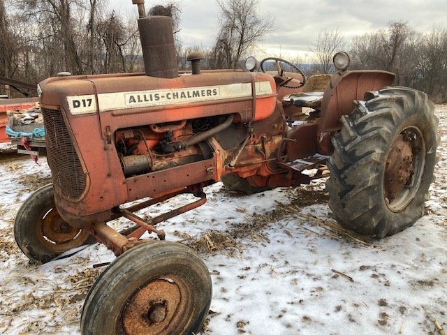 Tractors & Farm Equipment: 1948 Allis Chalmers G w/cultivator; 2-Allis Chalmers WD’s; Allis Chalmers D17 tractor; New Holland 315 Hayliner baler; Case #135 manure spreader; John Deere 506 brush mower; Ontario grain drill; 6’ disc; NH 56 hay rake; IH 1-row corn picker; 32’ bale elevator; 2-16’ flat wagons; trailer wagon; 2-3-btm plows; Huskee & Husqvarna riding mowers; 3-Stihl chainsaws; farm gates; bale scale, lots scrap metal; plus much more.