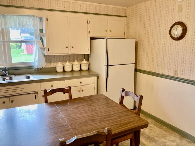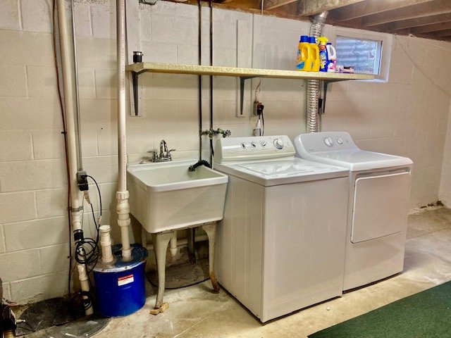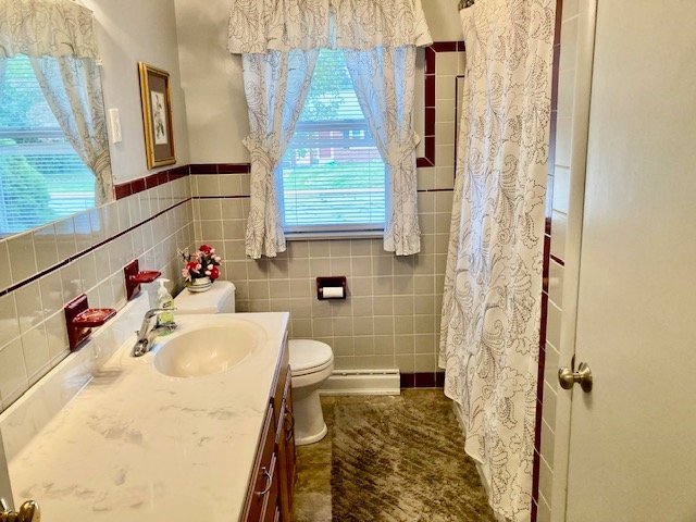 Real Estate: consists of a 1,072 sq. ft. brick rancher (1958) w/3-bedrooms, full bath & attached 1-car garage on a .21-acre lot. Main floor features a 12’x18’ formal living room w/bay window & closet; charming eat-in style kitchen w/white painted cabinetry, fridge & range plus built-in corner cupboard; full bath; BR #1) 11’x12’ w/closet; BR #2) 10’x11’ w/closet; BR #3) 10’x11 w/ closet; attached 1-bay garage; rear patio w/PVC privacy fence; lower level includes a nicely finished 18’x22’ family room w/recessed lighting & egress door; 14’x22’ utility room w/laundry hook-up, mop sink,  washer & dryer included; oil furnace forced warm air heat, 275-gallon fuel tank; central AC; electric water heater; built-in shelving storage area; 200-amp svc; public water & sewer; annual taxes: $3,140; 12’x10’ utility shed.