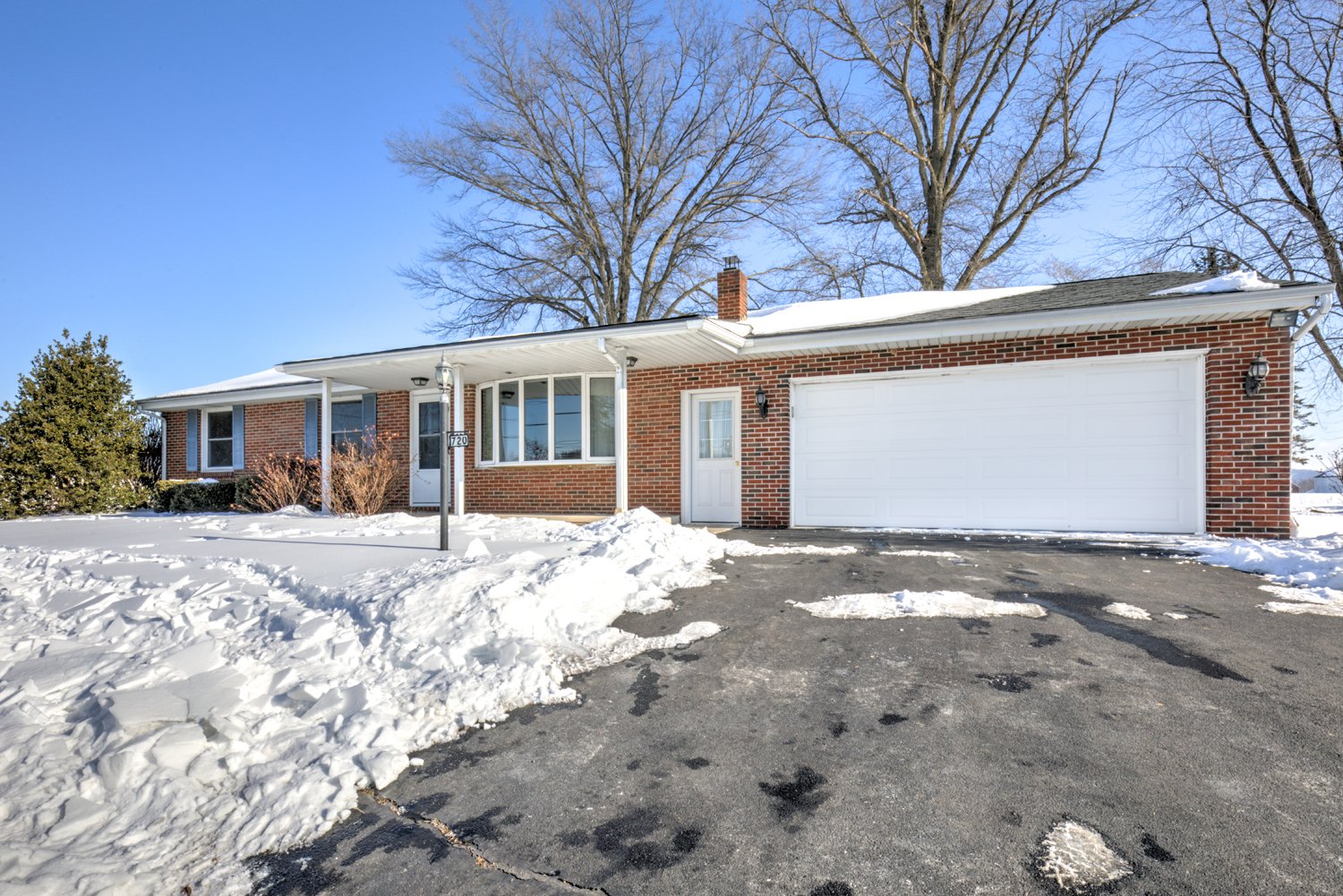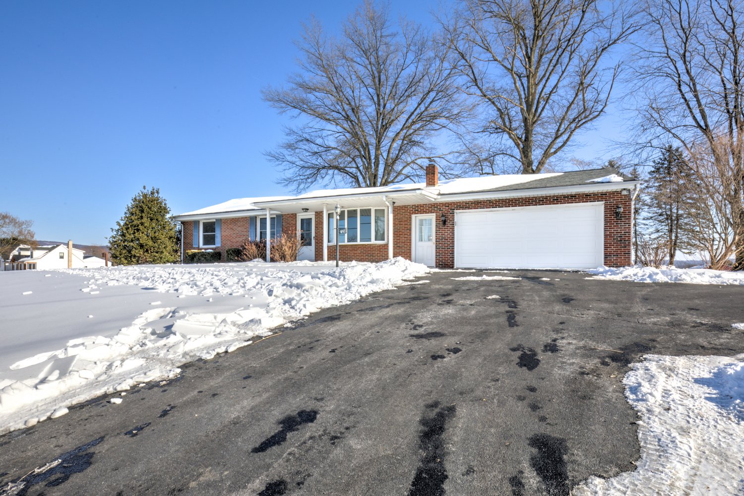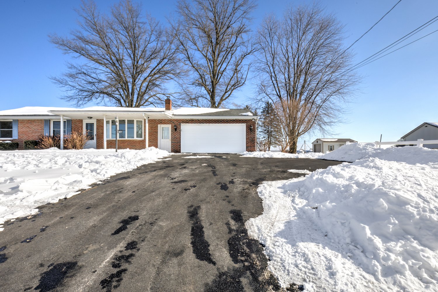 REAL ESTATE: A clean, freshly updated all brick 3-bedroom Rancher w/ quiet rear covered porch & patio on country .53-acre lot. This house was built in 1961 and has approximately 1,100 sq. ft.; 18.5’x 13’ living room area w/ large bay window, HW flooring throughout first floor; dining room/kitchen area features nice maple cabinetry, appliances & a sink window overlooking the backyard; dining room has sliding door access to a covered back porch w/ a level backyard overlooking farmland & 22’x 12’ detached shed w/ rollup door; 13.5’x 11’ BR#1 w/ double closets; 13’x 9.5’ BR#2 w/ closet; 11’x 10’ BR#3 w/ closet; bathroom has tub/shower; oversized 24’x 23’ attached 2-car garage; full basement contains a 20’x 13’ family room w/ brick hearth; 24.5’x 12.5’ utility room; laundry hook-up; oil fired hot water heat; central A/C; well & septic onsite; shingle roof; taxes approx. $4,225.