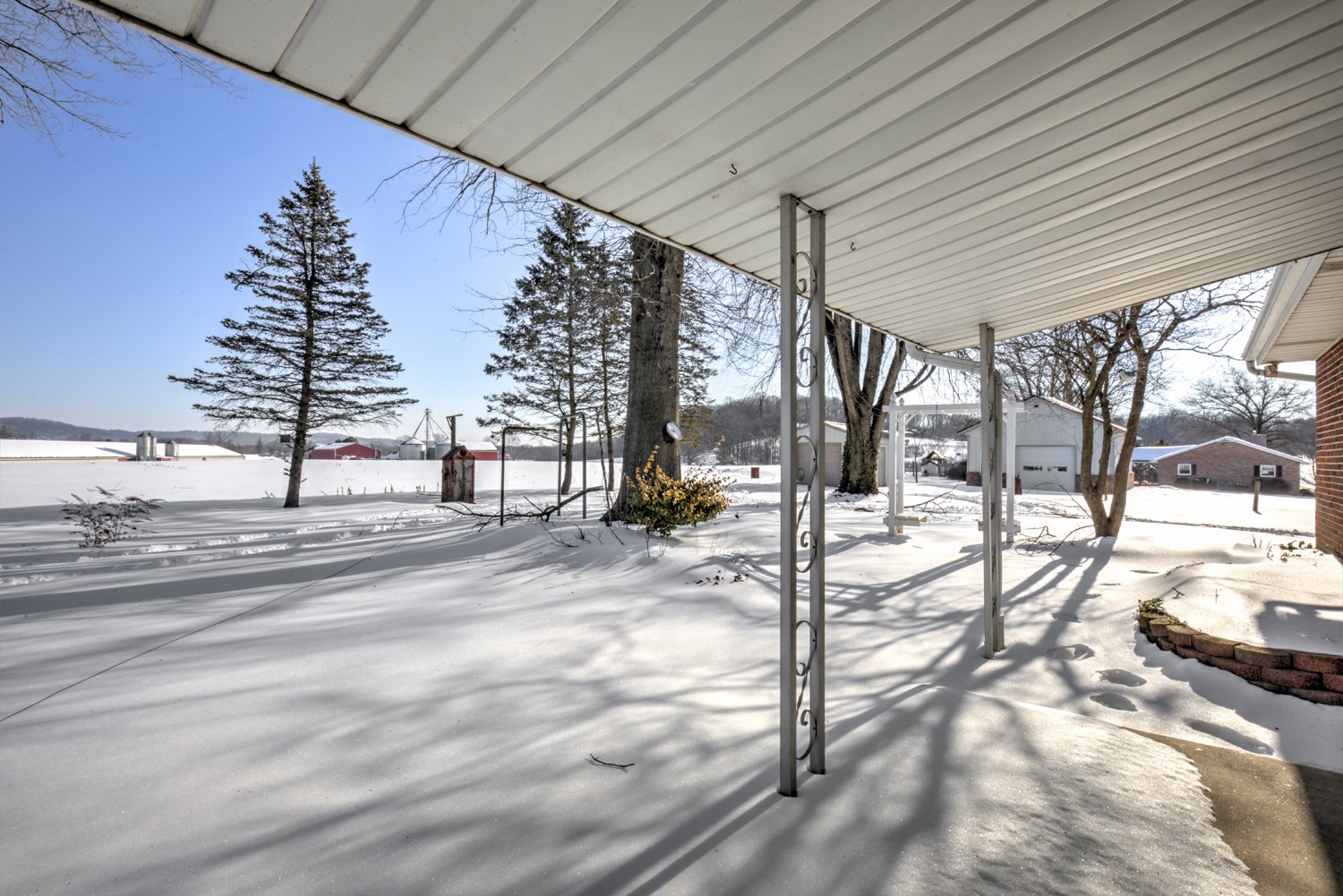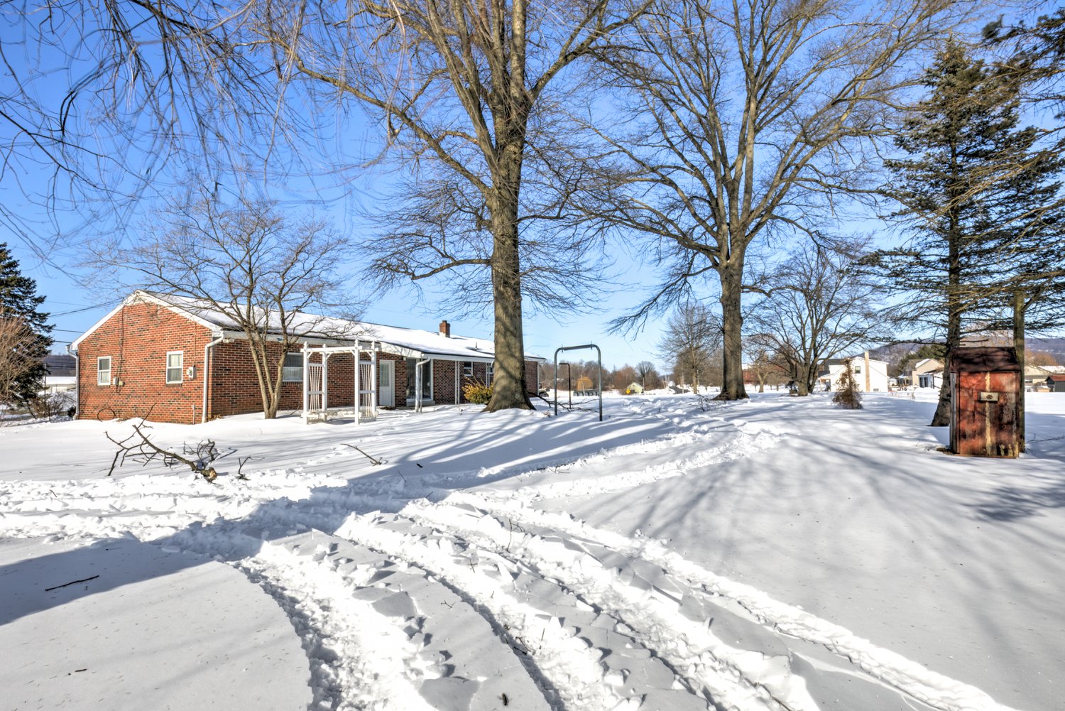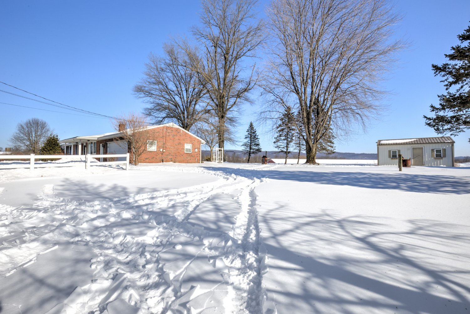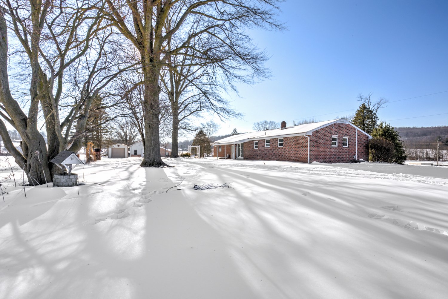 REAL ESTATE: A clean, freshly updated all brick 3-bedroom Rancher w/ quiet rear covered porch & patio on country .53-acre lot. This house was built in 1961 and has approximately 1,100 sq. ft.; 18.5’x 13’ living room area w/ large bay window, HW flooring throughout first floor; dining room/kitchen area features nice maple cabinetry, appliances & a sink window overlooking the backyard; dining room has sliding door access to a covered back porch w/ a level backyard overlooking farmland & 22’x 12’ detached shed w/ rollup door; 13.5’x 11’ BR#1 w/ double closets; 13’x 9.5’ BR#2 w/ closet; 11’x 10’ BR#3 w/ closet; bathroom has tub/shower; oversized 24’x 23’ attached 2-car garage; full basement contains a 20’x 13’ family room w/ brick hearth; 24.5’x 12.5’ utility room; laundry hook-up; oil fired hot water heat; central A/C; well & septic onsite; shingle roof; taxes approx. $4,225.
