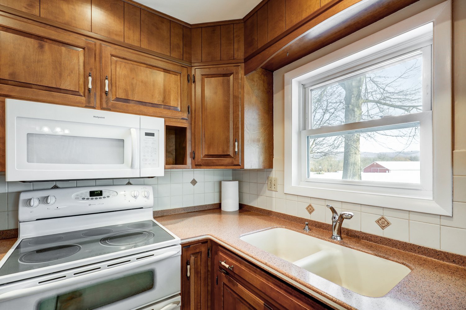 REAL ESTATE: A clean, freshly updated all brick 3-bedroom Rancher w/ quiet rear covered porch & patio on country .53-acre lot. This house was built in 1961 and has approximately 1,100 sq. ft., (plus basement); 18.5’x 13’ living room area w/ large bay window, HW flooring throughout first floor; dining room/kitchen area features nice maple cabinetry, appliances & a sink window overlooking the backyard; dining room has sliding door access to a covered back porch w/ a level backyard overlooking farmland & 22’x 12’ detached shed w/ rollup door; 13.5’x 11’ BR#1 w/ double closets; 13’x 9.5’ BR#2 w/ closet; 11’x 10’ BR#3 w/ closet; bathroom has tub/shower; oversized 24’x 23’ attached 2-car garage; full basement contains a 20’x 13’ family room w/ brick hearth; 24.5’x 12.5’ utility room; laundry hook-up; oil fired hot water heat; central A/C; well & septic onsite; shingle roof; taxes approx. $4,225.