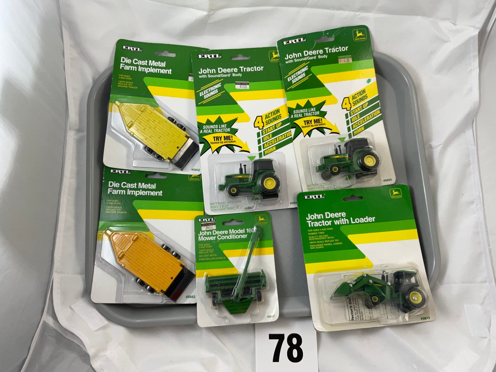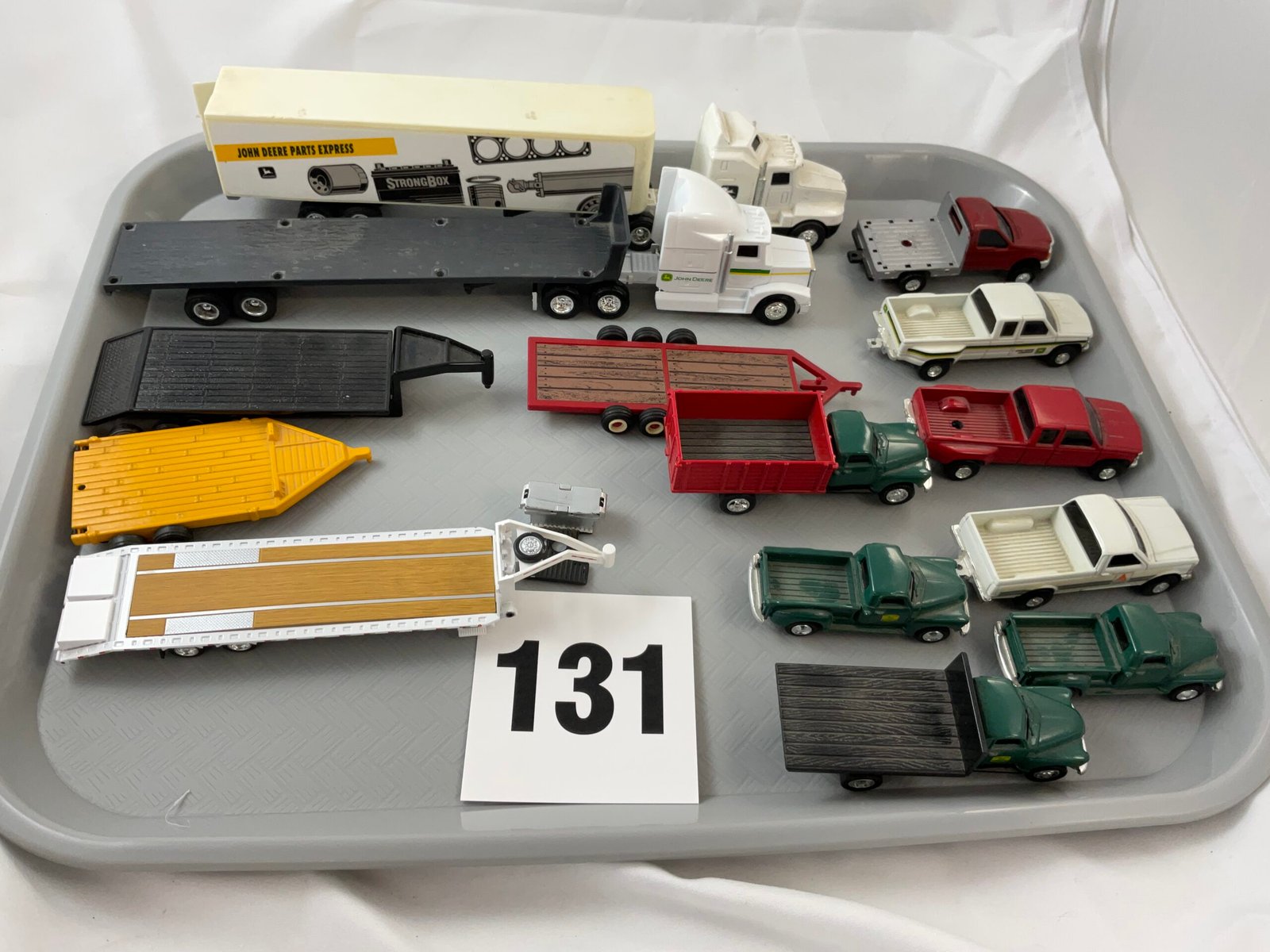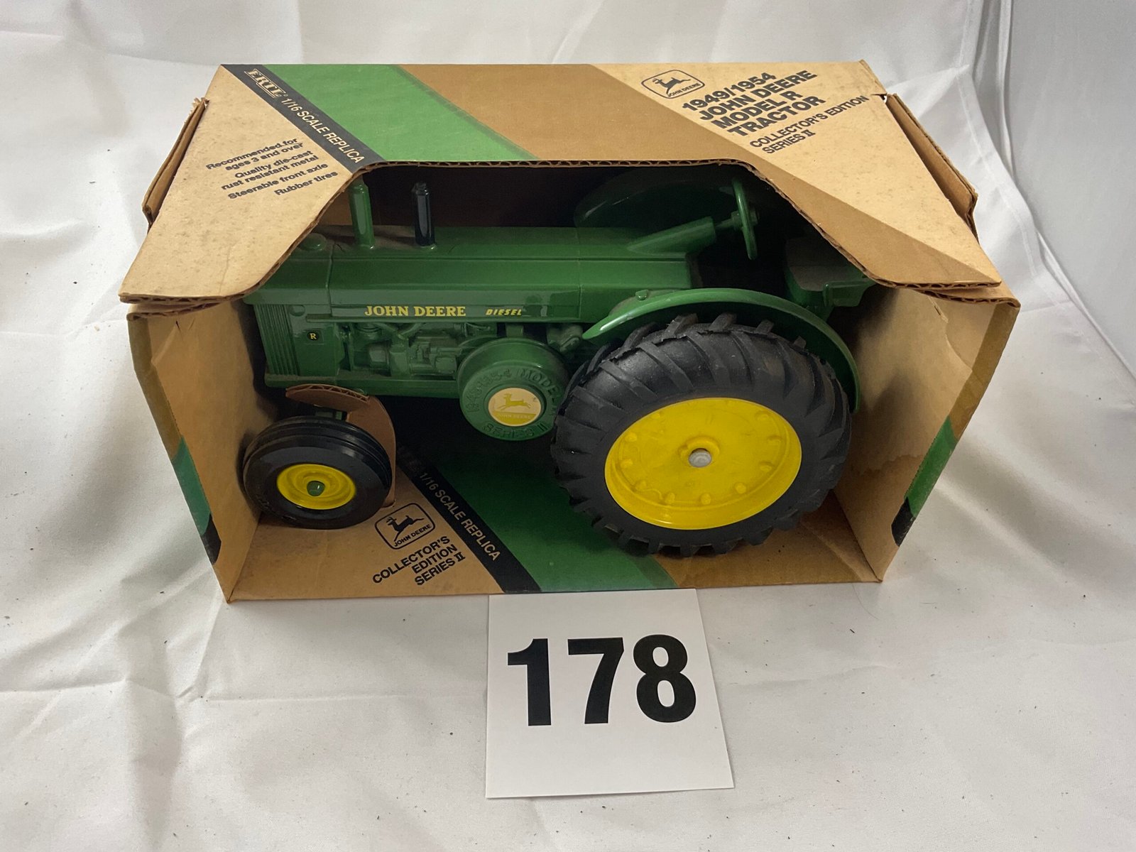 CALLING ALL TOY COLLECTORS! This auction features many well-known brands & scale models! ERTL, NORSCOT, WINROSS & MORE! LOTS OF NICE JOHN DEERE TRACTORS & MISC. JOHN DEERE ITEMS