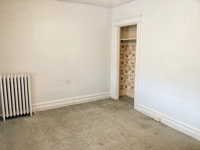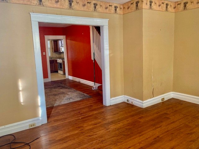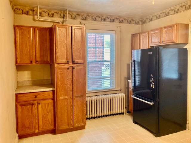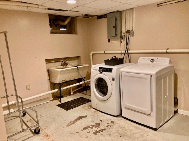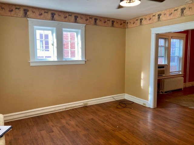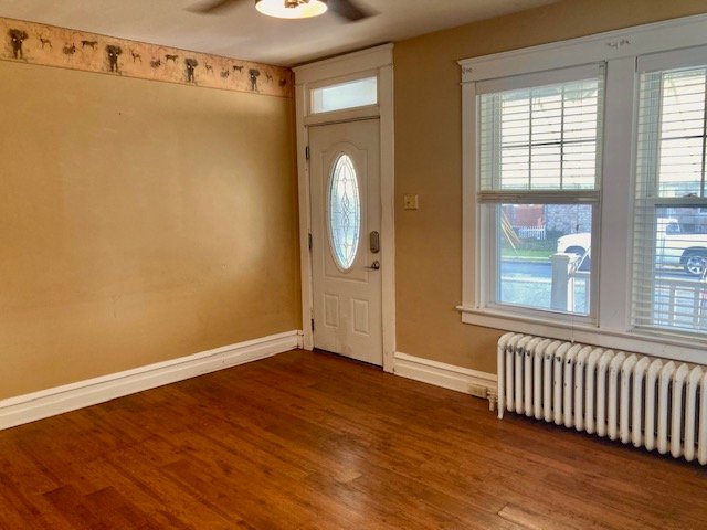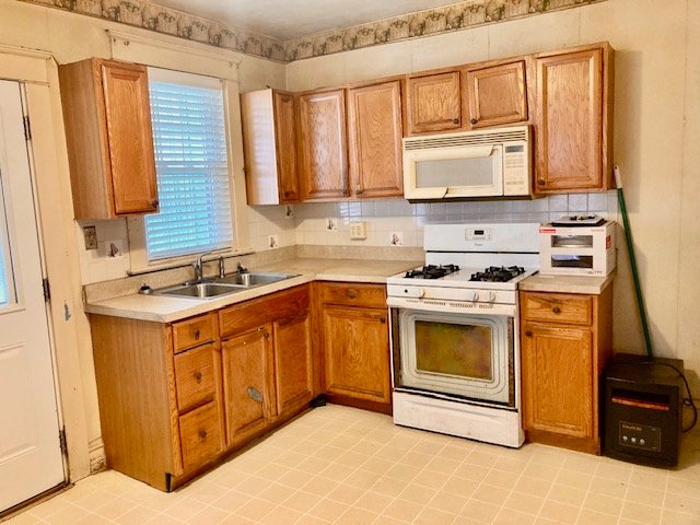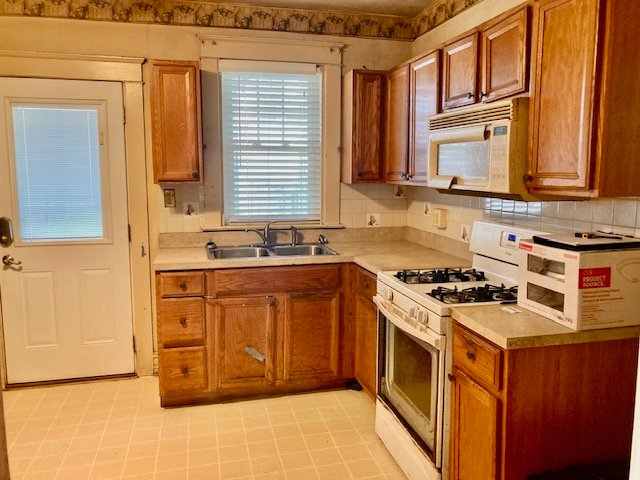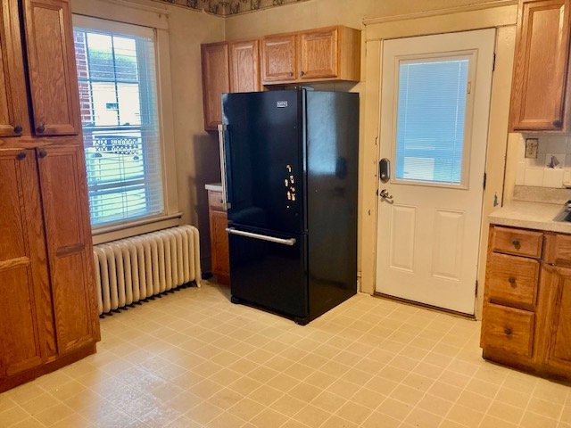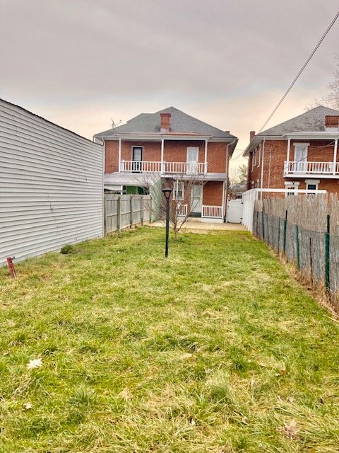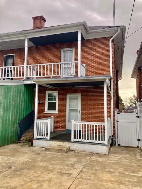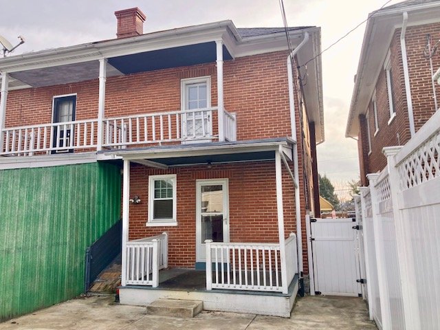Real Estate: consists of a (1925) 2-story brick 4-bedroom 2-bath 1,260 sq. ft. duplex style dwelling w/detached 2-car garage. Main floor features a LR w/laminate flooring open to  DR w/open staircase; kitchen w/appliances & cabinetry (needs some TLC); covered front & back porches; new 20’x20’ concrete patio; private backyard; upper level: BR #1) w/closet & rear balcony; full bath; BR #2) w/closet; BR #3) w/closet, walk-up attic; basement laundry/storage room, W & D included; full bath; 4th bedroom/office; cold cellar w/275 gallon fuel oil tank, oil furnace HW heat; egress door; public water, sewer & gas; annual taxes: $4,205. Outbuilding: a 19’x17’ frame 2-bay garage w/auto opener, alley access & parking.